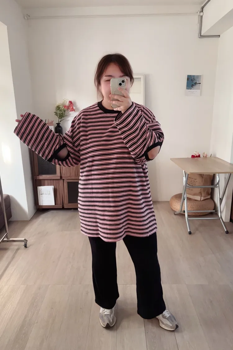 2511027挖洞造型條紋上衣 https://www.mooneyeskorea.com/product.php?action=detail&pid=2511027 + 2512036蕾絲織紋靴型褲 https://www.mooneyeskorea.com/product.php?action=detail&pid=2512036