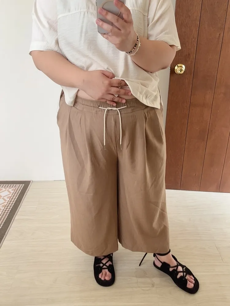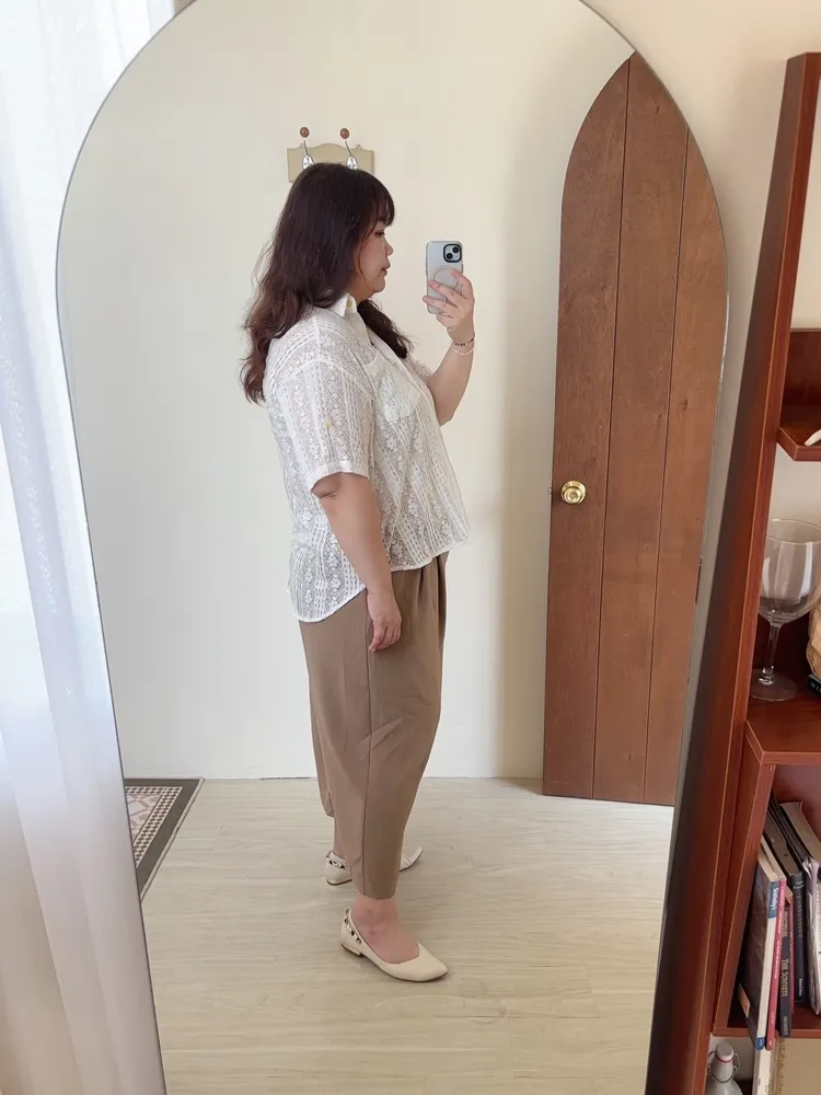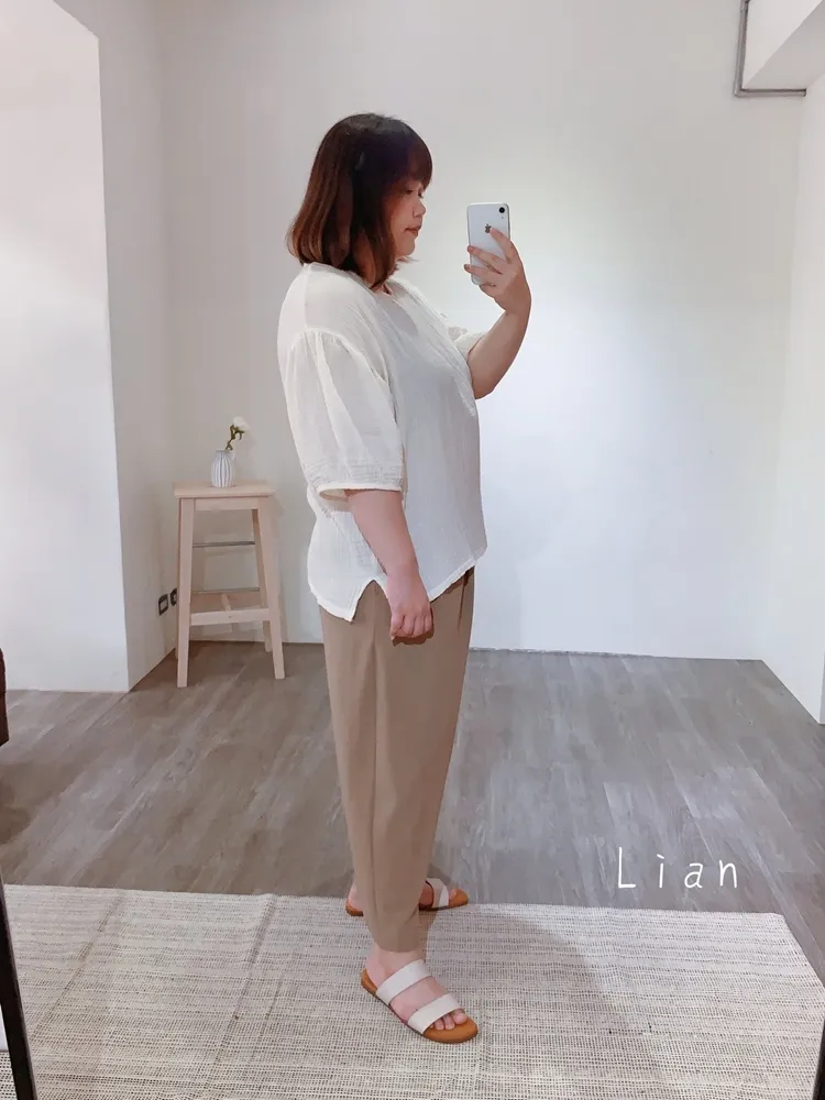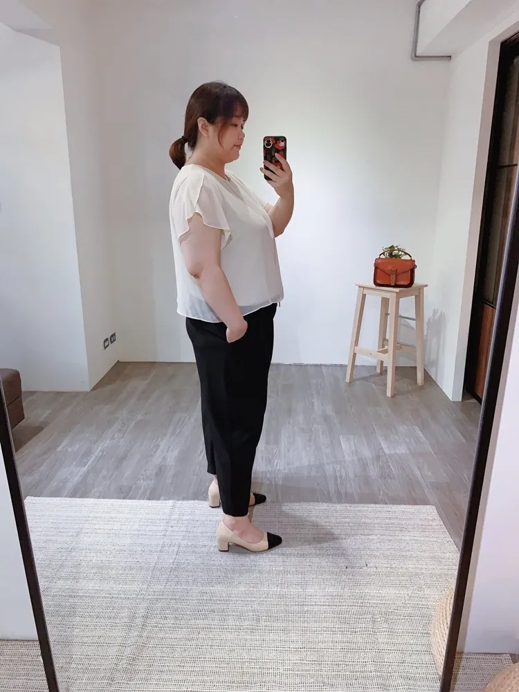 腹部做了打折設計,輕薄的褲子穿起來仍然有立體修適度