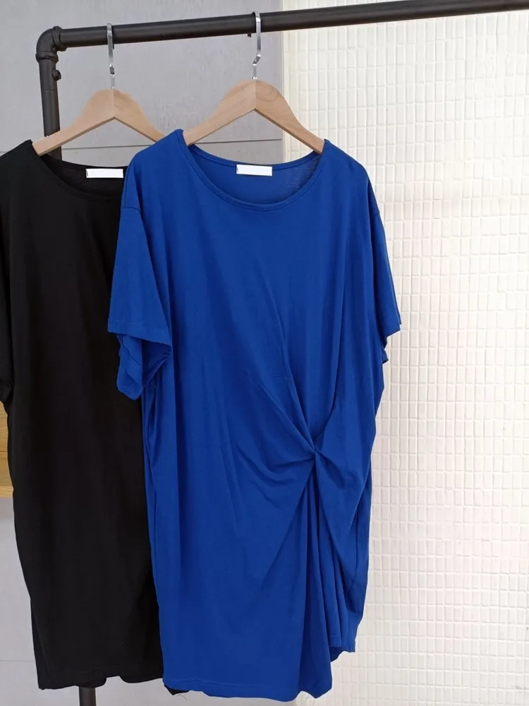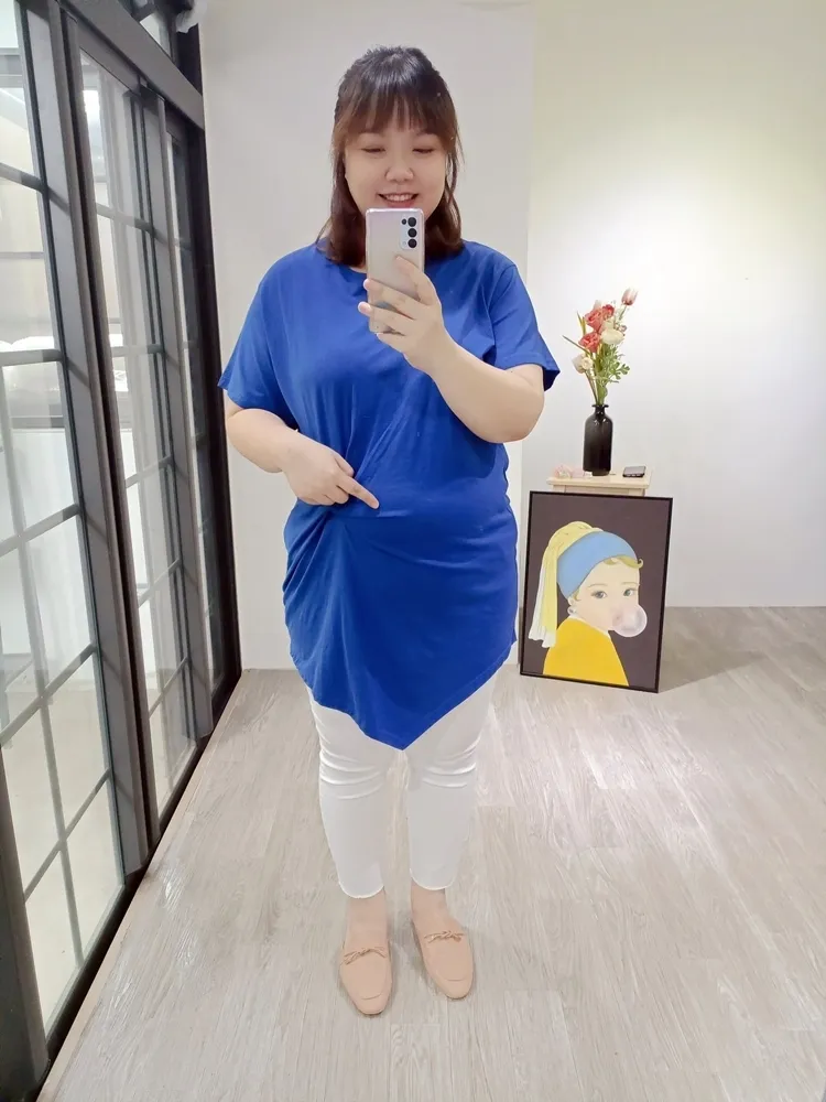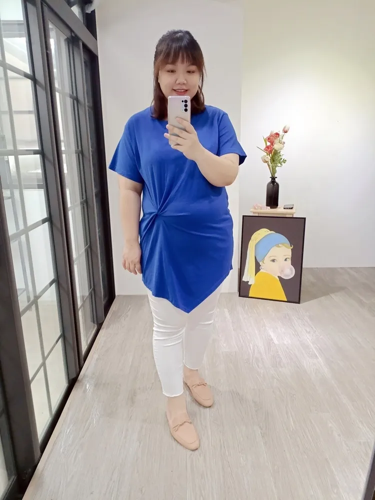 ✓ 舒服圓領,正面抓皺設計,長度可以蓋住屁股