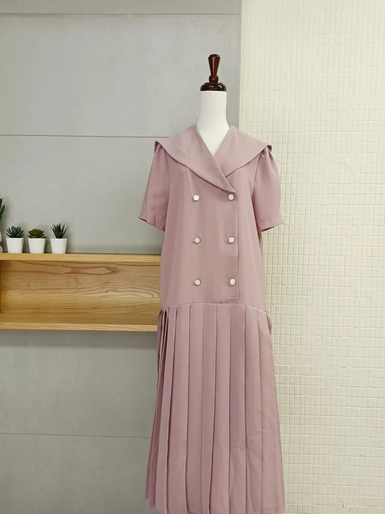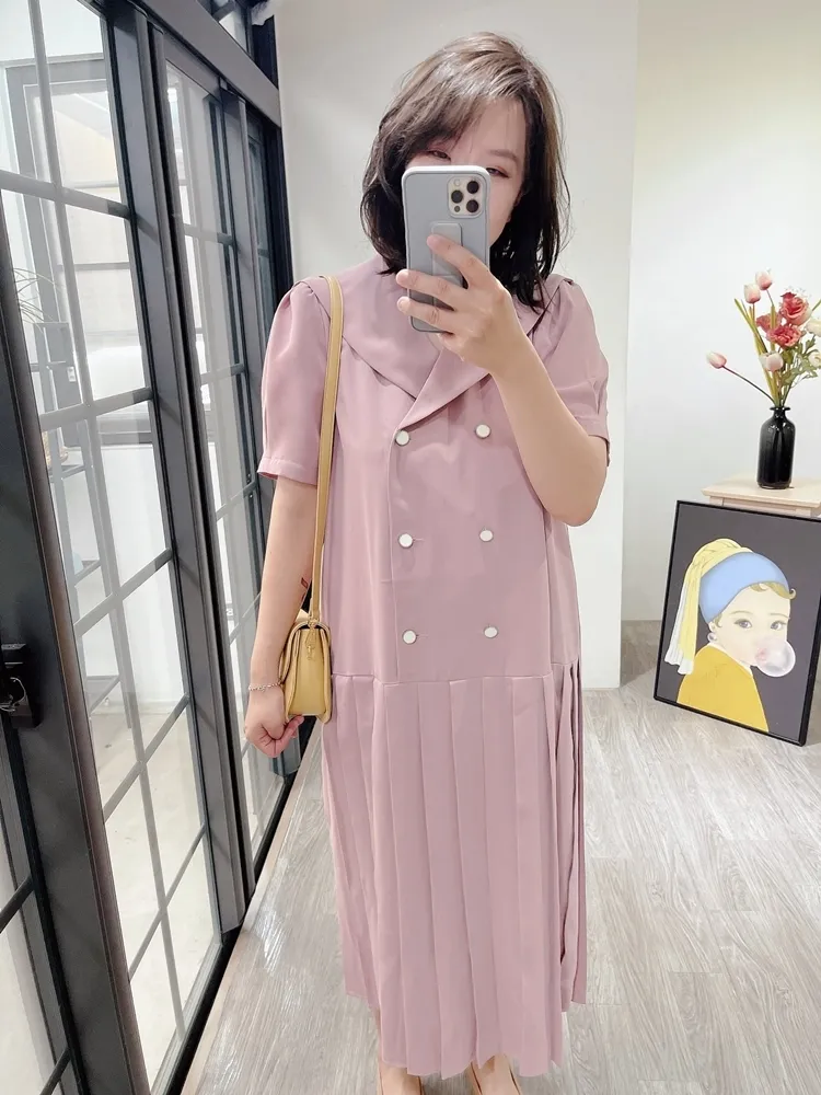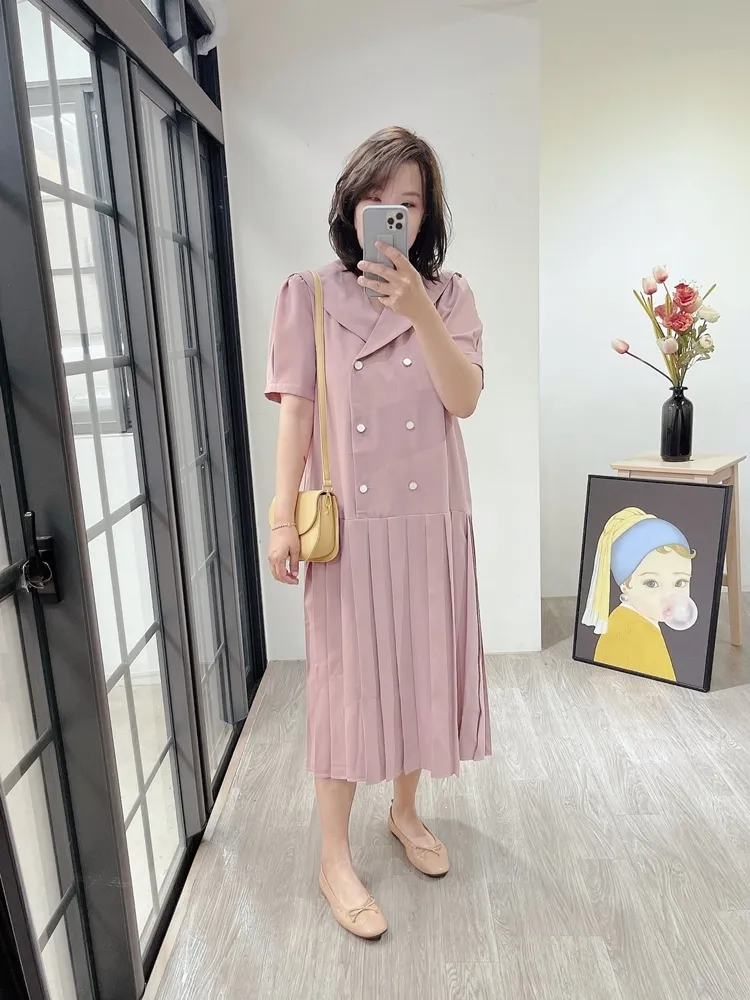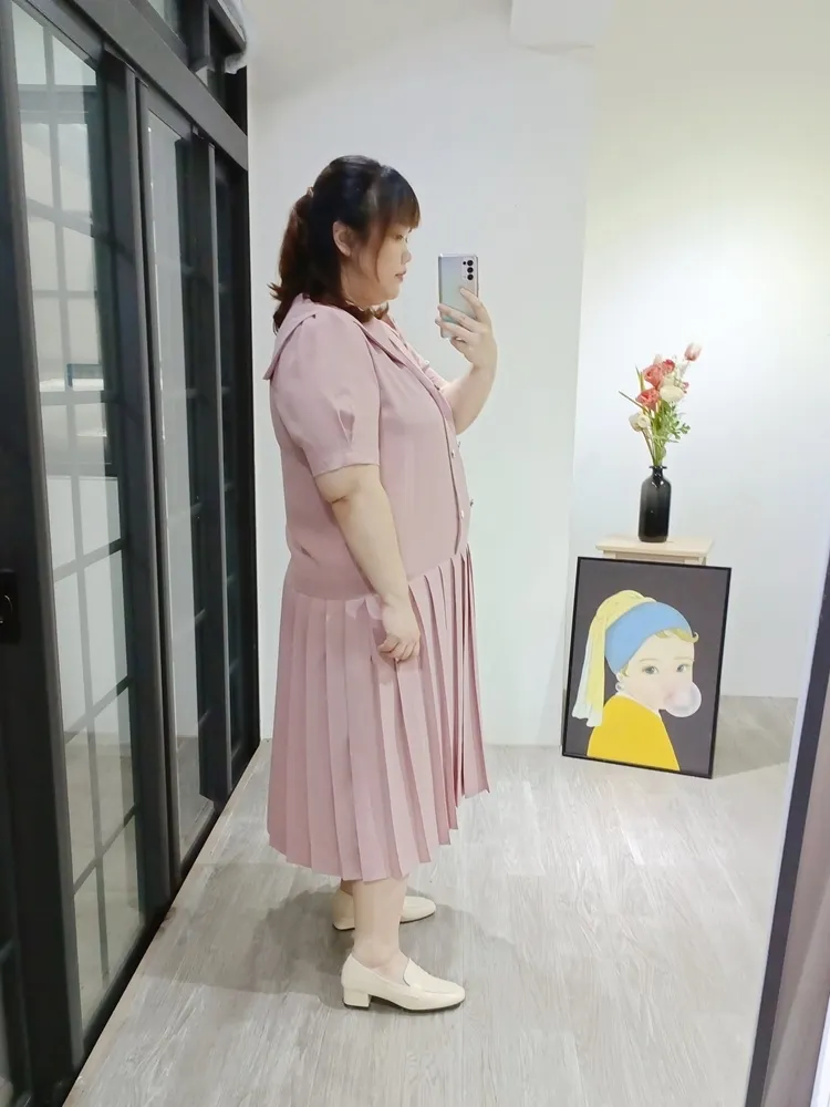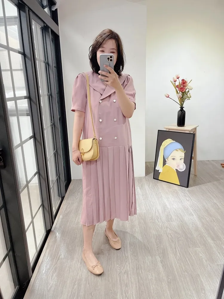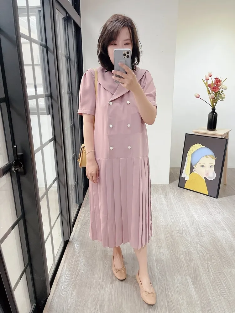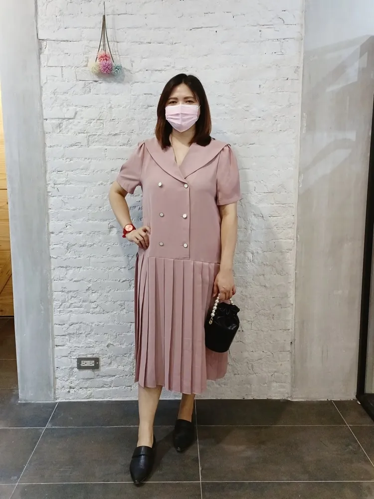 很有氣質的一款洋裝,選用了溫柔、顯氣色的粉色