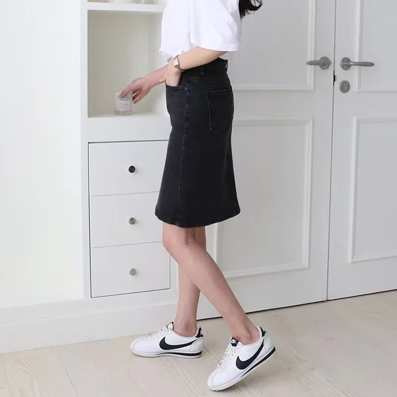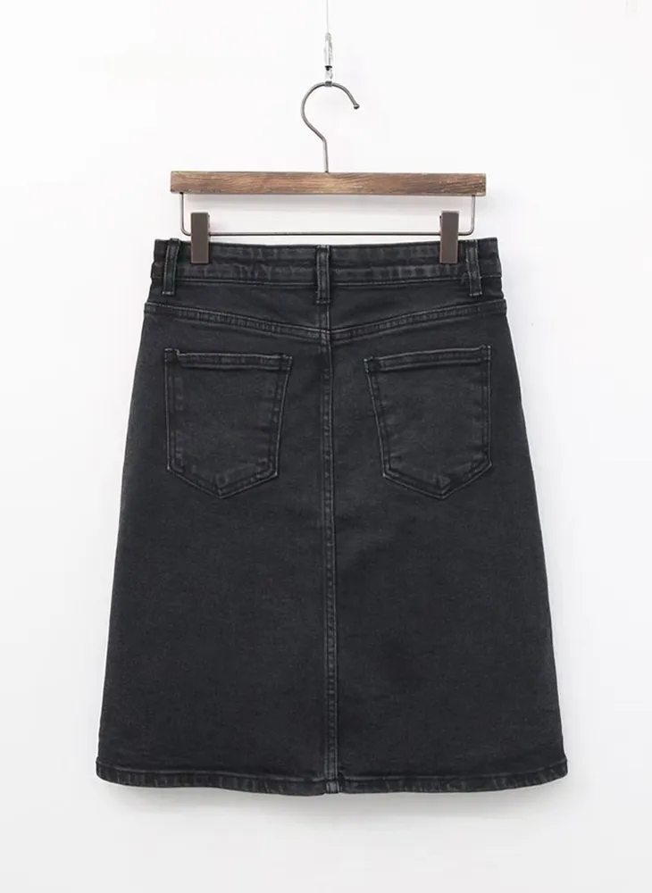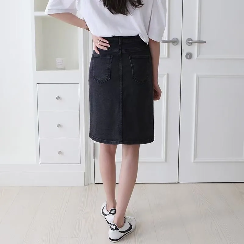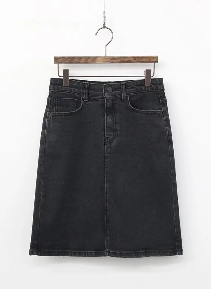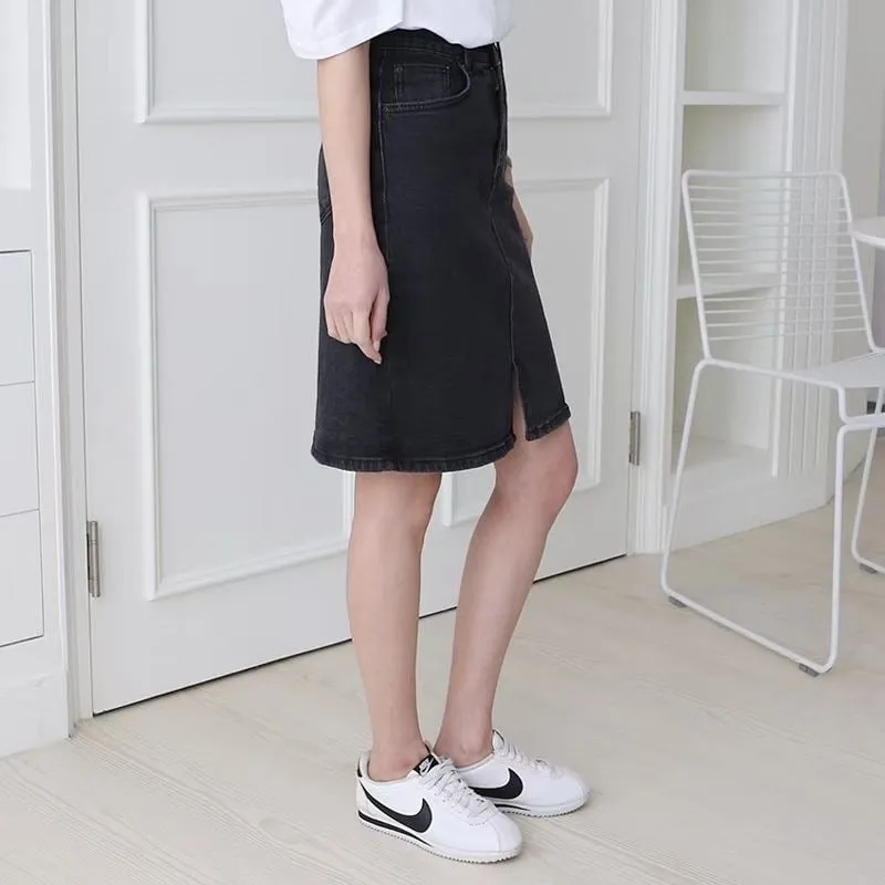 及膝長度、前開岔讓整體黑色裙子不會太沉重