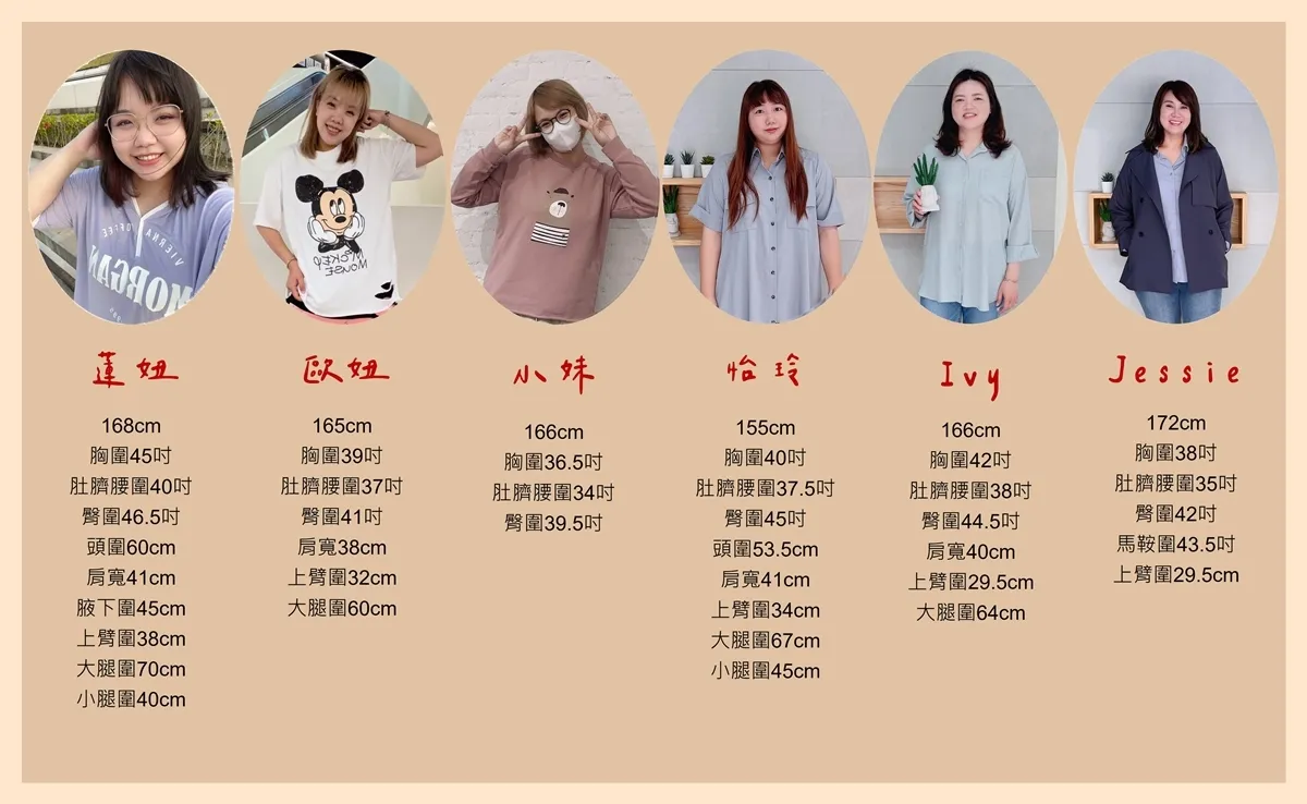 ※ 下方尺寸表有備註照片每個人穿的尺寸及著感哦 ※