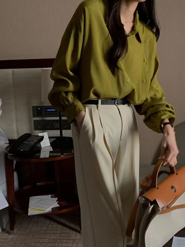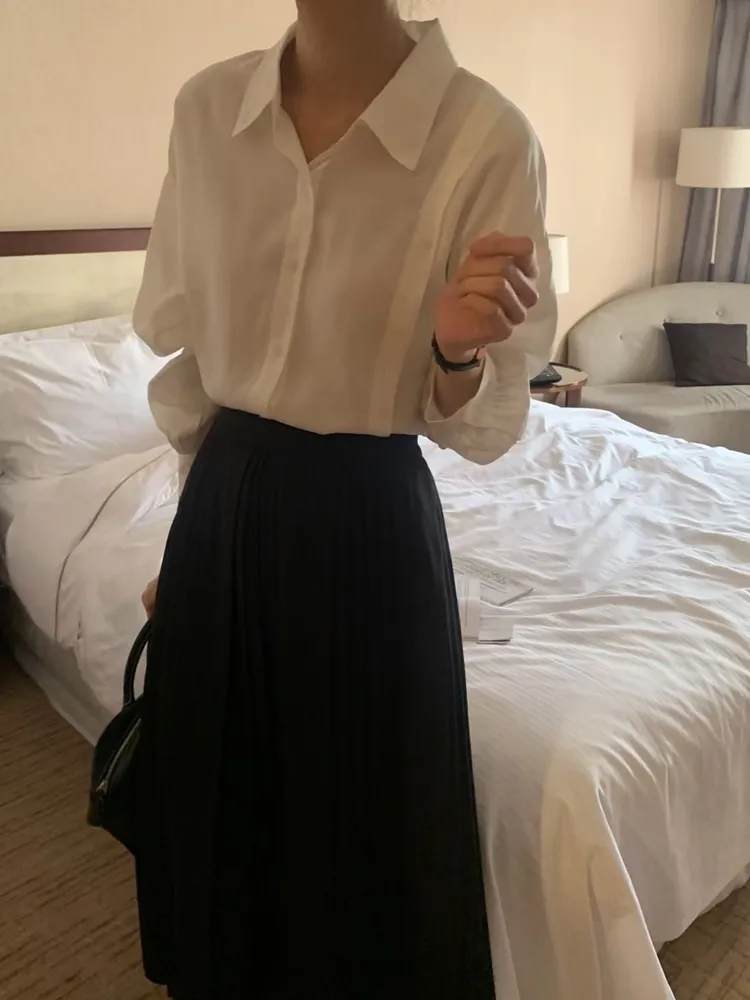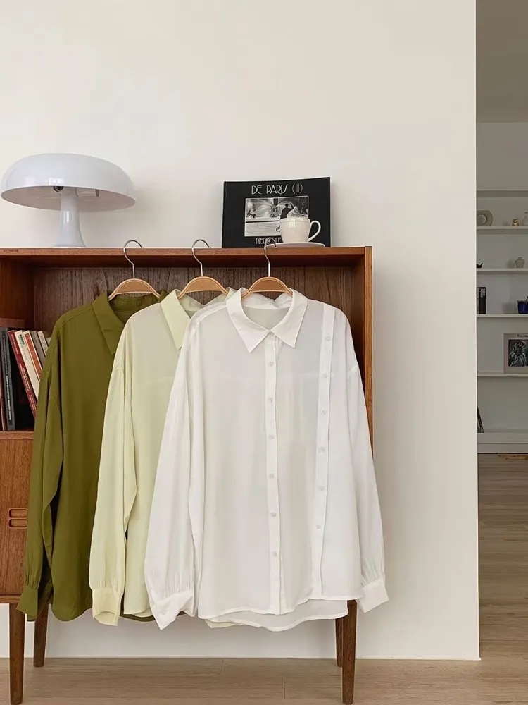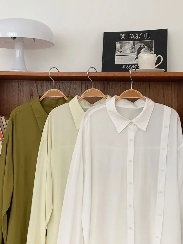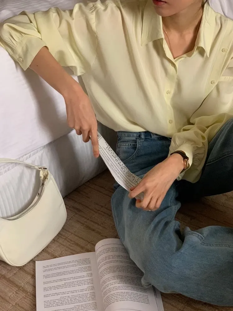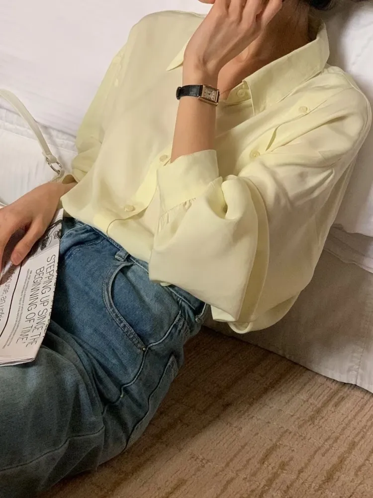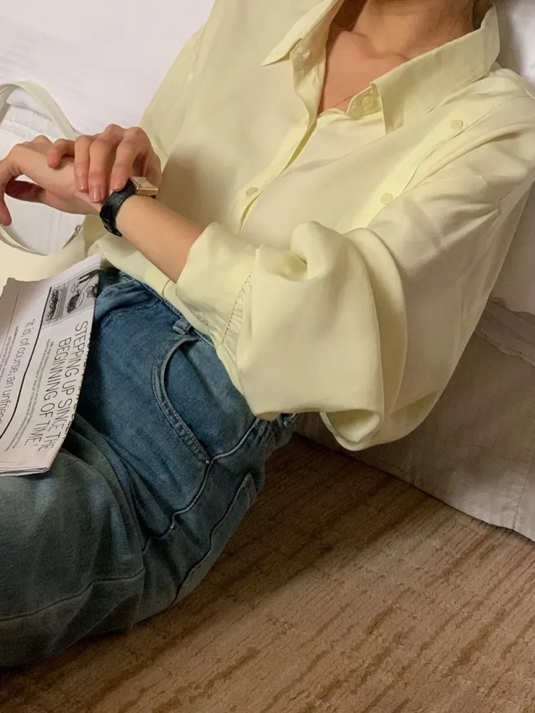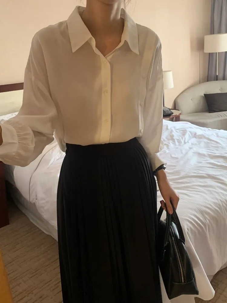 ✓ 輕薄絲質襯衫,手感極滑順,夏天可穿厚度