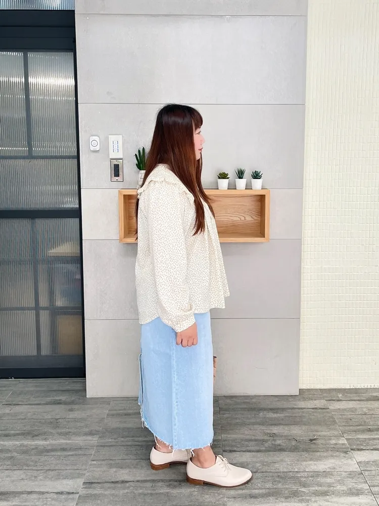 ✓ 後開岔,下擺不收邊抽鬚造型,微A字版型