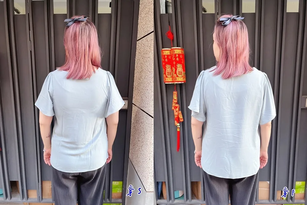 ✓ 肩膀抓皺設計,不顯肩蒯,增加優雅感;圓肩、肉肉手臂穿起來更加舒服
