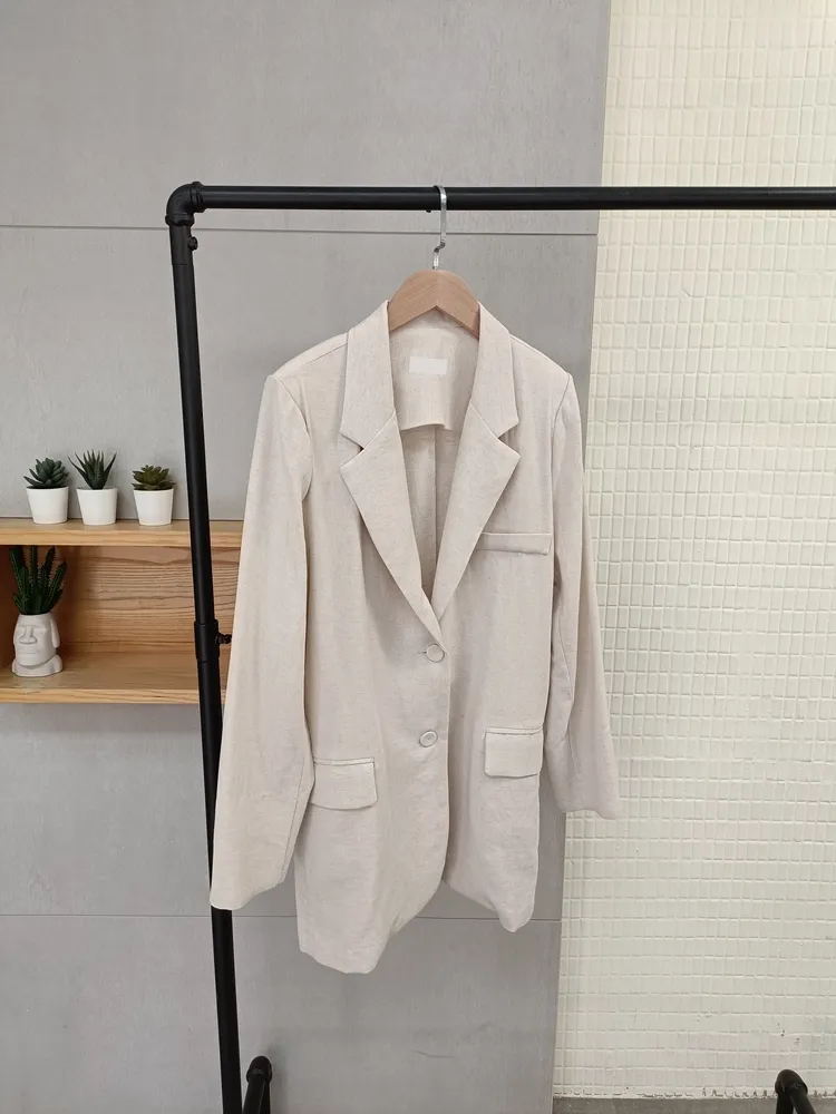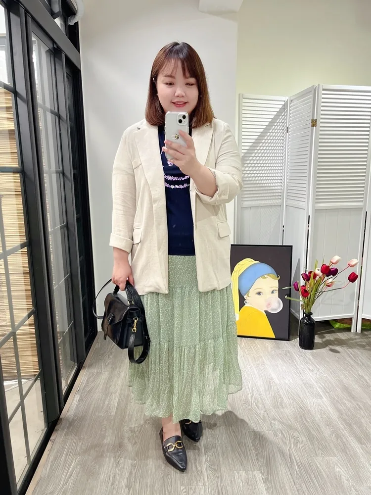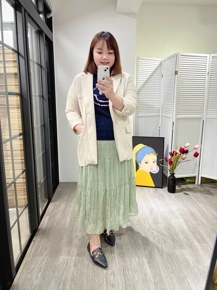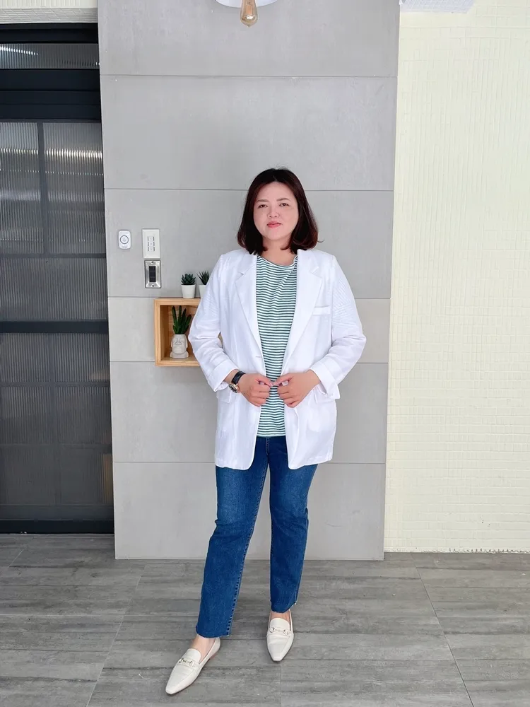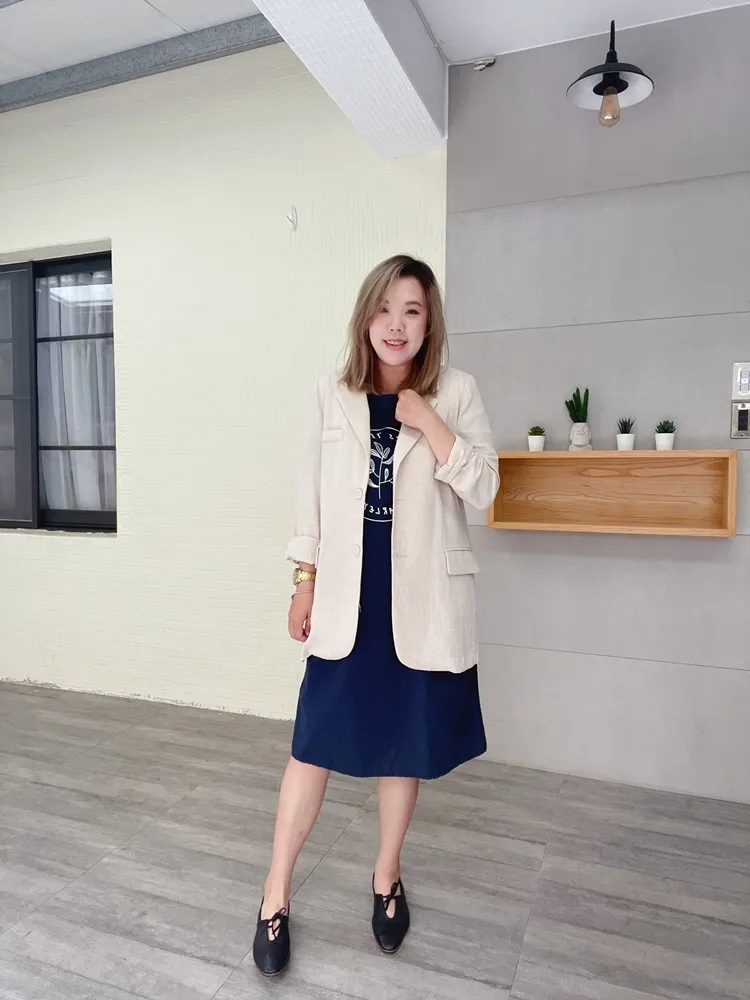 ✓ 合身肩寬,穿起來俐落,衣長偏長可以遮到臀部,建議165cm以上穿著
