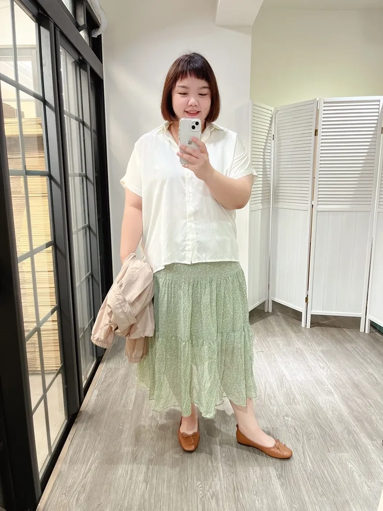 雖然是軟料材質,穿在身上卻不貼身,長度可以不用紮