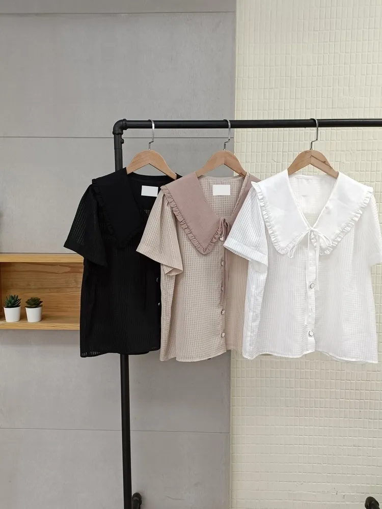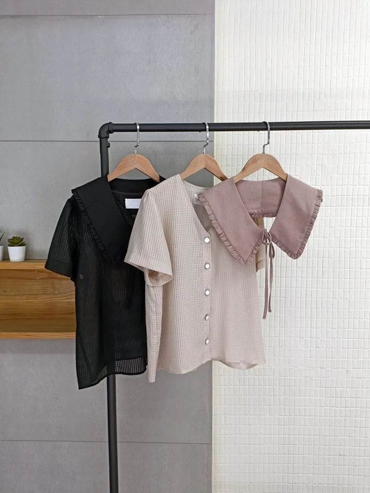 ✓ 三色都是透膚感的布料,白、杏色建議要加內搭,黑色可以穿同色系內衣