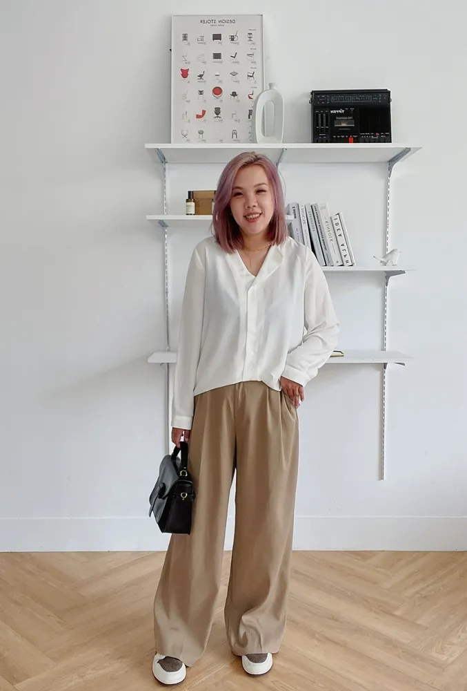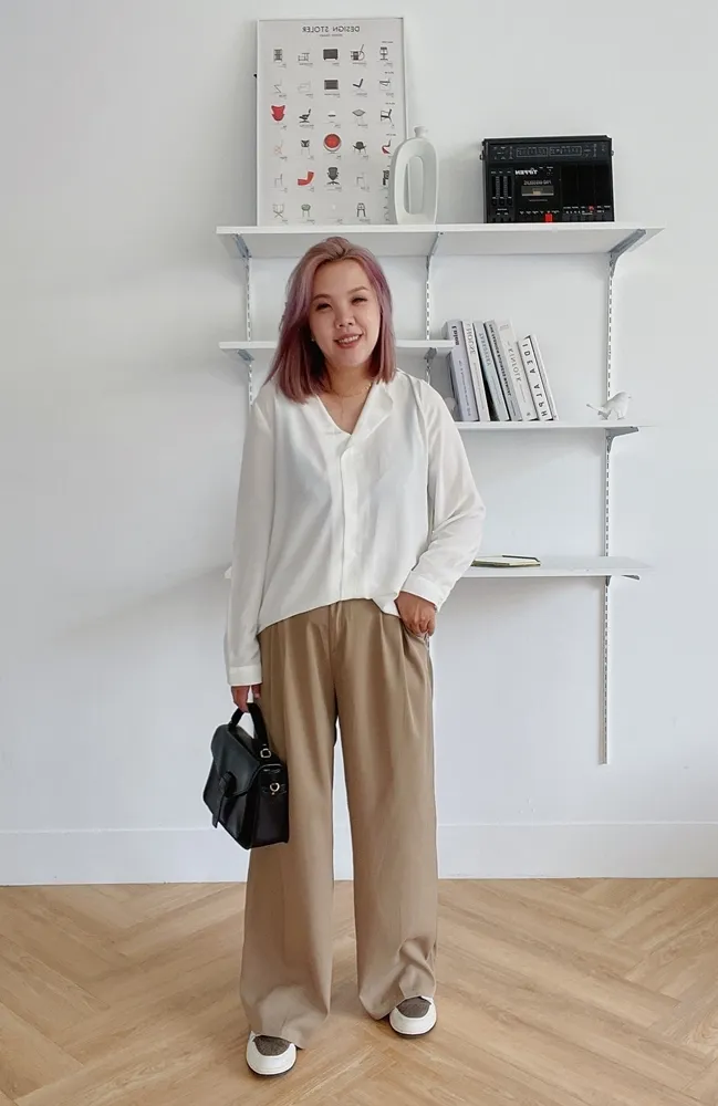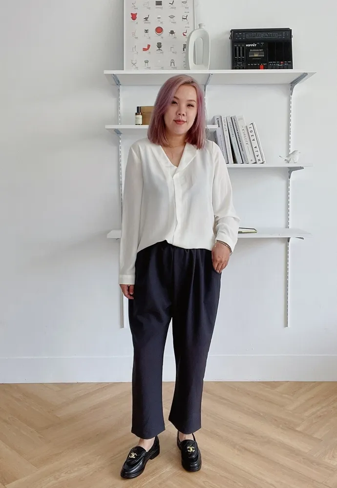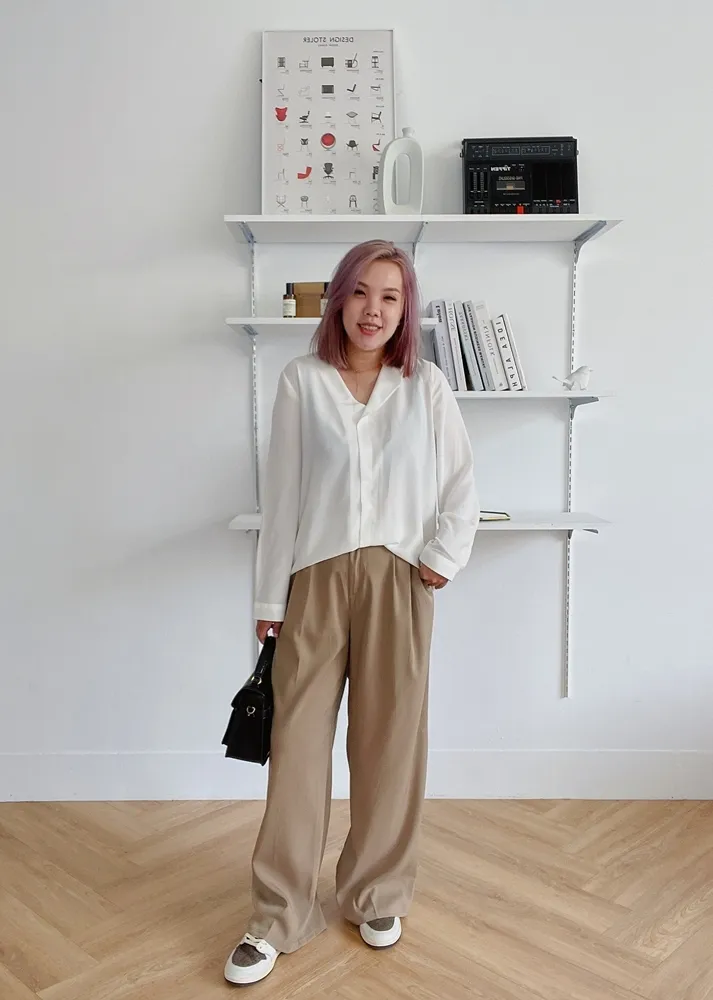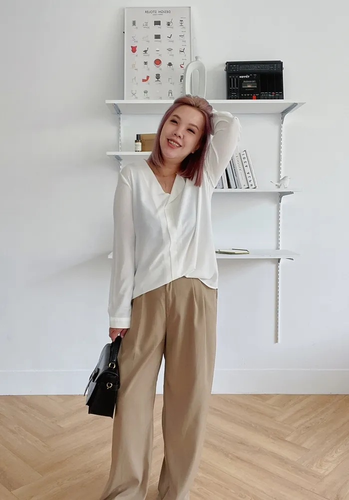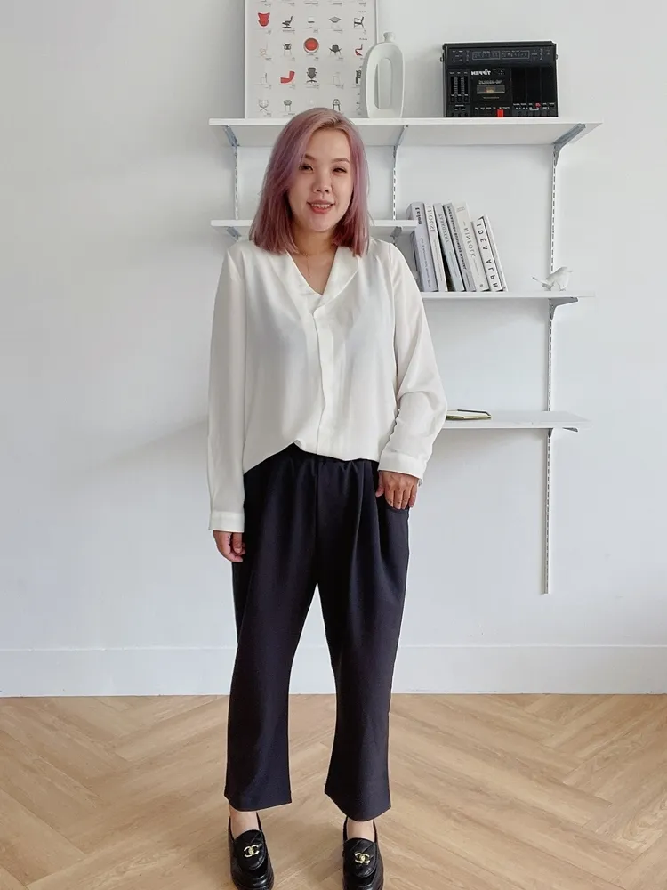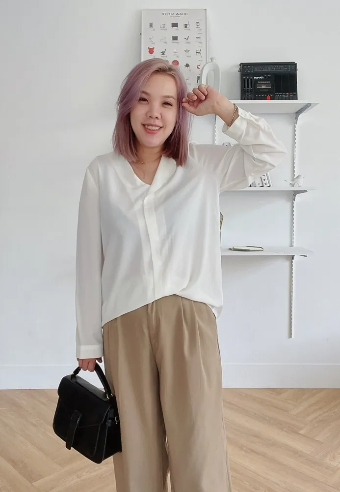 ✓ 單翻領口不對稱設計