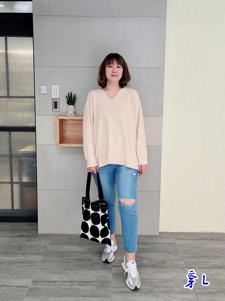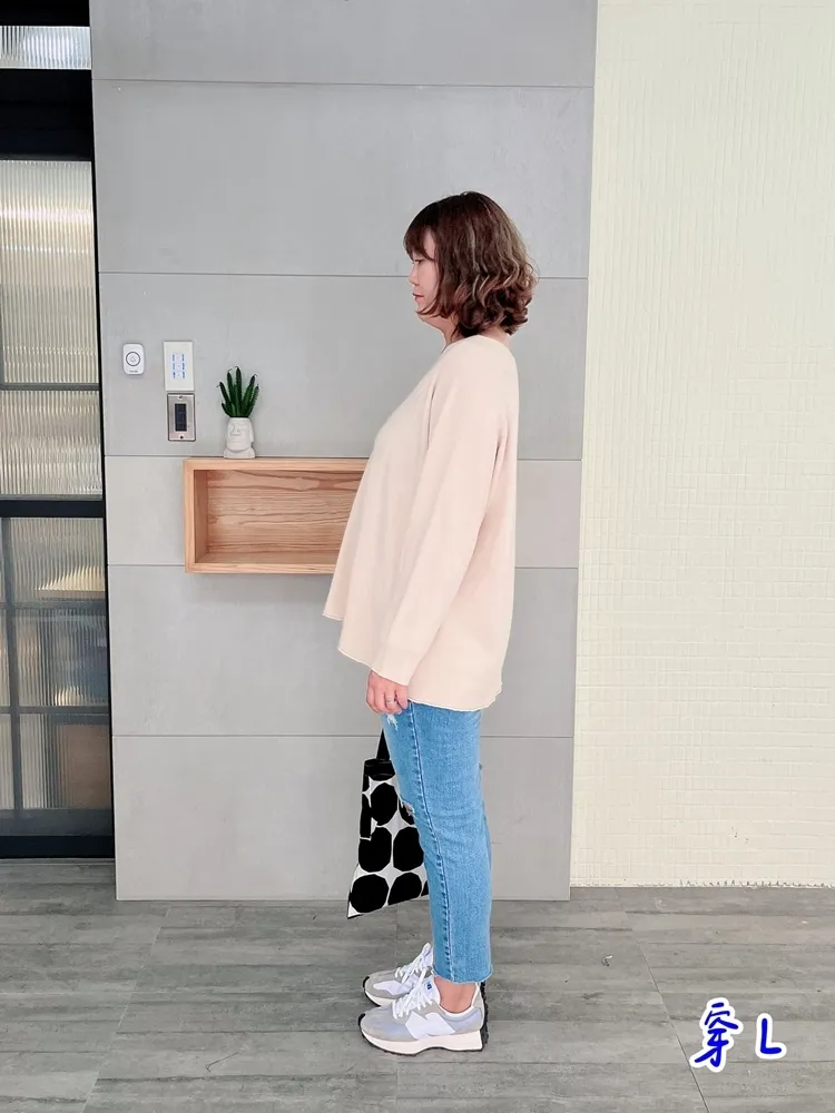 | L | (無肩線)單邊肩寬+袖長67 | 65 | 67 | 蓮妞穿L微鬆/Jessie穿L寬鬆 |