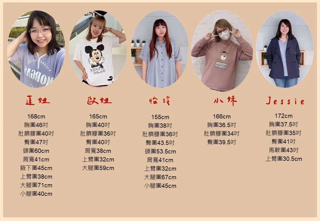 ※ 下方尺寸表有備註照片每個人穿的尺寸及著感哦 ※