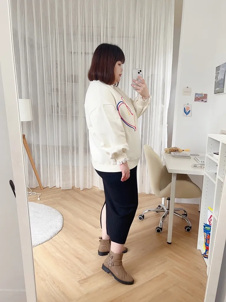 | XL | 35-55(31.5-43吋) | 45-60(35.5-47吋) | 80(短版)、90(長版) | 歐妞穿有小腹形狀,喜歡裙身較小的感覺/小妹穿合身/Jessie穿顯馬鞍 |