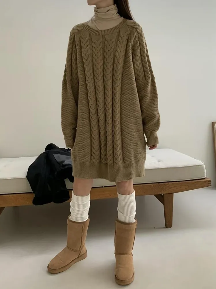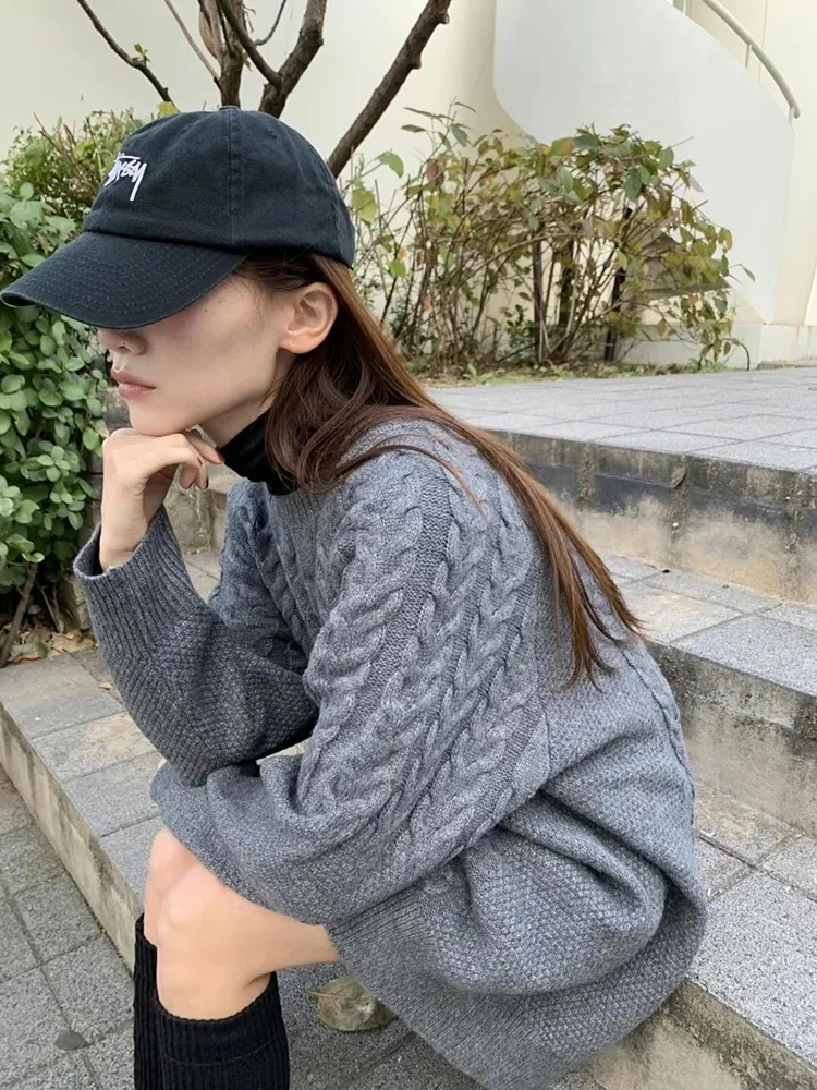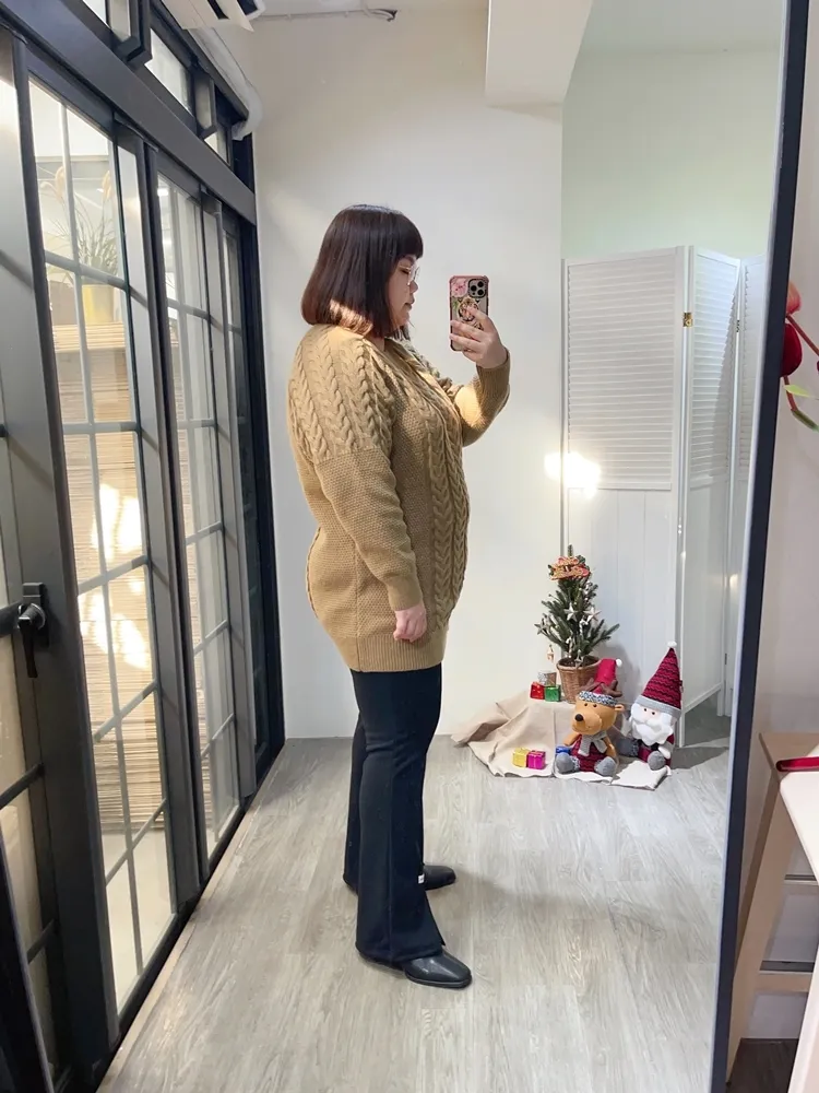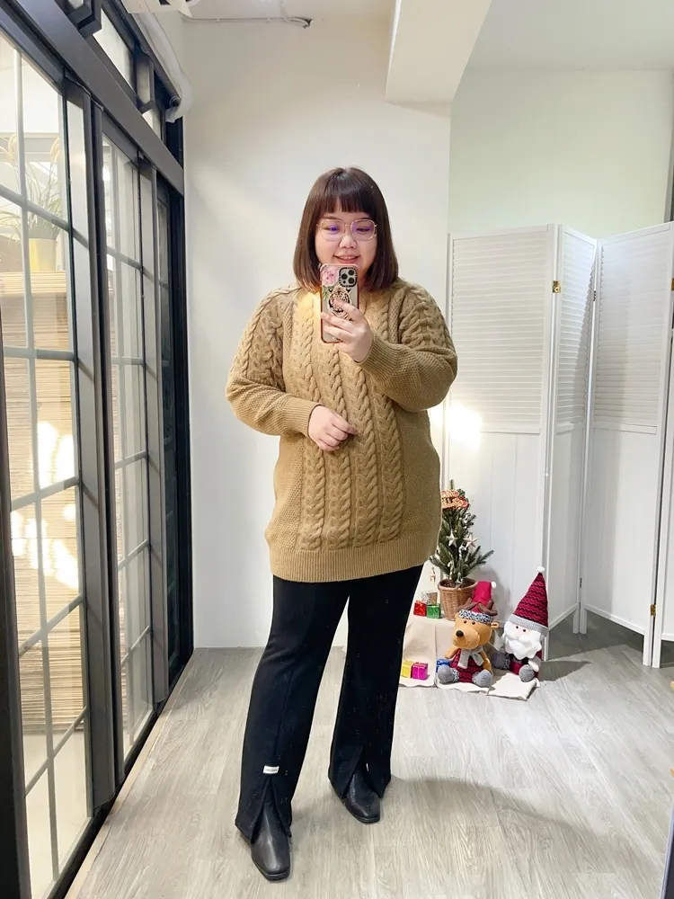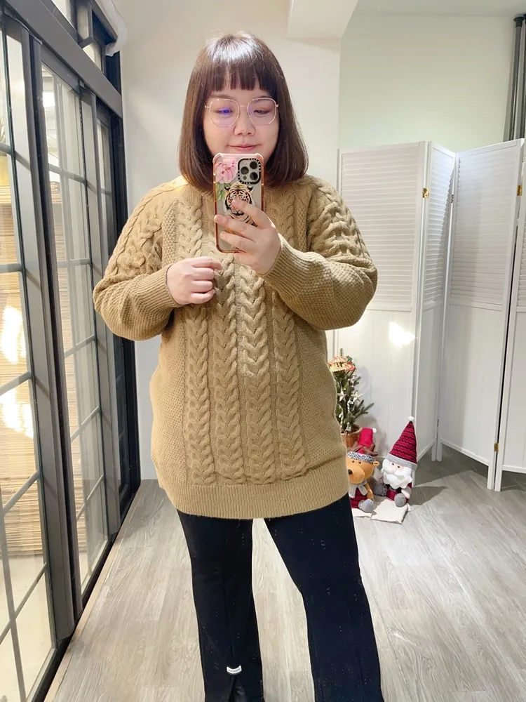 ✓ 寬版麻花編織紋路,沒有整件毛衣都有,適度的留白讓整件毛衣看起來不會有編織密集恐懼