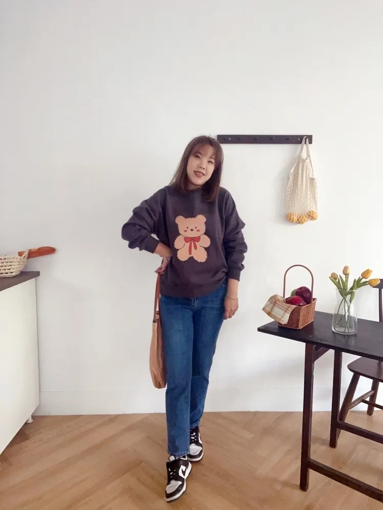 | F | 75 | 68 | 23 | 49 | 54-65(42.5-51吋) | 65 | 歐妞穿微寬鬆/蓮妞穿合身舒服/小妹穿寬鬆/怡玲穿胸部寬鬆,下擺剛好 |