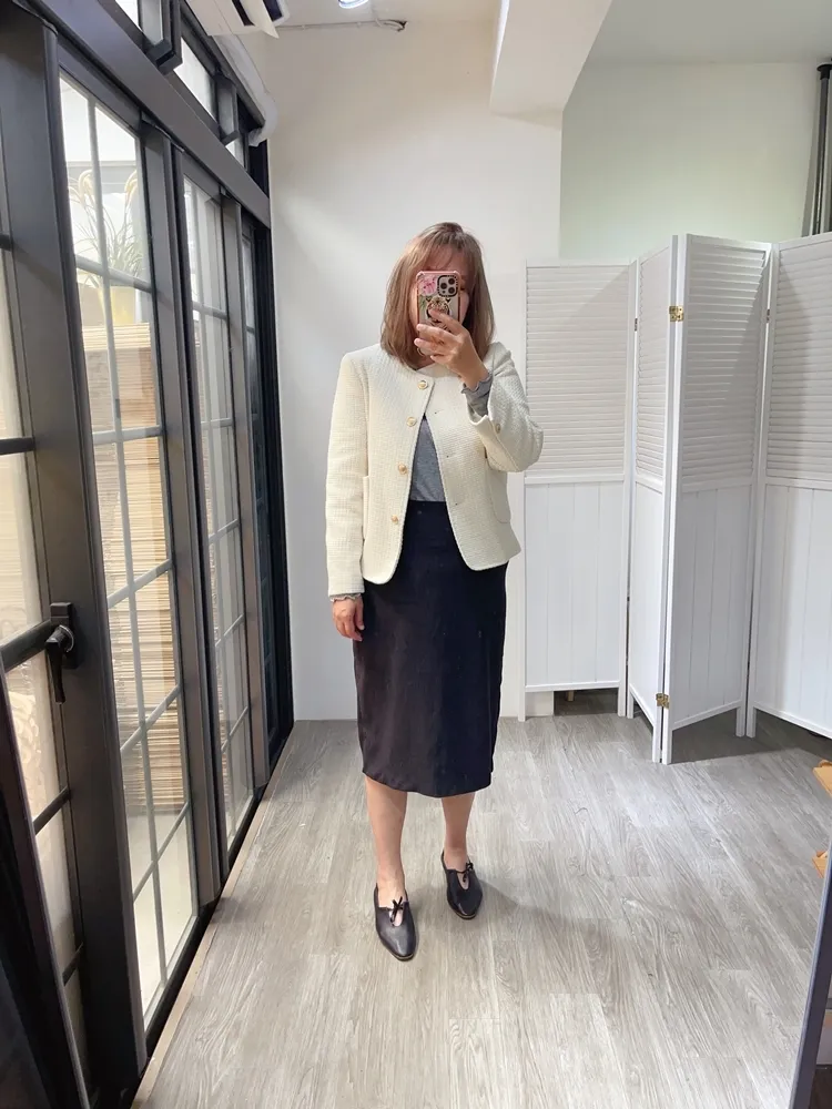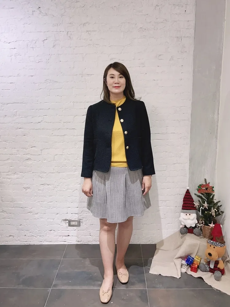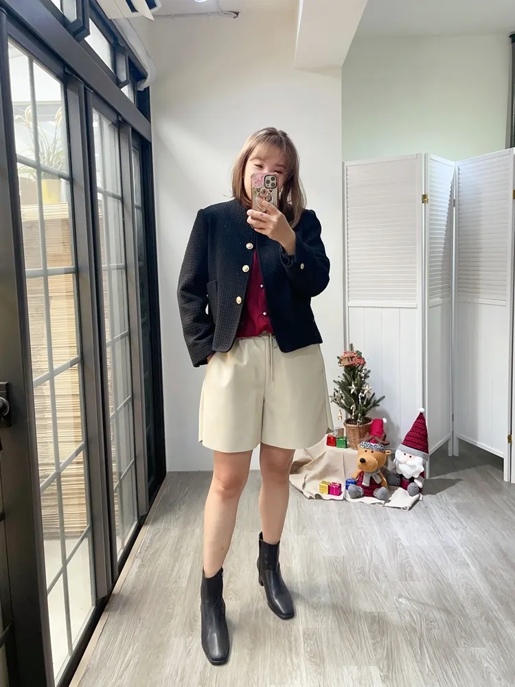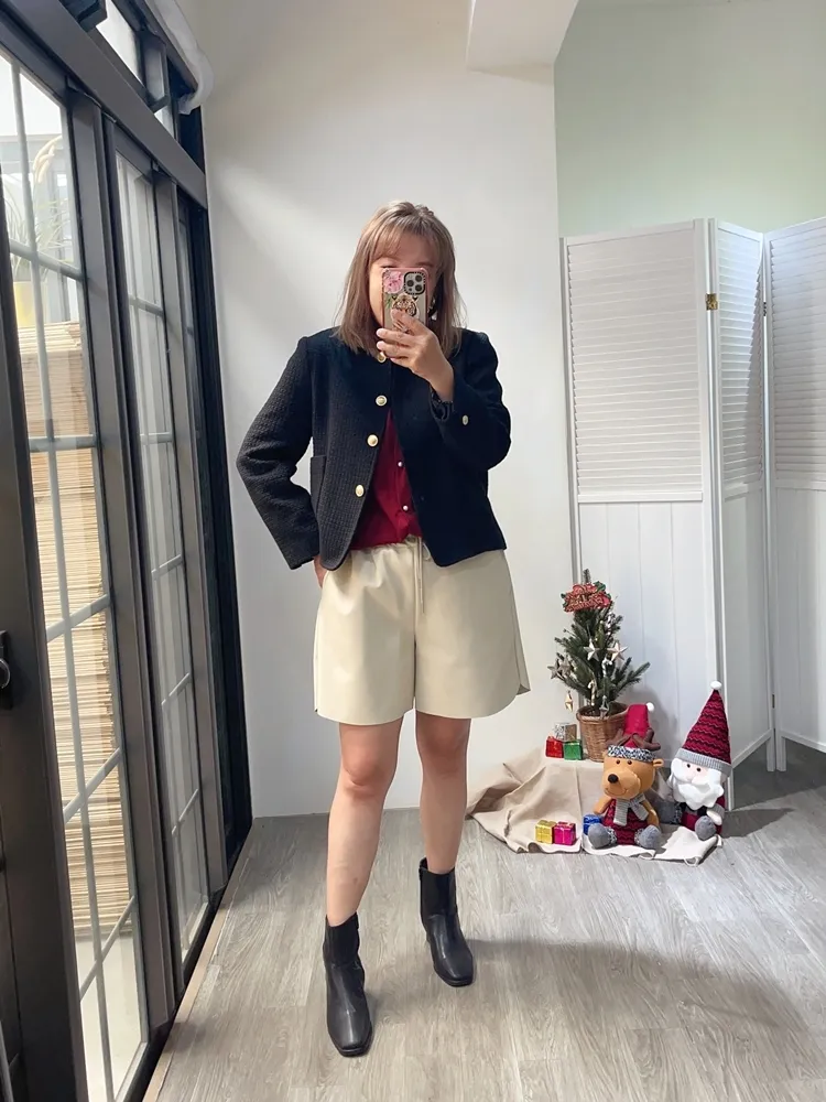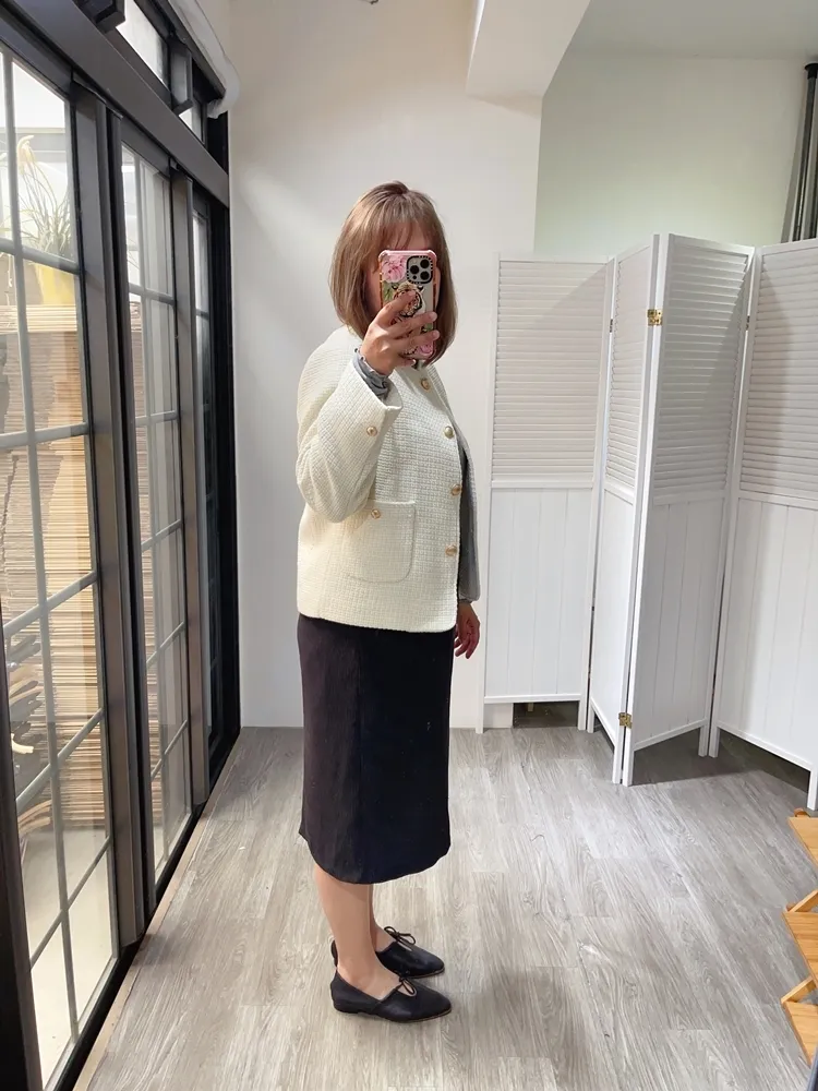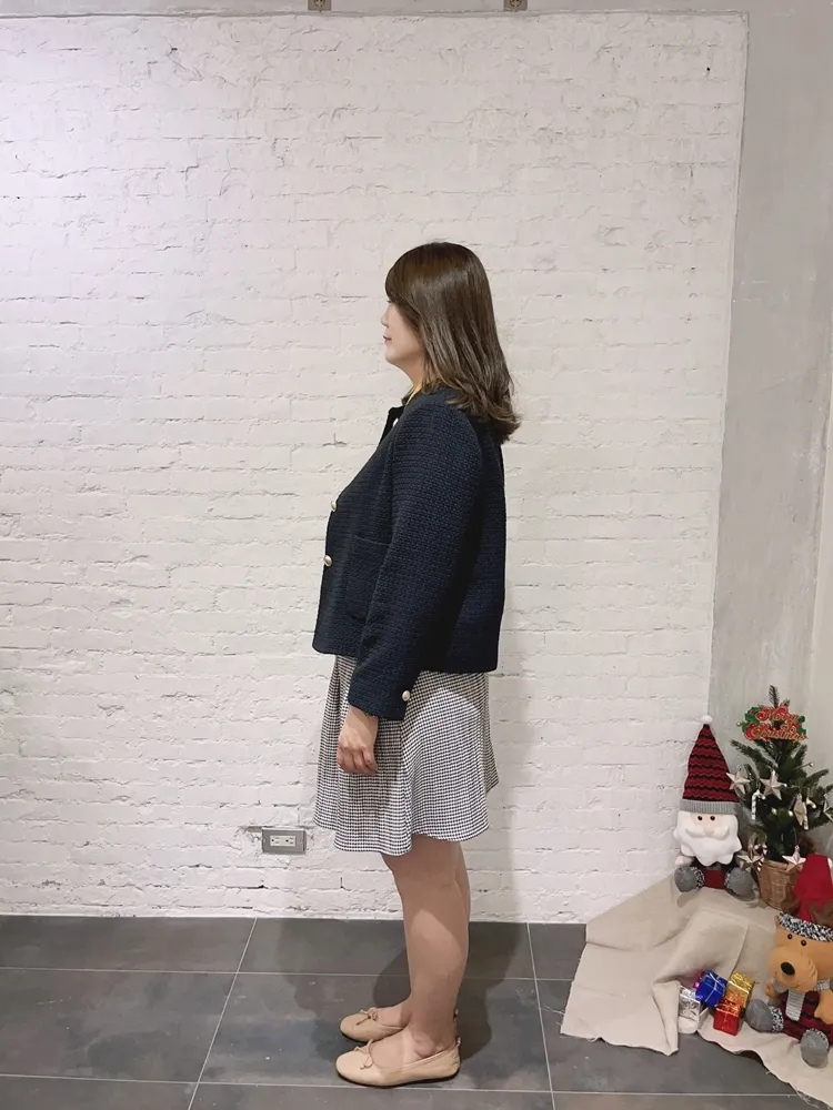 ✓ 混棉,毛線織成的井字紋,布料有厚挺度,適合入冬穿著