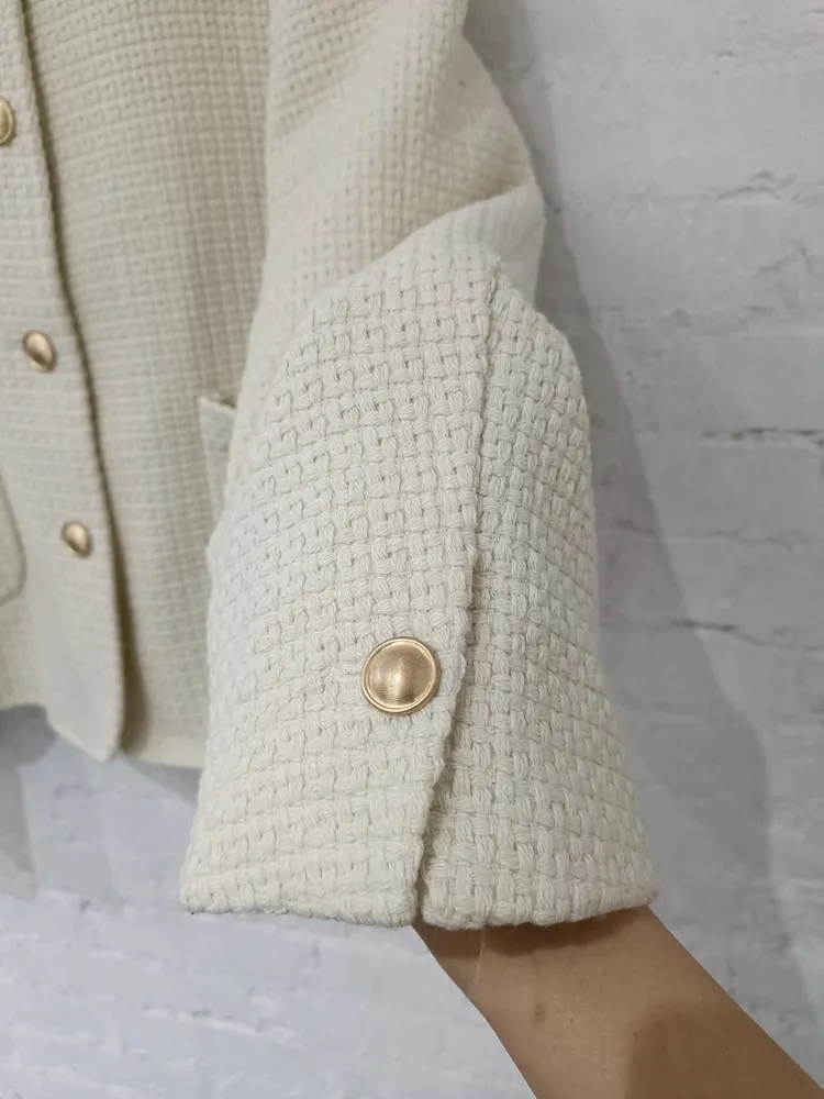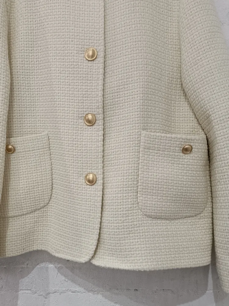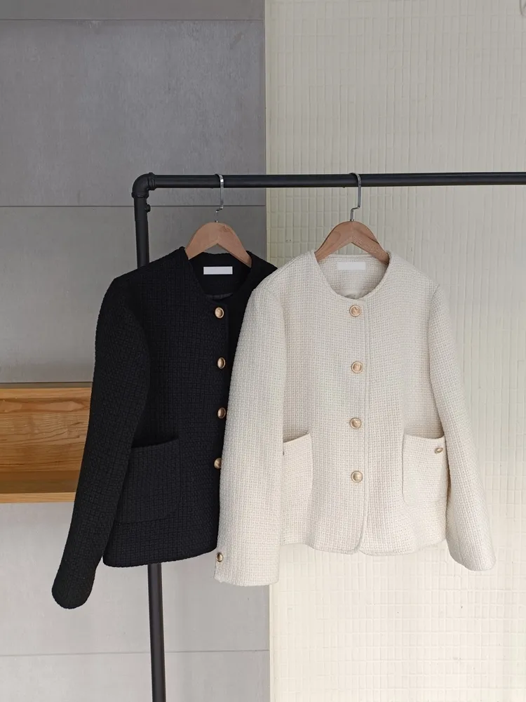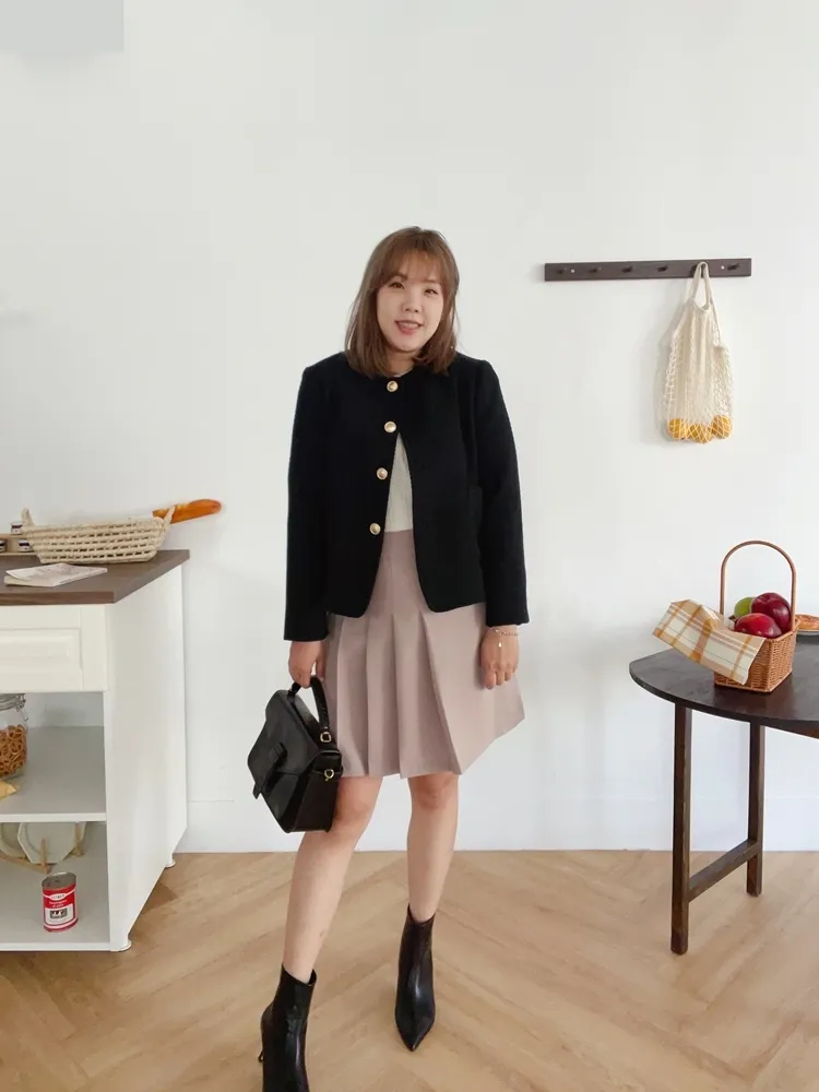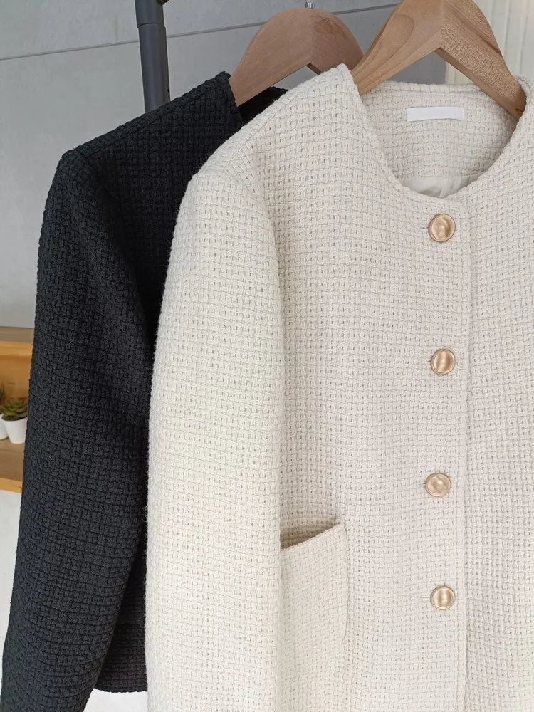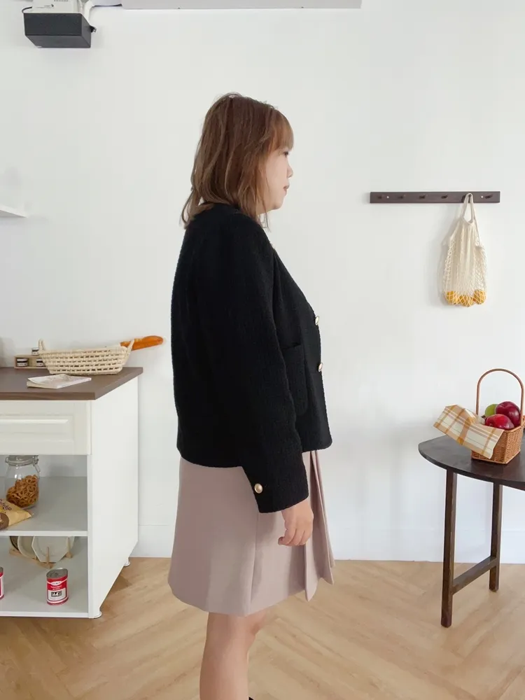 ✓ 混棉,毛線織成的井字紋,布料有厚挺度,適合入冬穿著