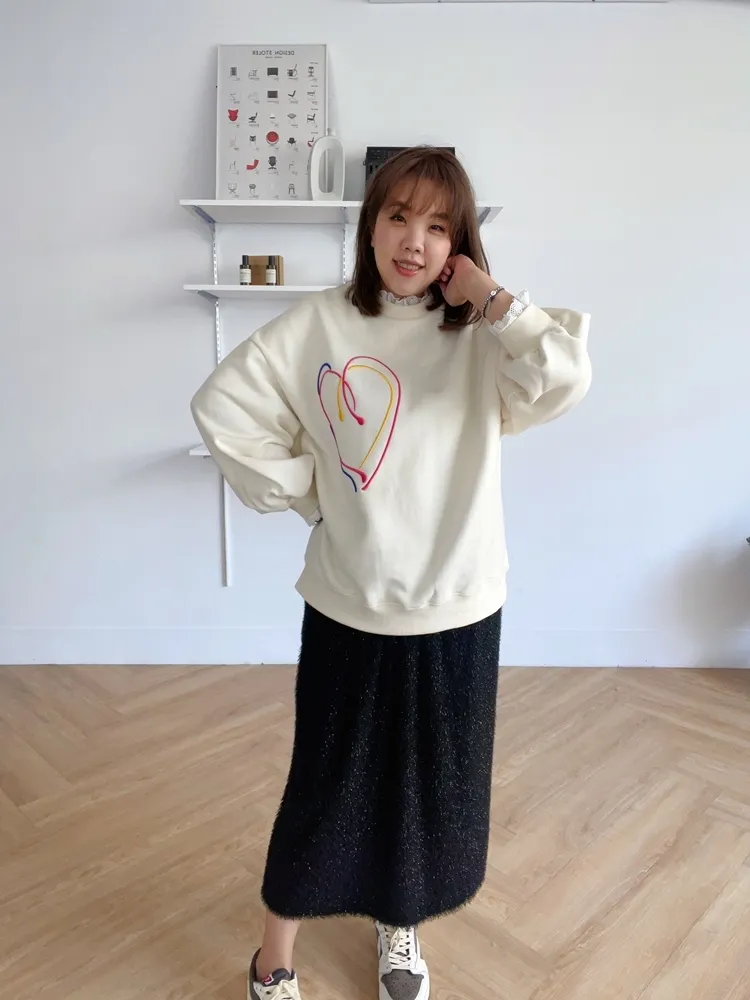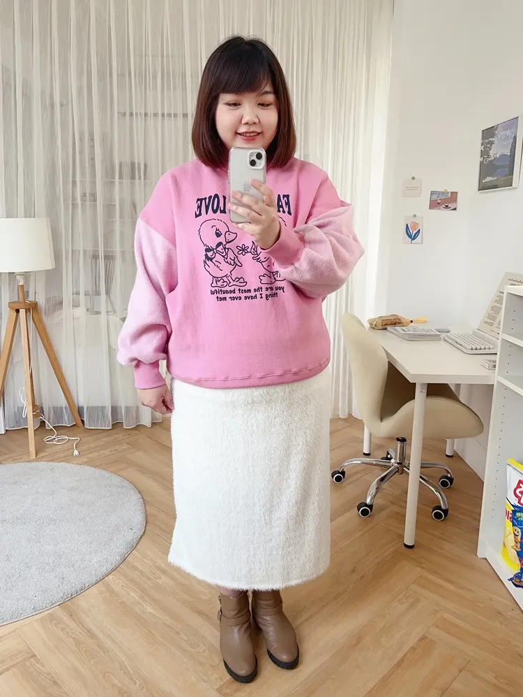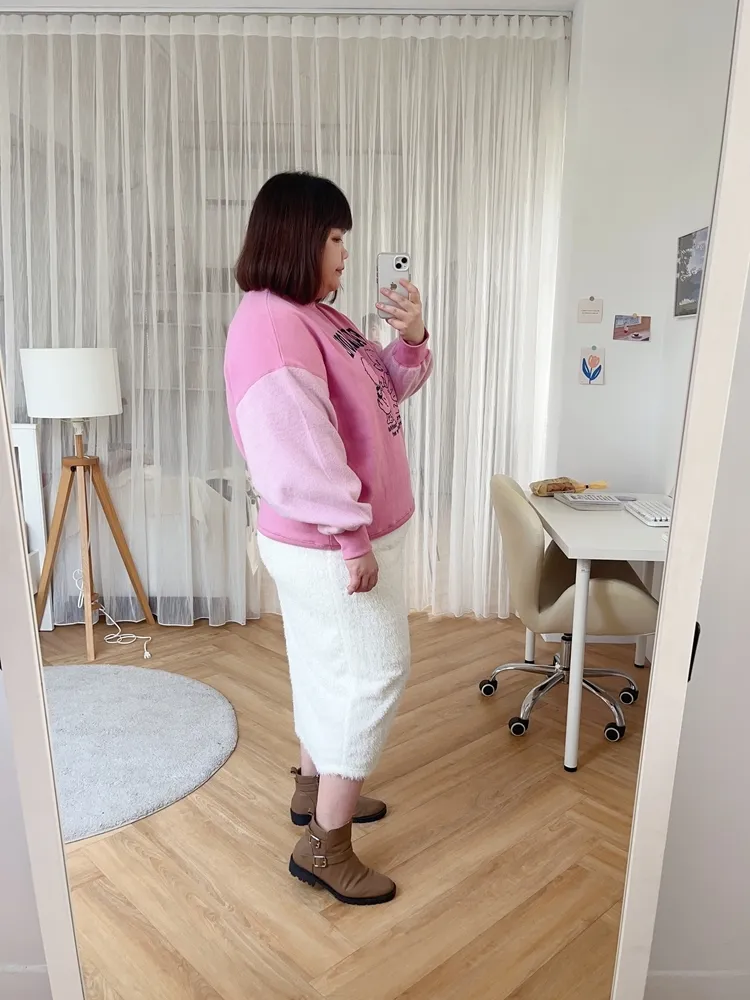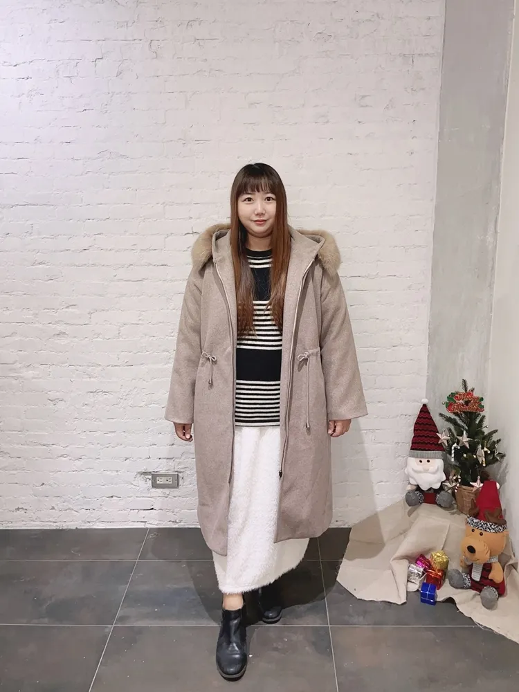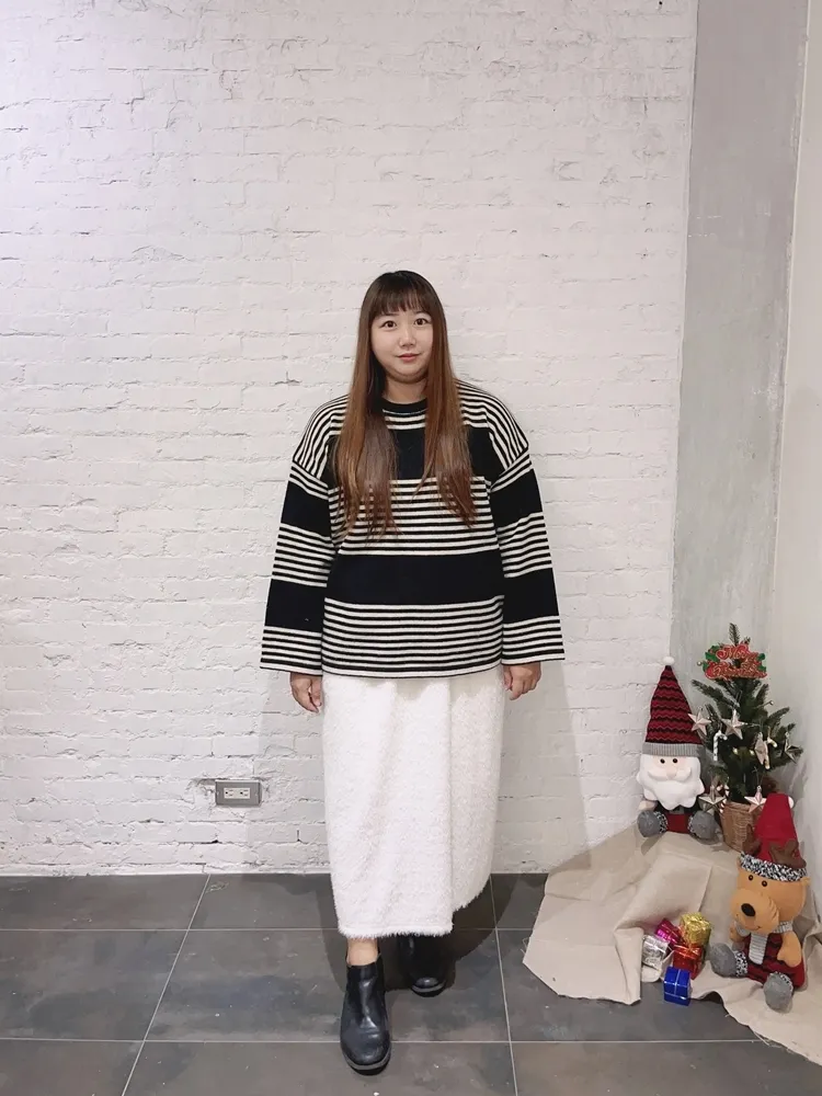 | F | 27-55(21-43吋) | 58(45.5吋) | 79 | 歐妞穿微寬鬆/蓮妞穿腹臀微貼/怡玲、Jessie穿微鬆 |