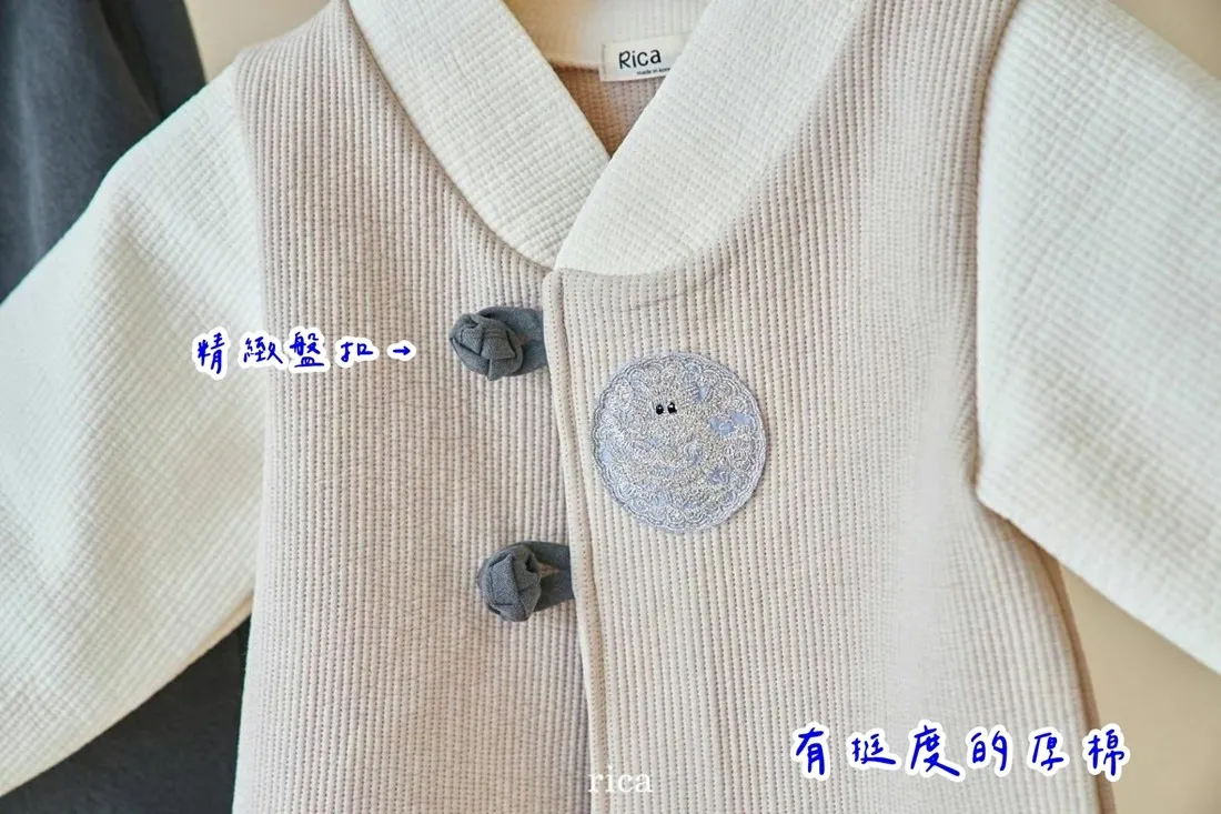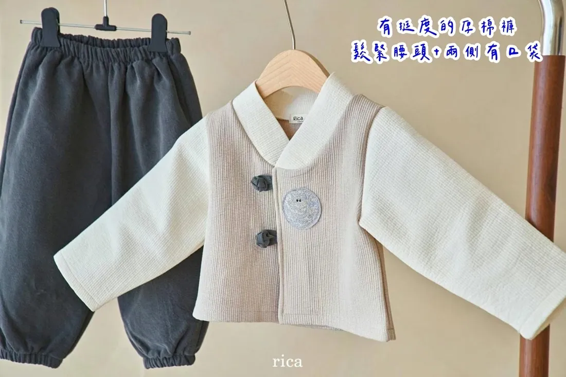 .材質:上衣厚挺棉,褲子舒服棉質;衣服細節如圖