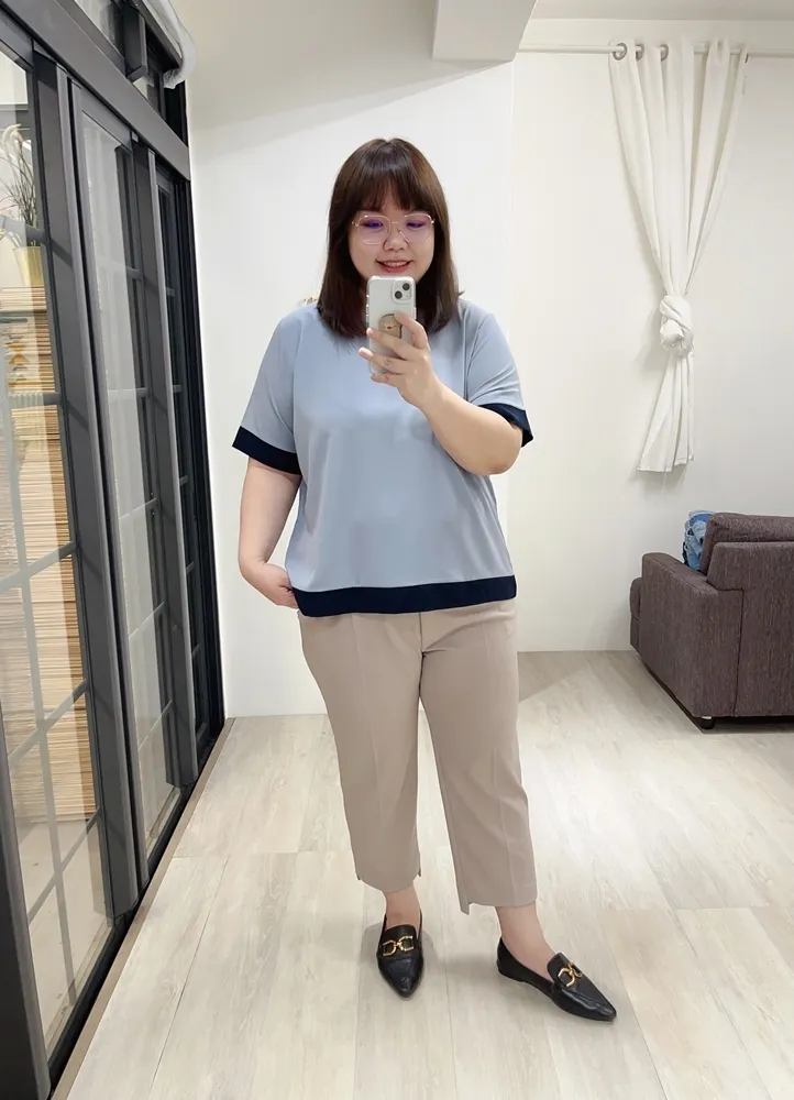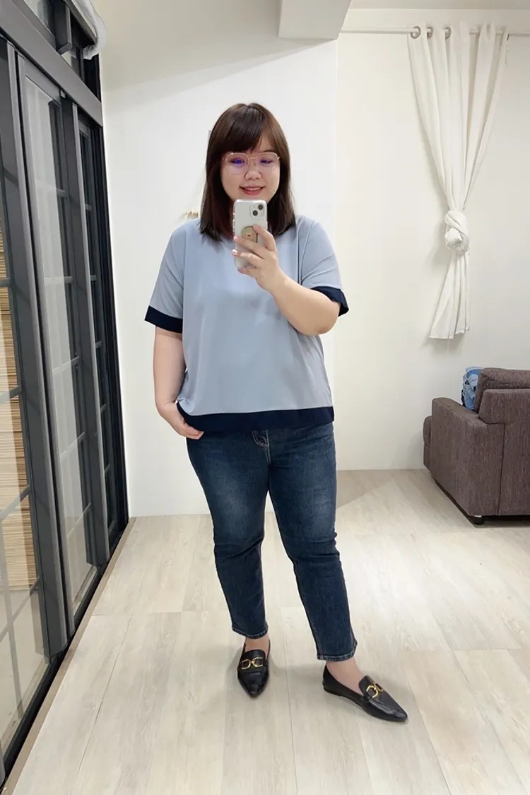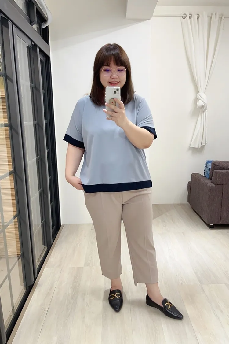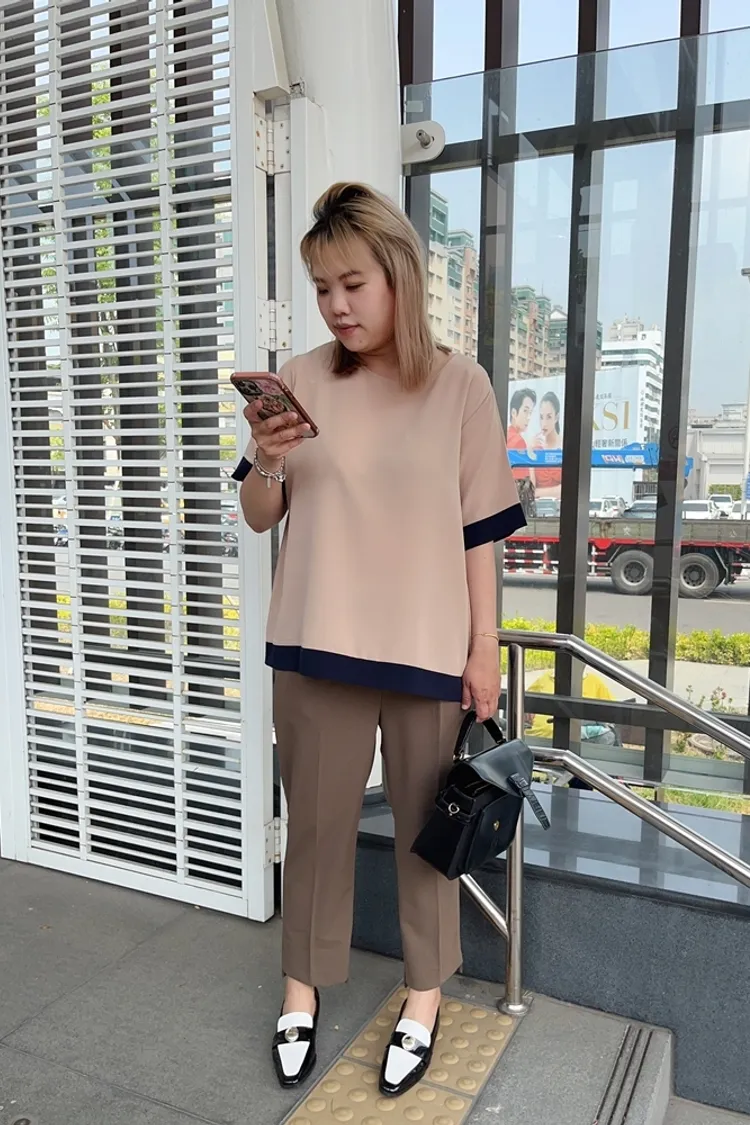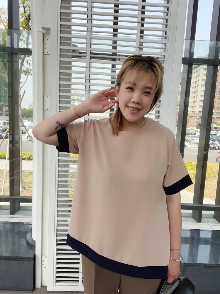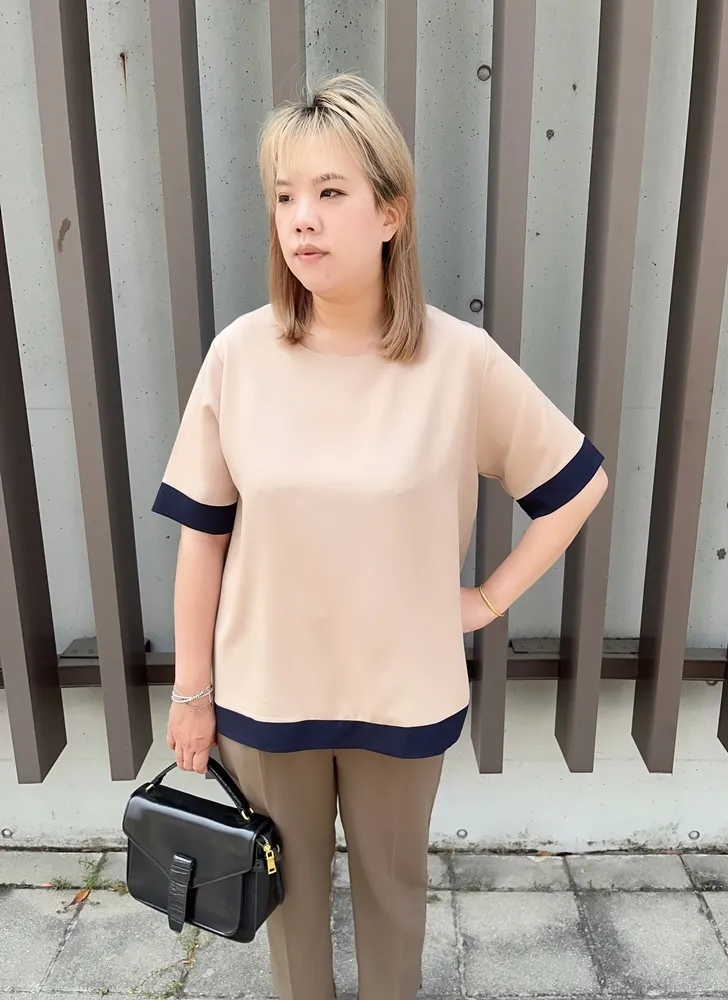 袖口跟下擺做了撞色拼色設計,讓整體穿搭更有層次感