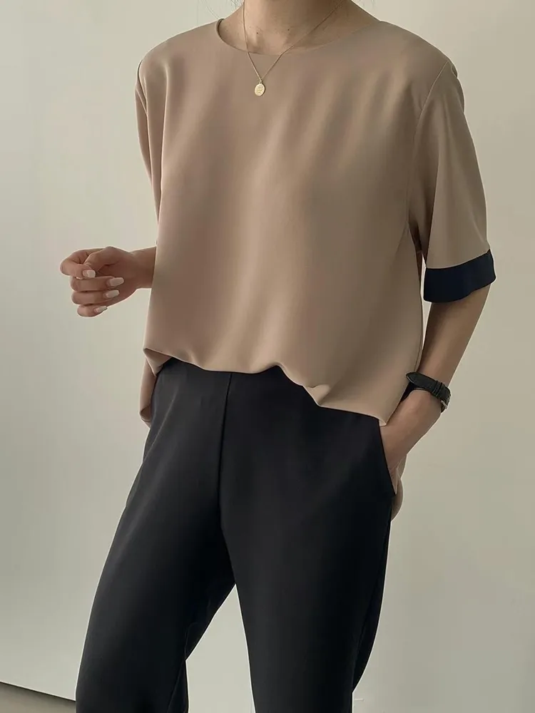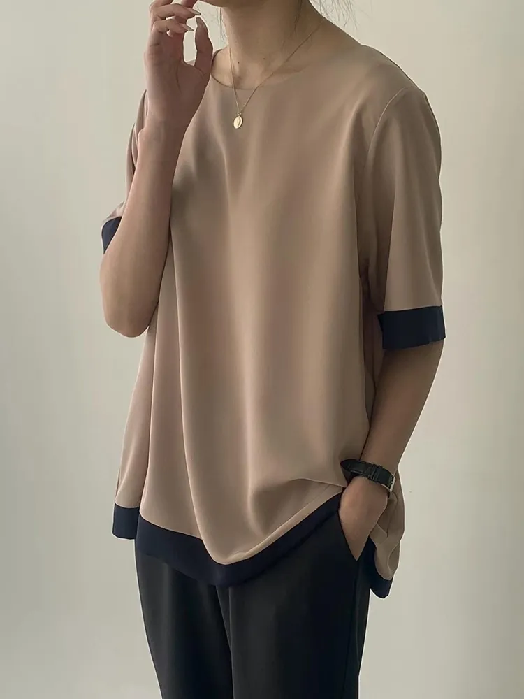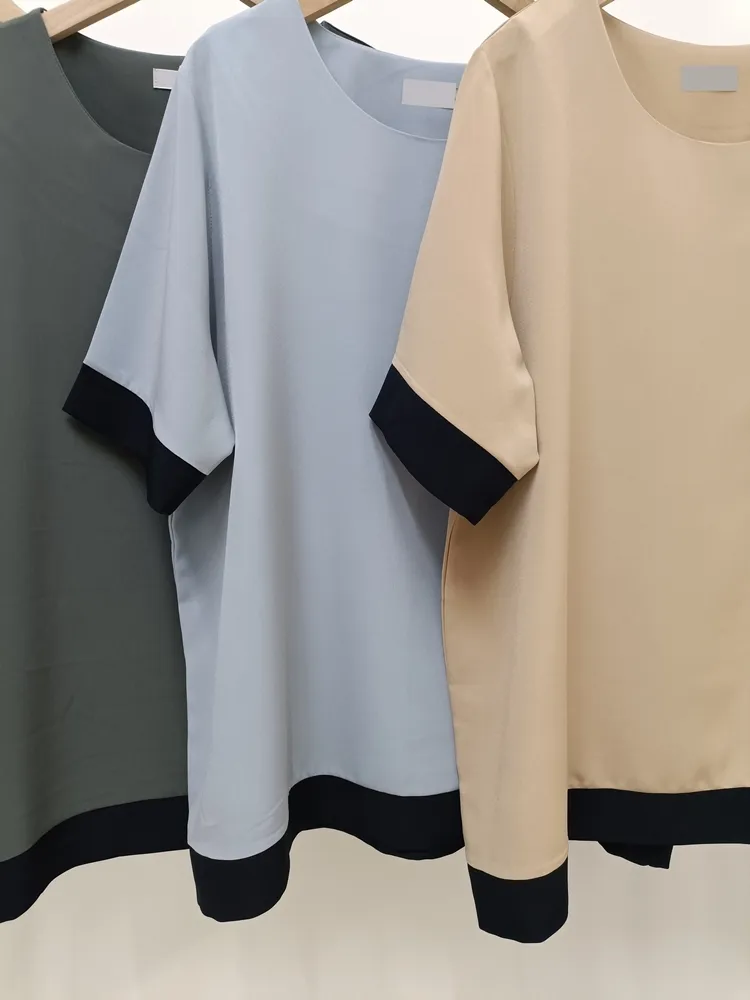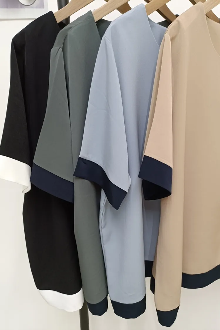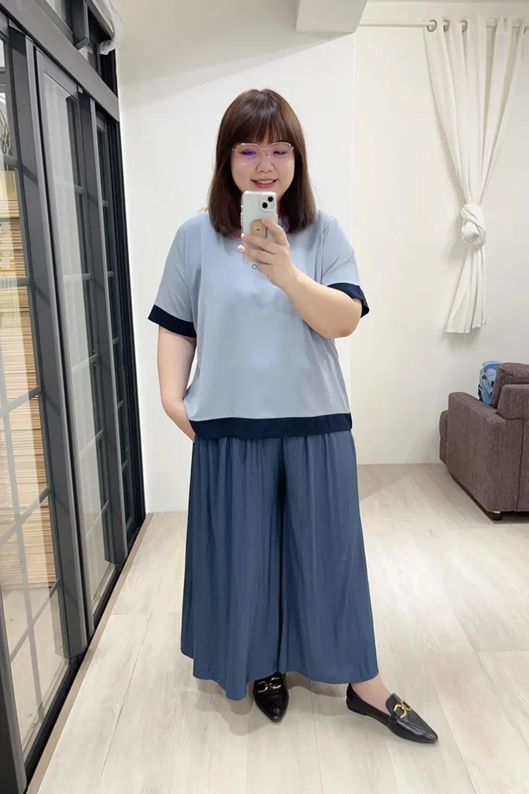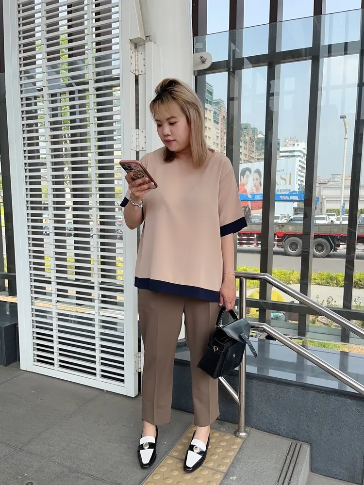 袖口跟下擺做了撞色拼色設計,讓整體穿搭更有層次感