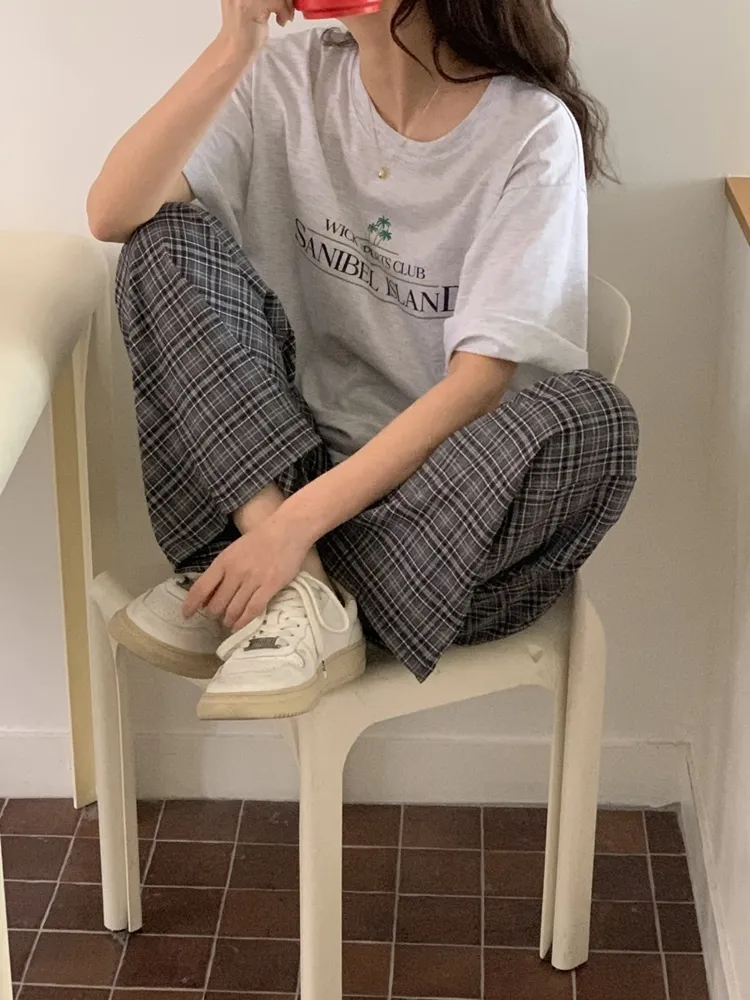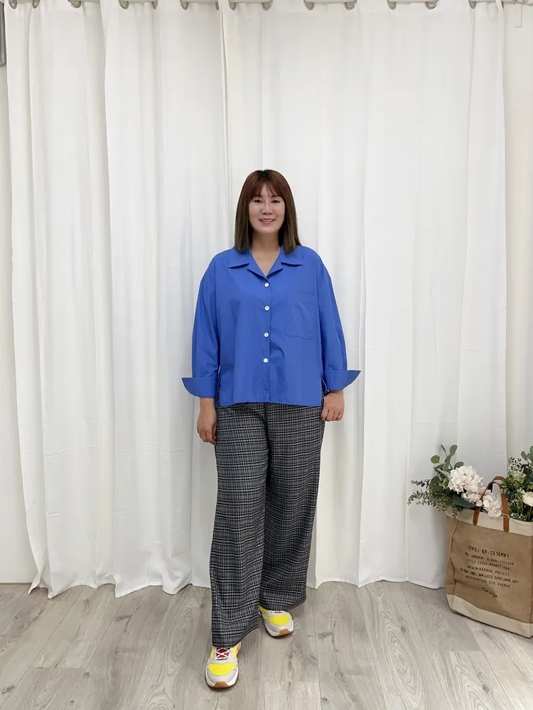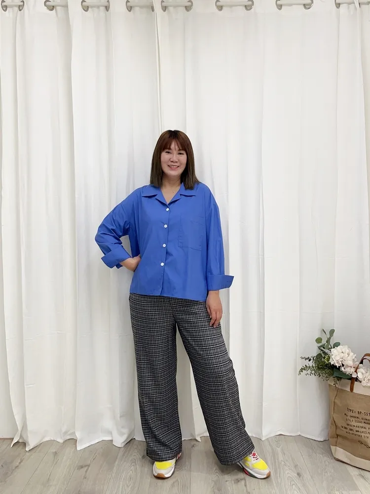這款格紋布料選得很棒,居家、休閒穿著都是可以的哦!