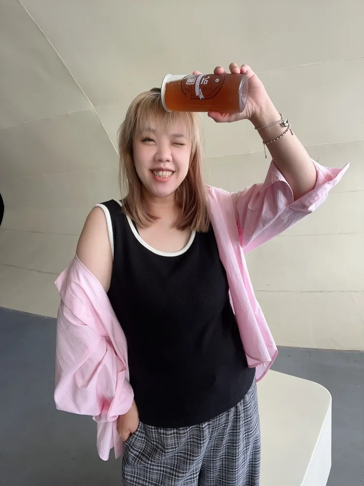 ▸歐妞Oprah→有小腹,穿粉M合身、黑L寬鬆