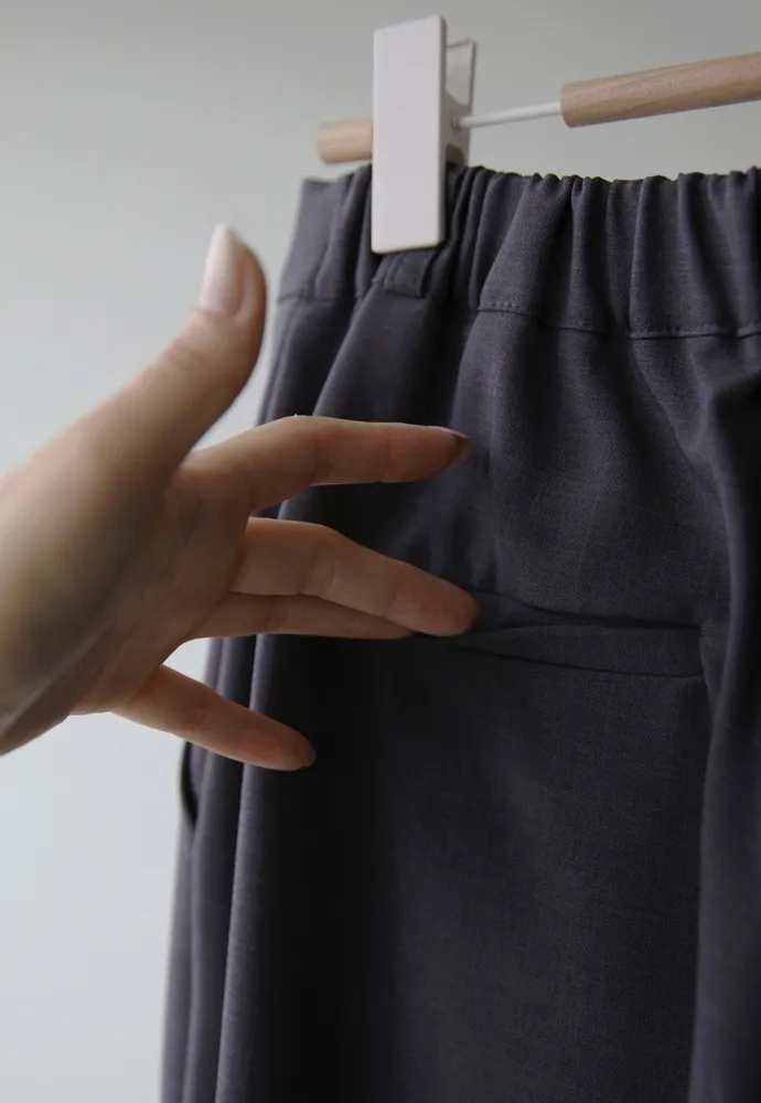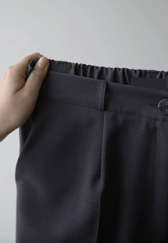 ✓ 褲頭正面開釦,有皮帶環;背面彈性伸縮鬆緊帶