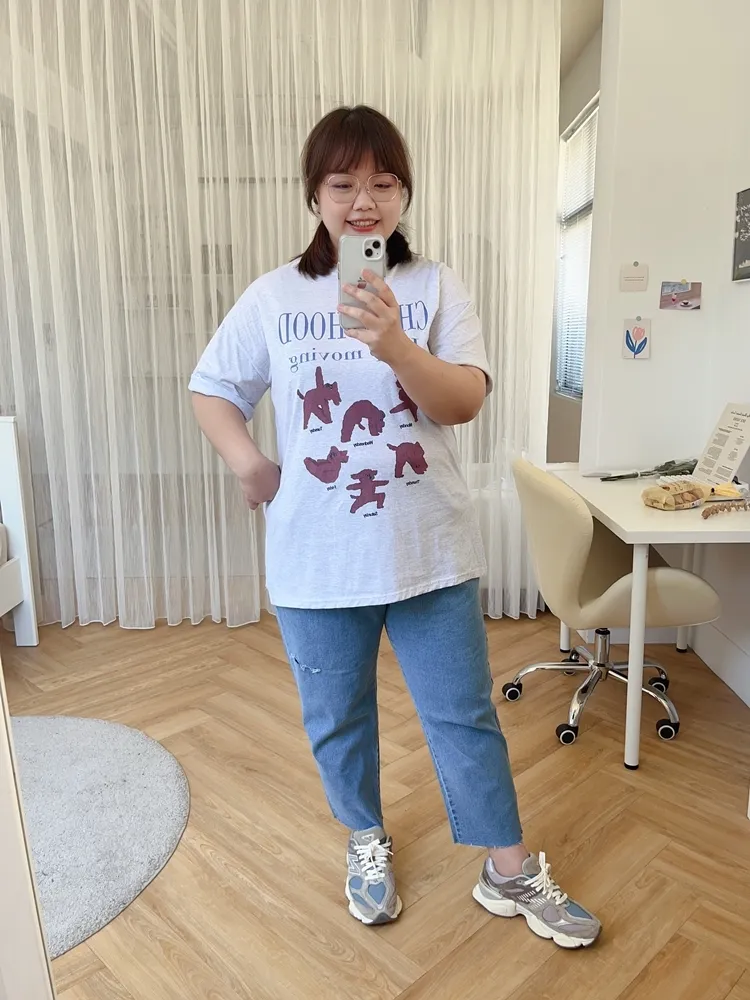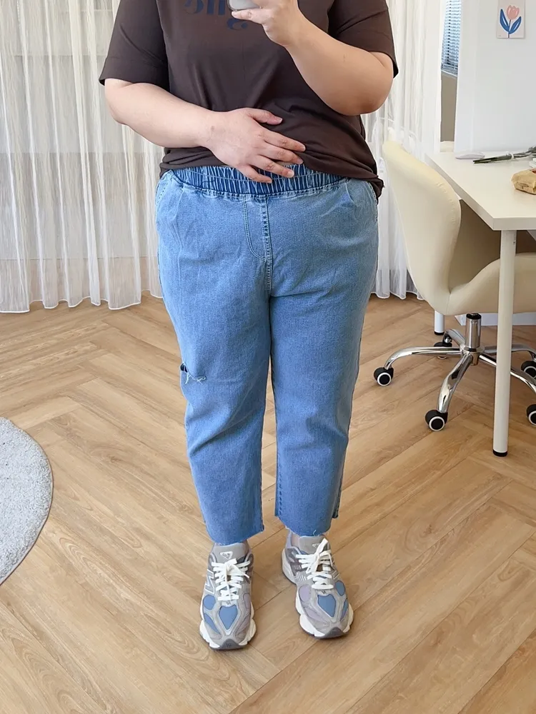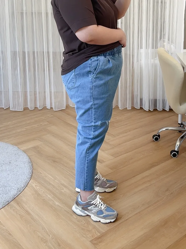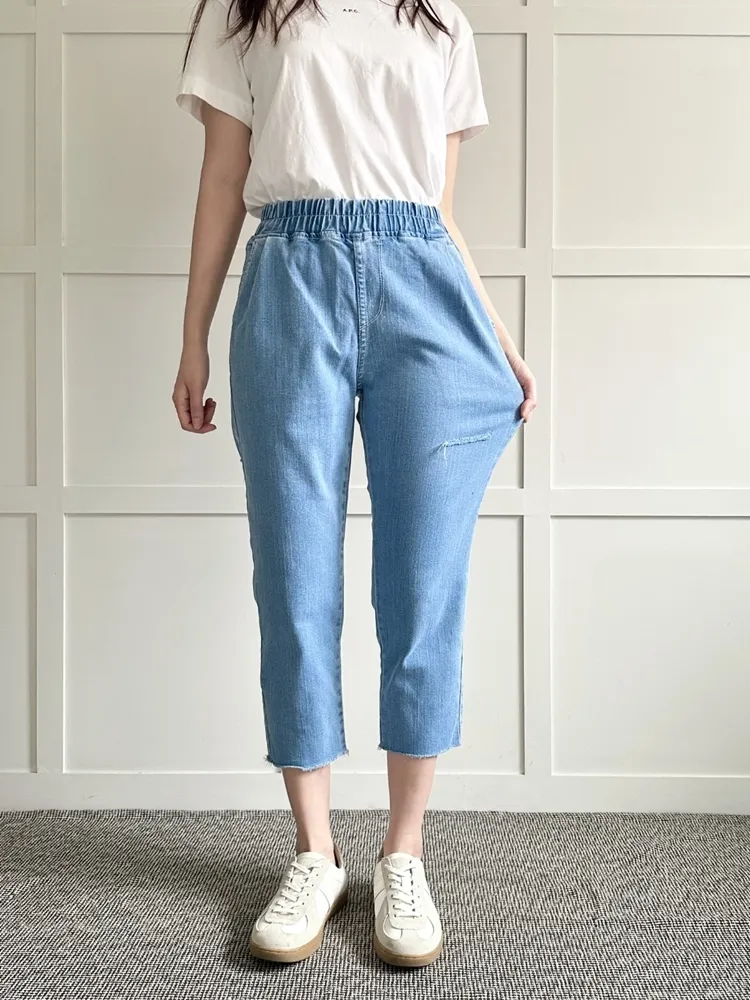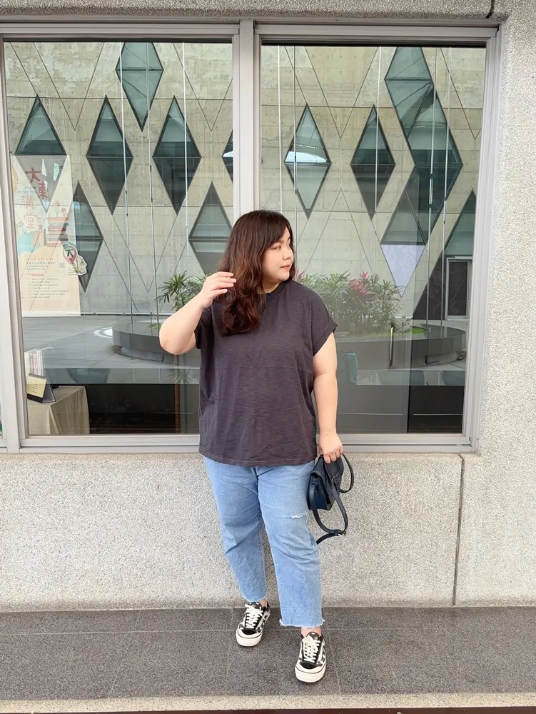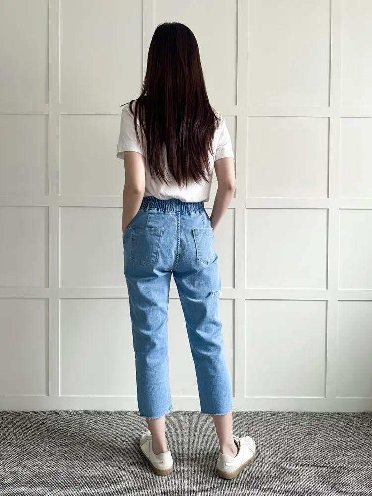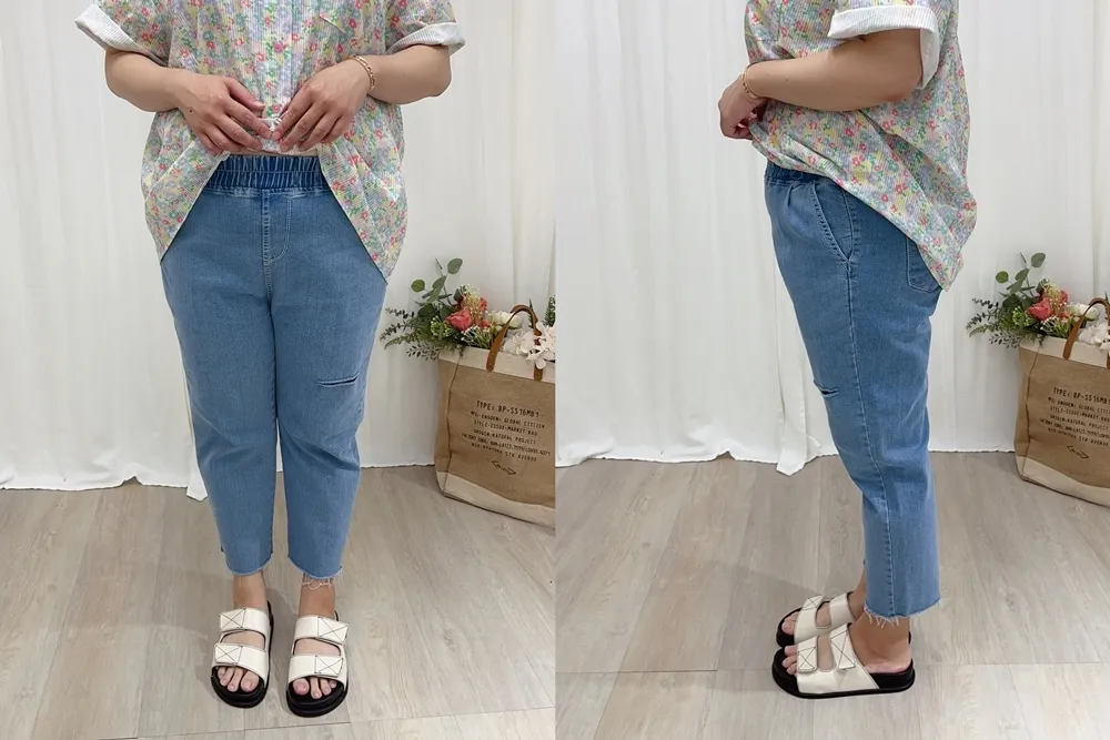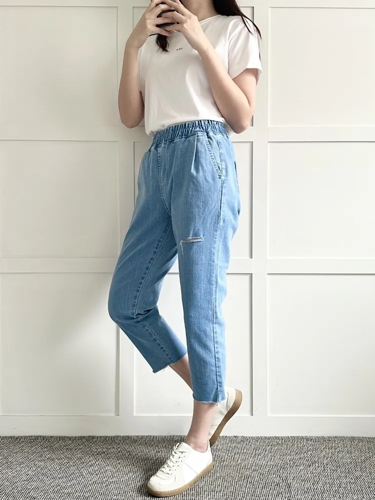 褲管割破設計,讓牛仔褲有小小設計感,穿著上又不會帶來不便