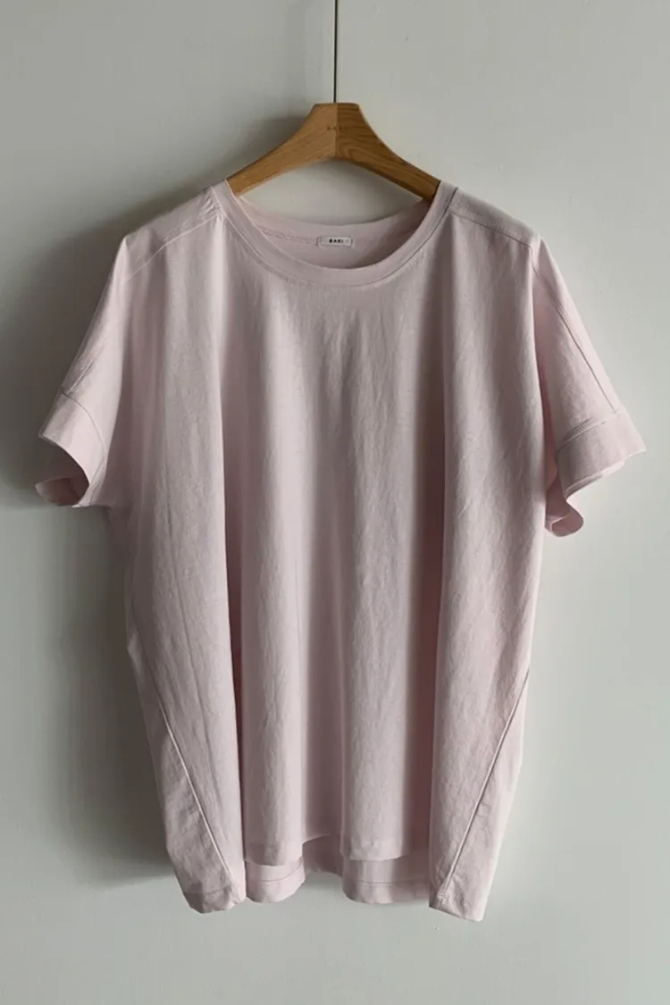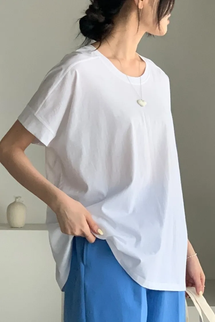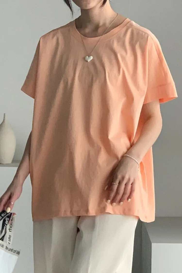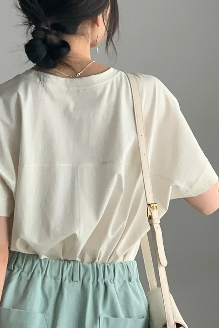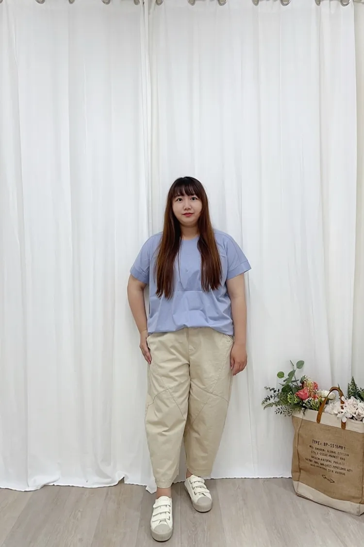 ✓ 圓領,袖口拼接設計,看起來有折袖感