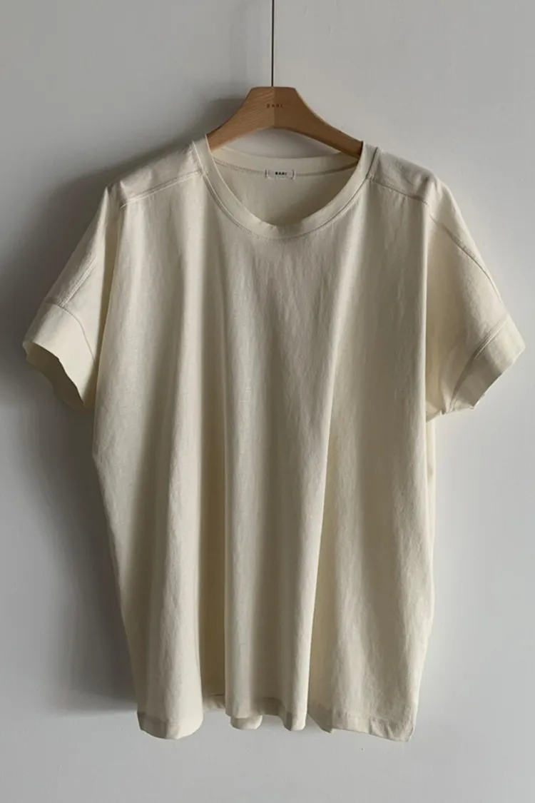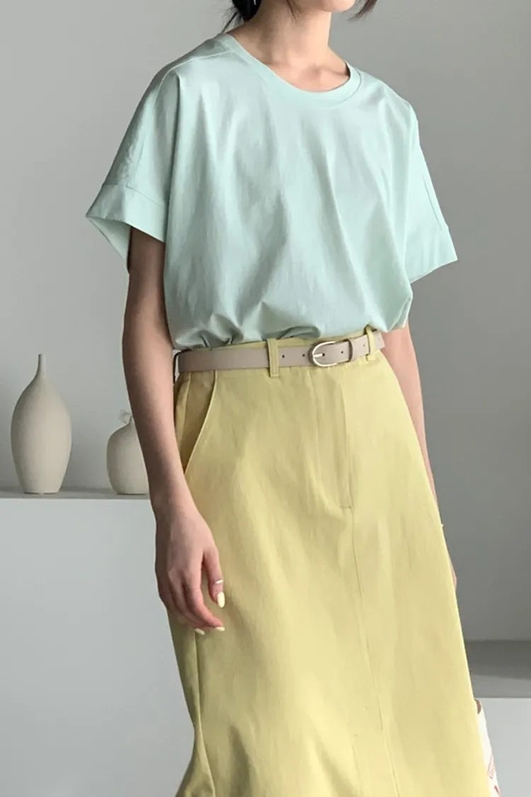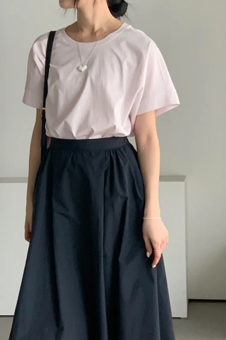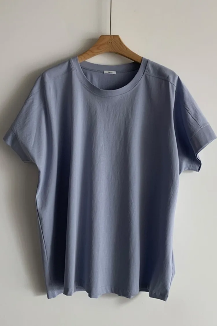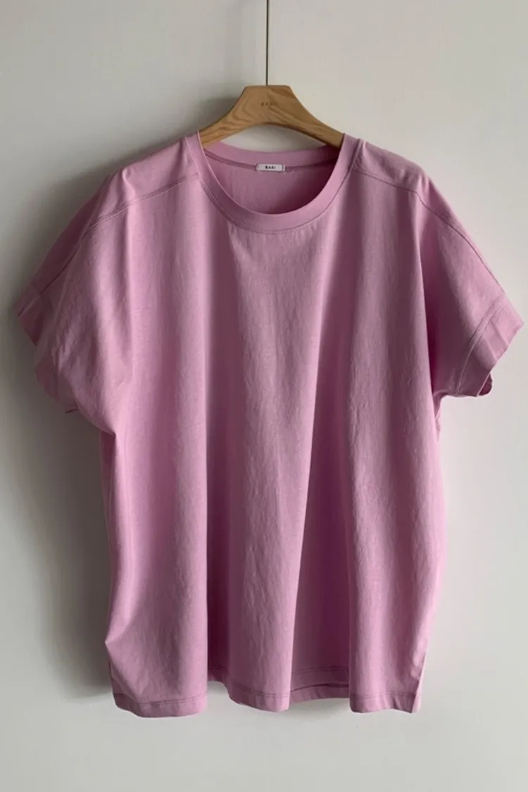 ✓ 圓領,袖口拼接設計,看起來有折袖感