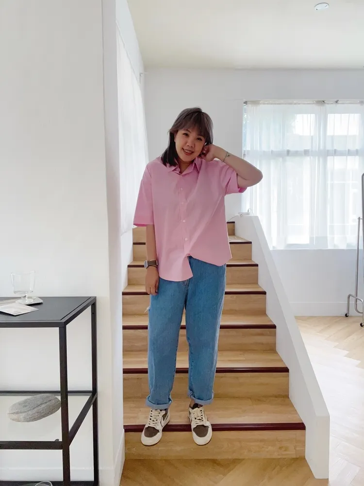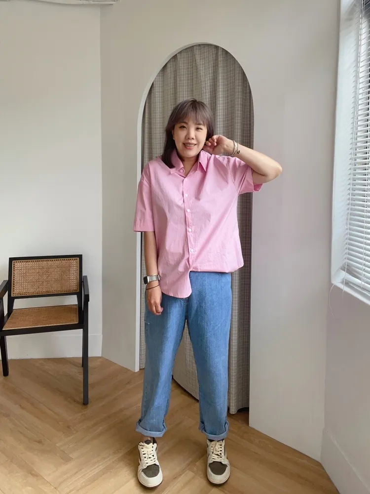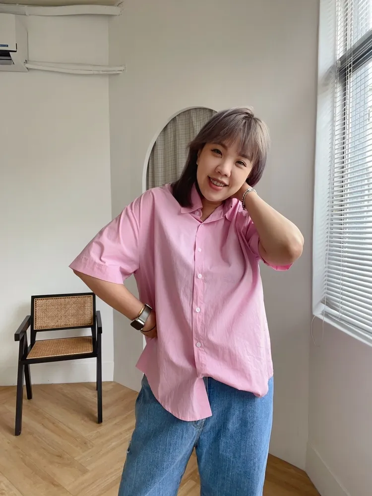 | F | 52 | 56 | 25 | 23 | 61 | 65-69 | 歐妞穿微寬鬆/蓮妞穿可當外套,無法全扣當襯衫/Hana穿寬鬆/怡玲穿微寬鬆/Ivy穿微鬆 |