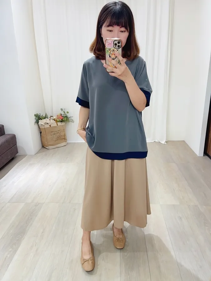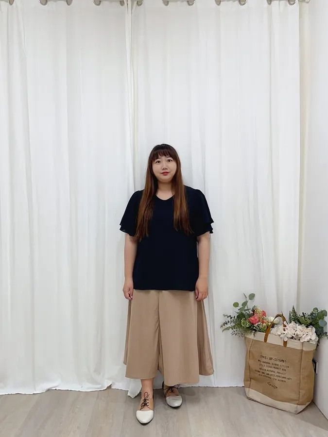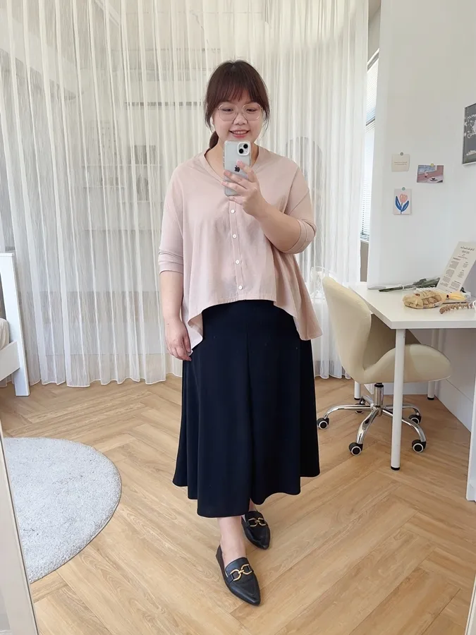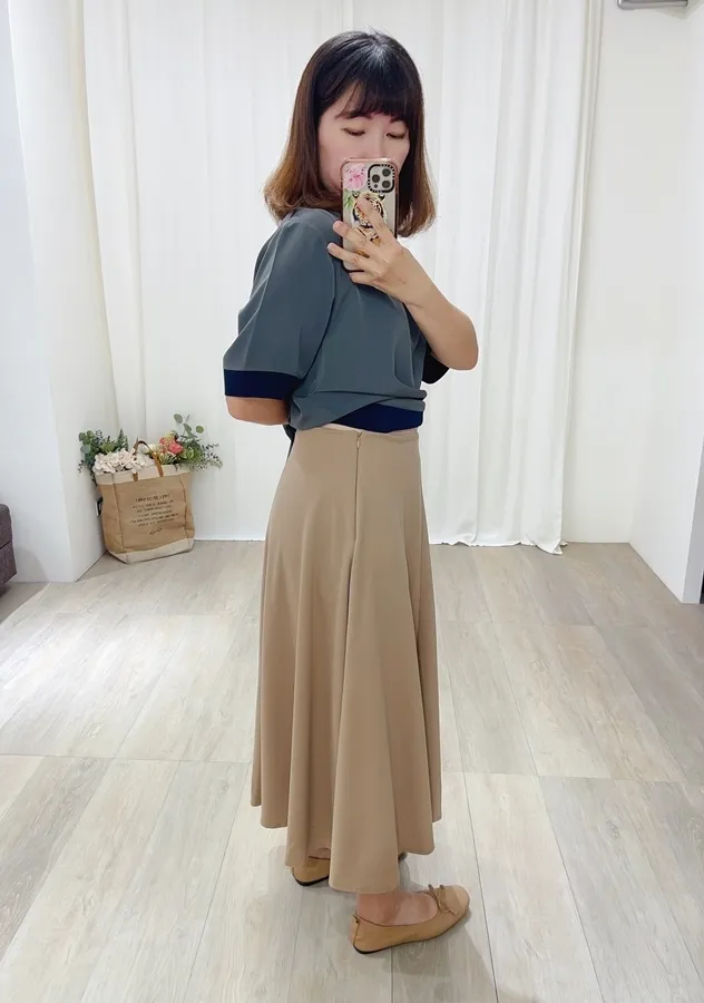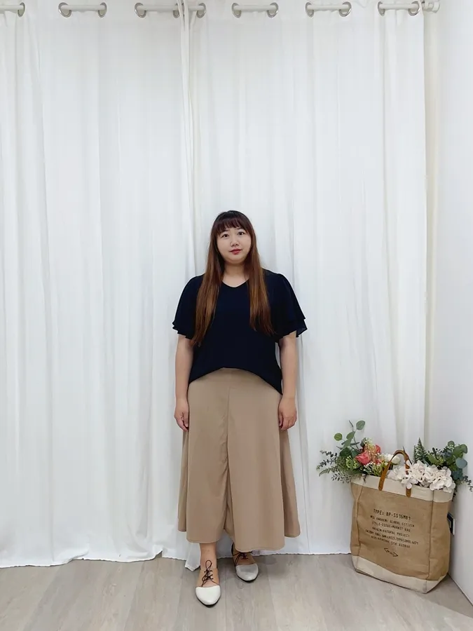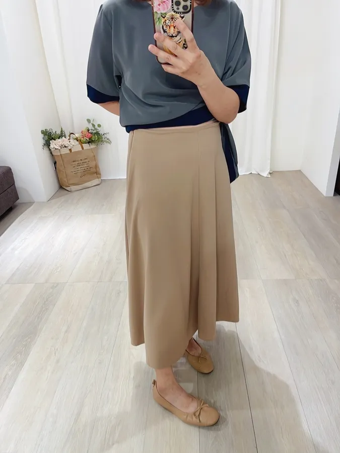 ✓ A字裙擺,正面有做直線剪裁線,視覺上會有寬褲感