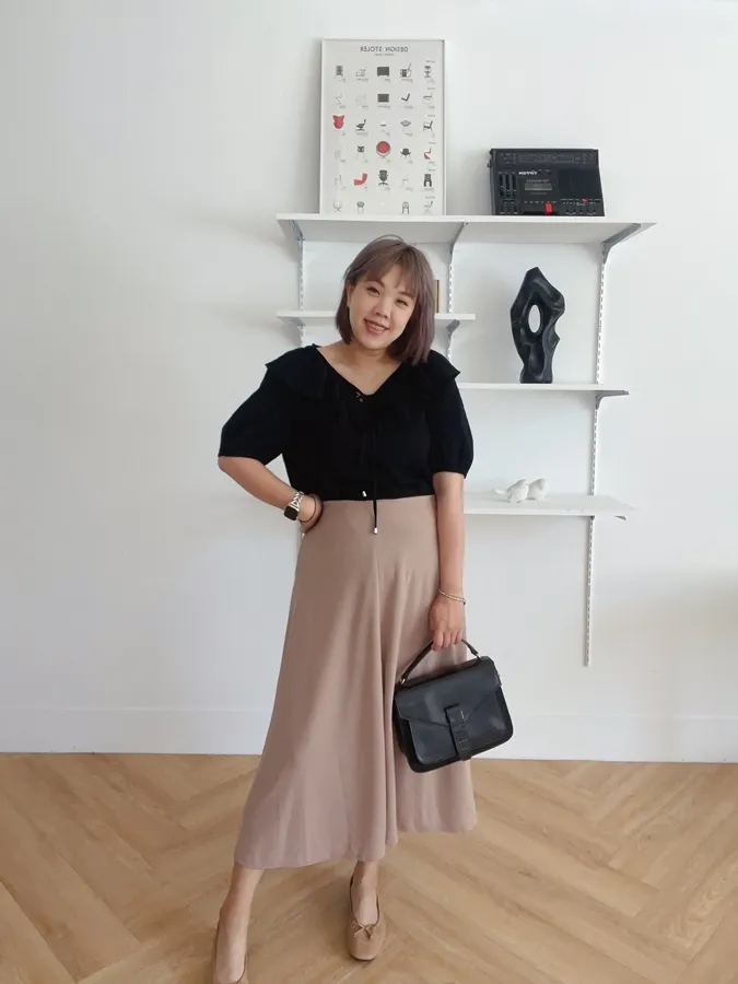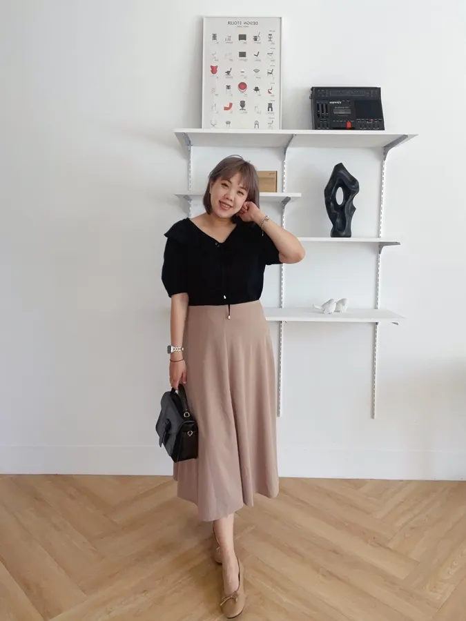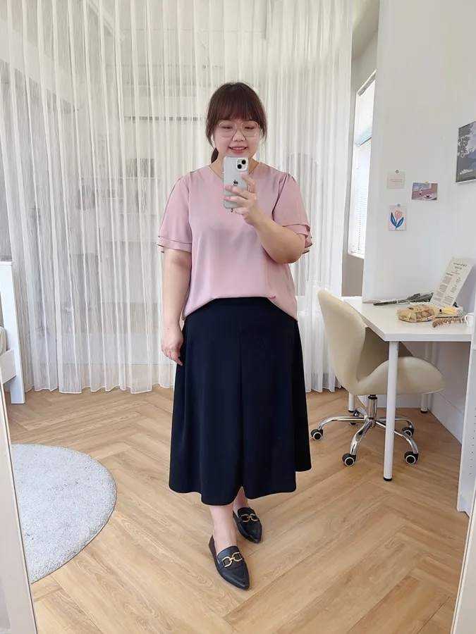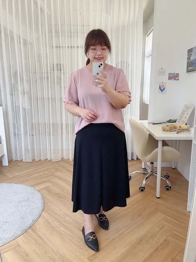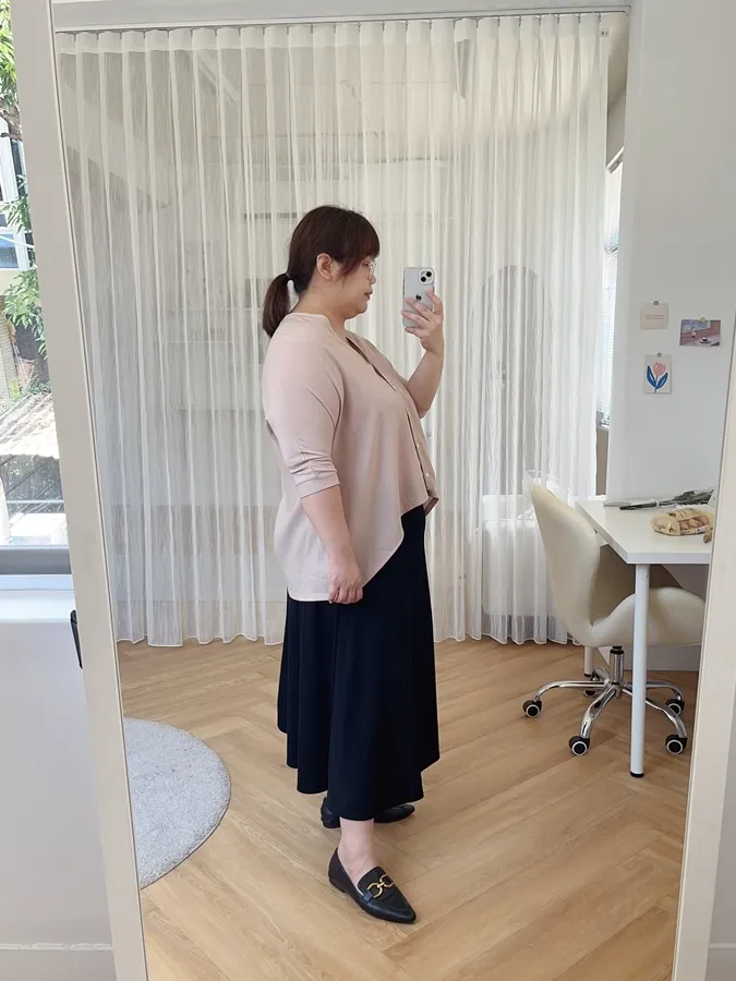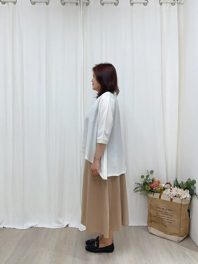 ✓ A字裙擺,正面有做直線剪裁線,視覺上會有寬褲感