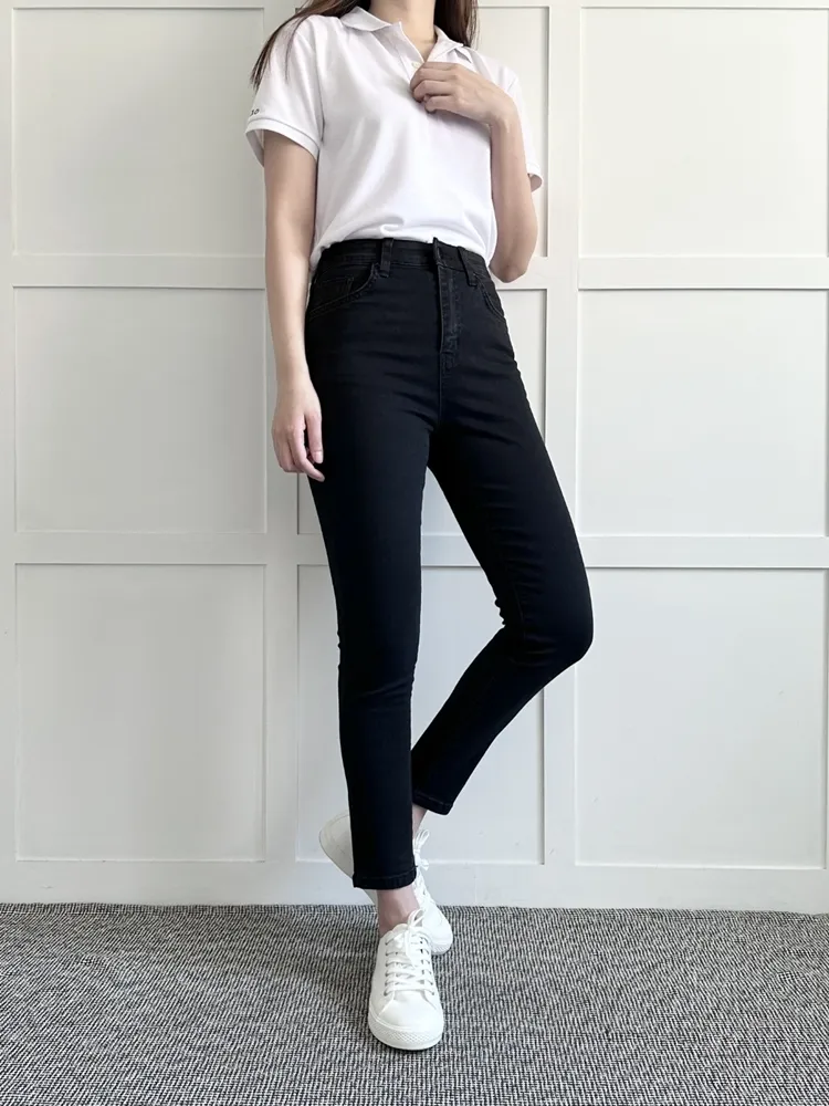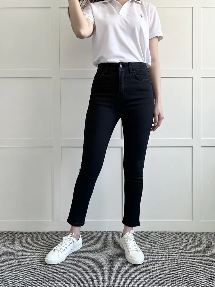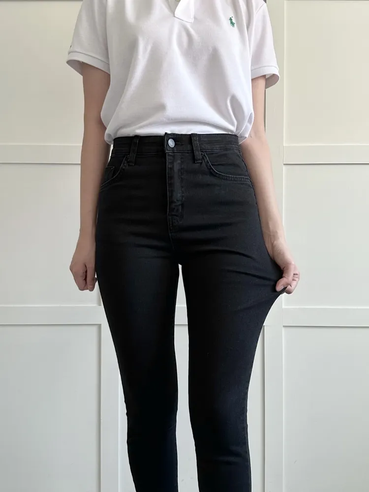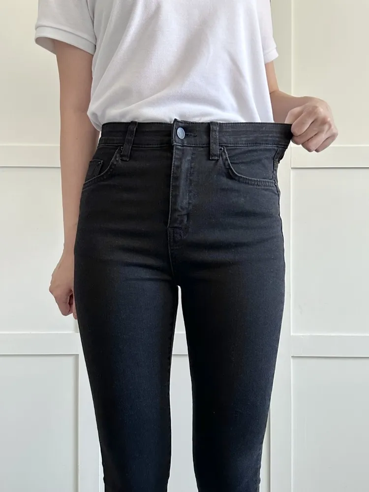 ✓ 正黑色棉質牛仔褲,布料有彈性,活動起來更加舒服