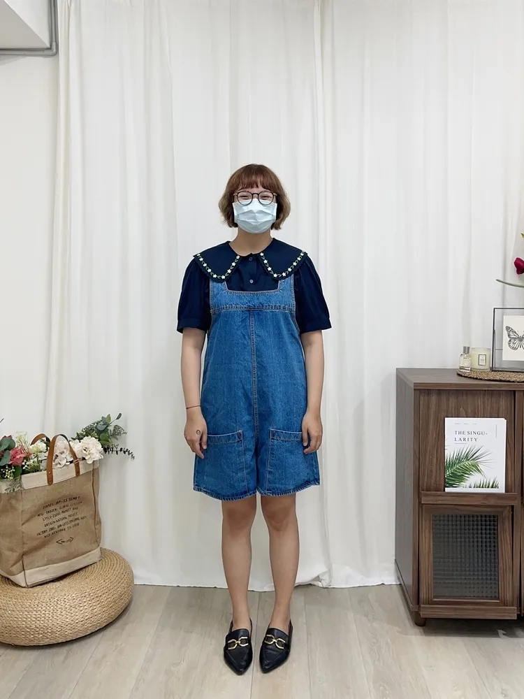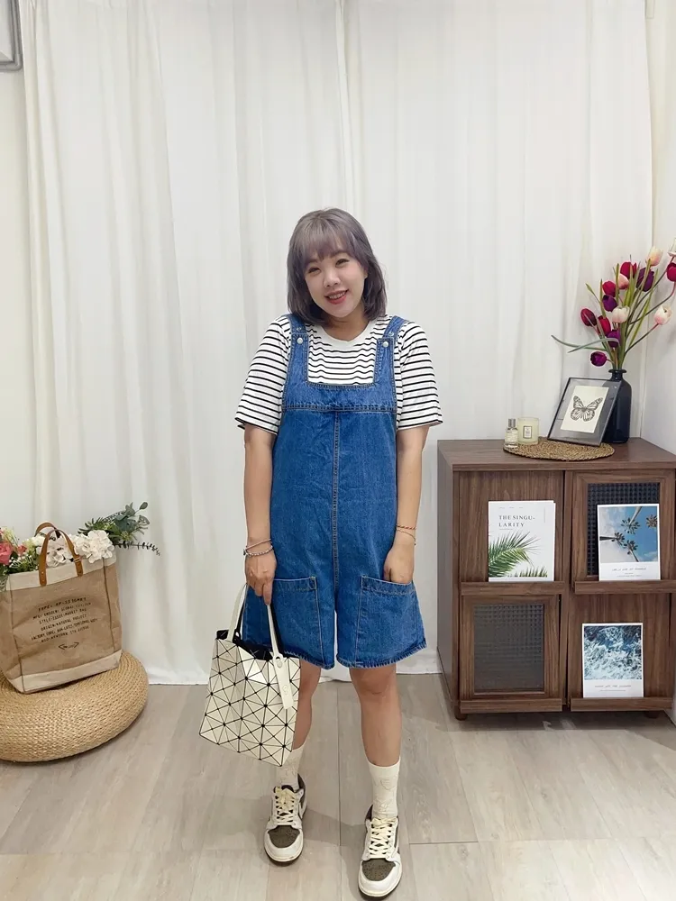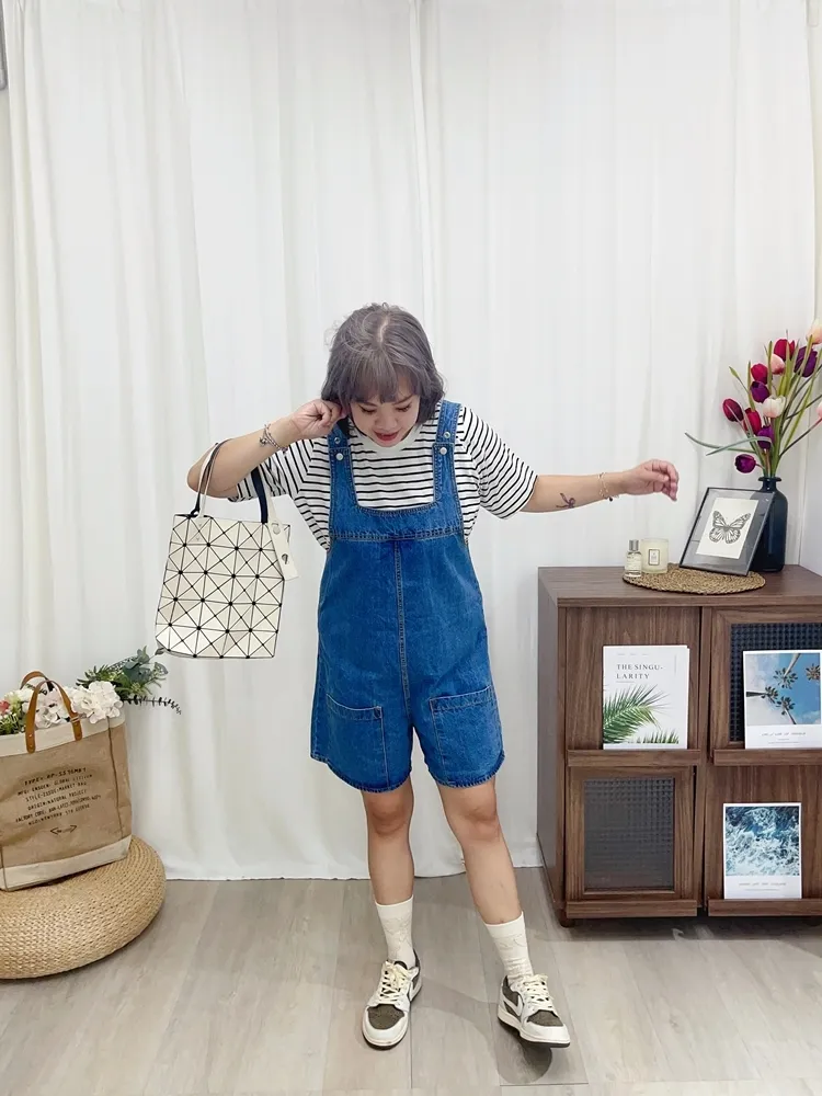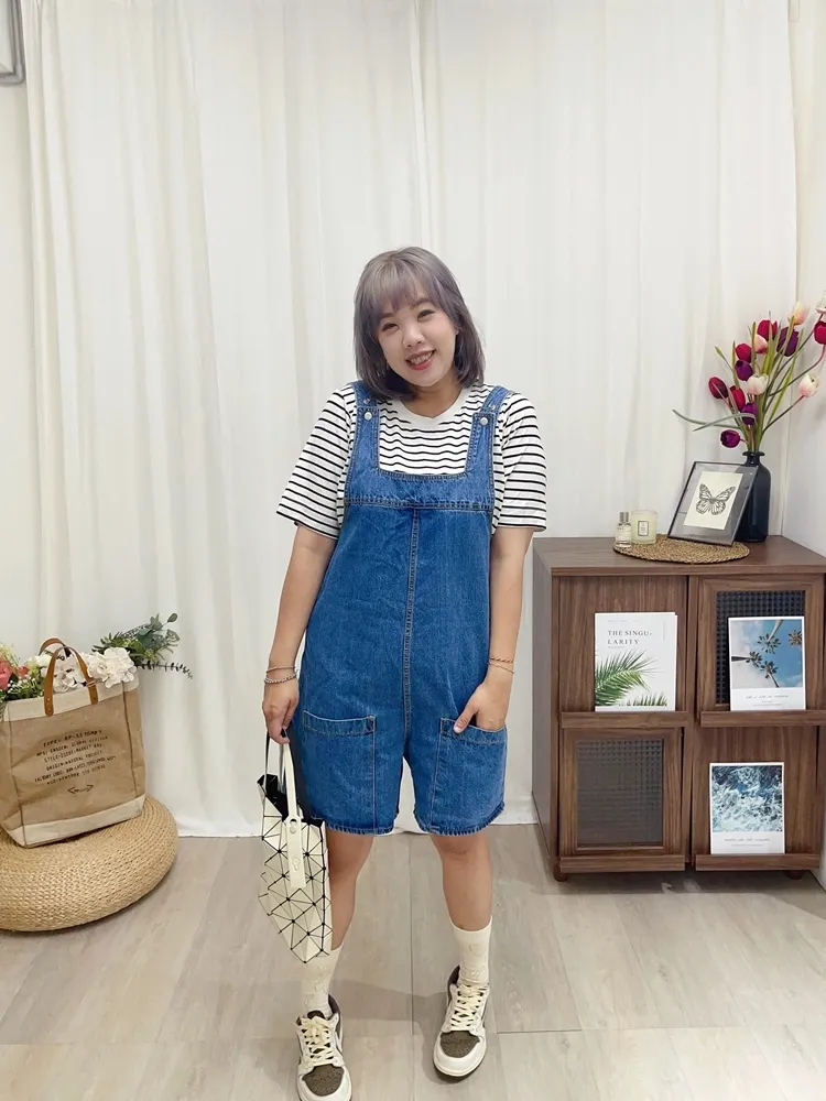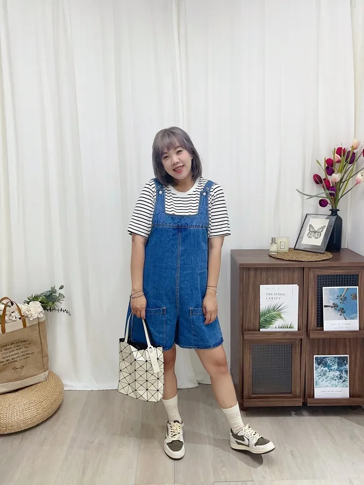 ✓ 俏皮牛仔吊帶短褲,夏天穿超級可愛,可兩面穿著