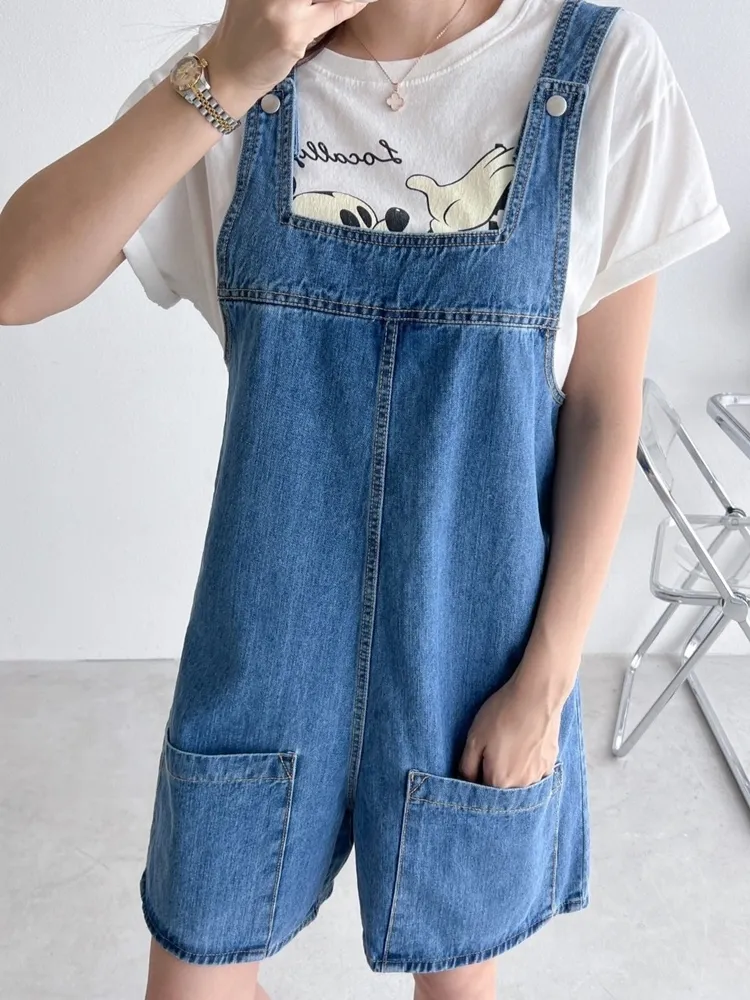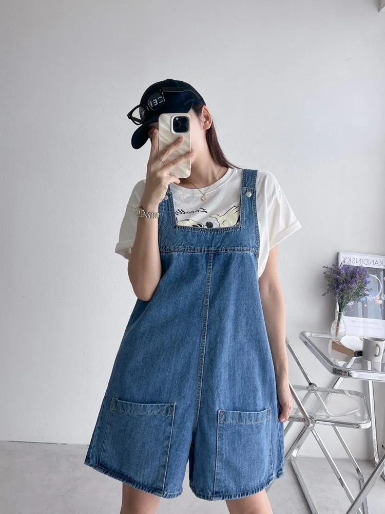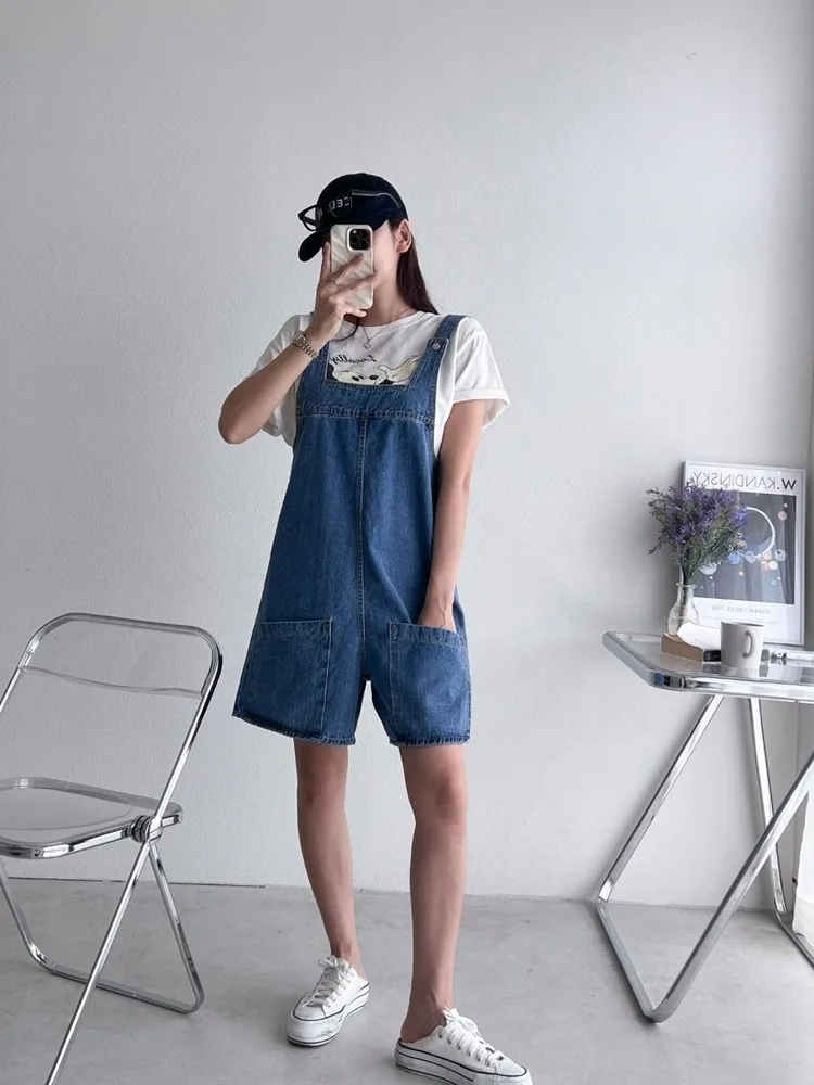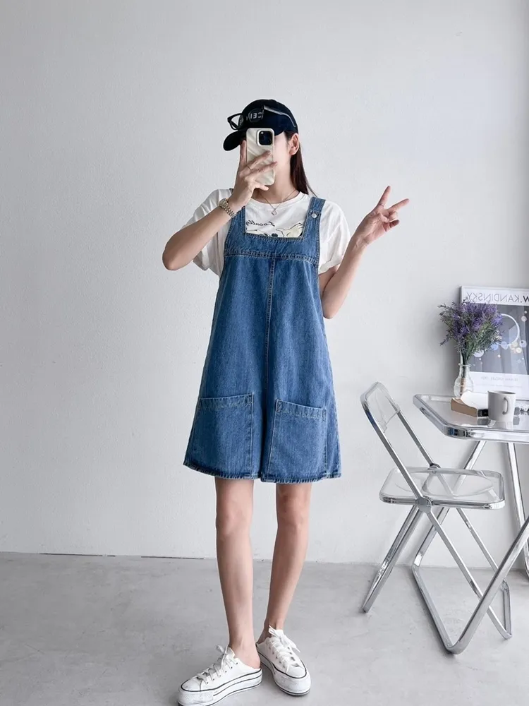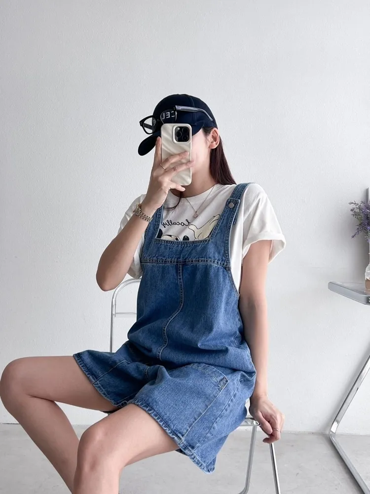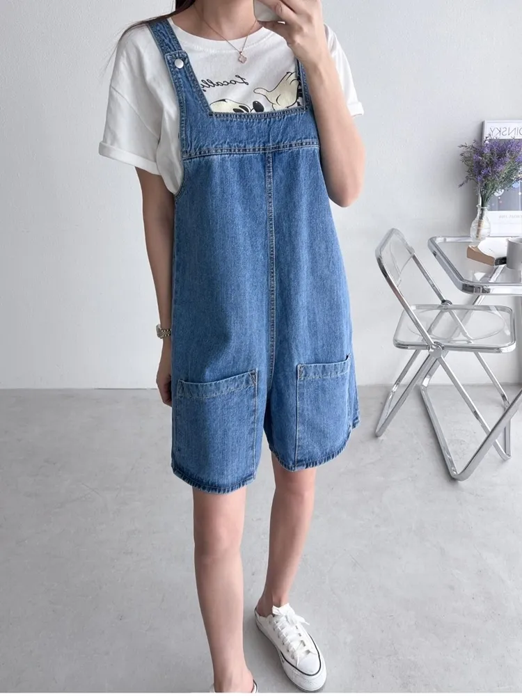 ✓ 俏皮牛仔吊帶短褲,夏天穿超級可愛,可兩面穿著
