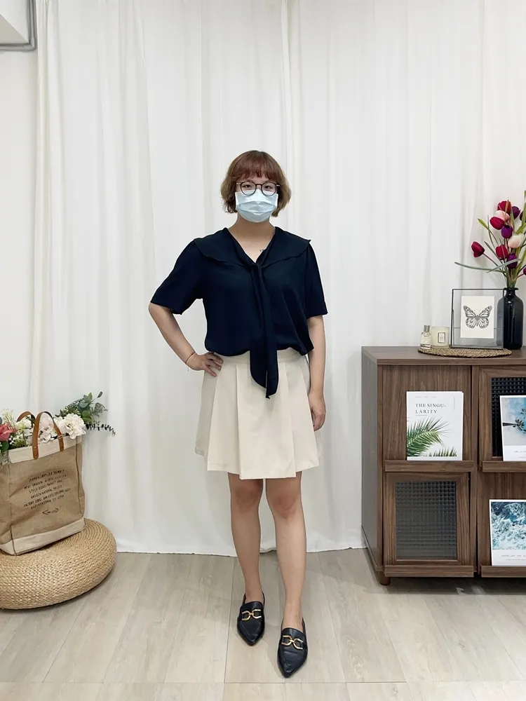 寬折設計,讓裙身有造型,修飾我們的腹部,不會有一大片平面的視覺感