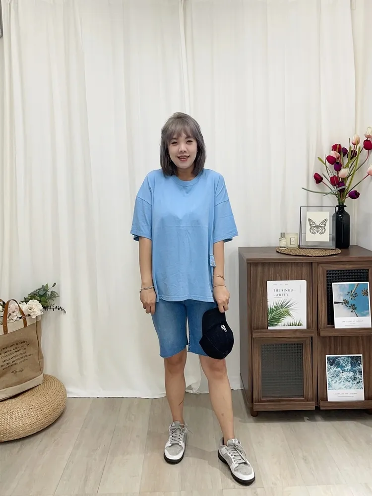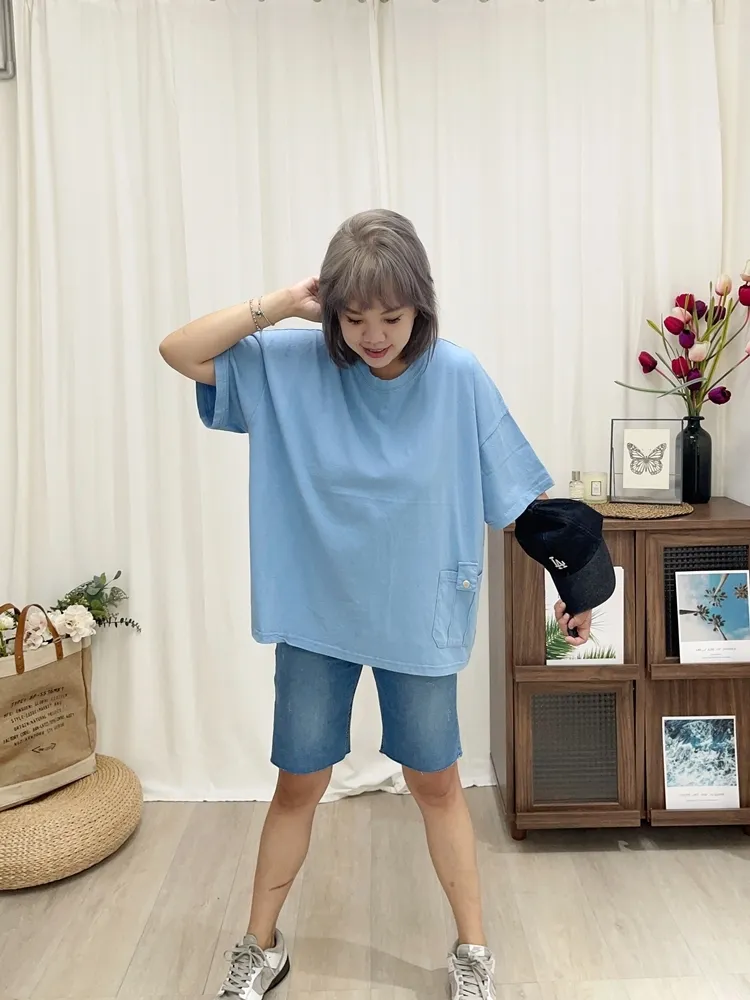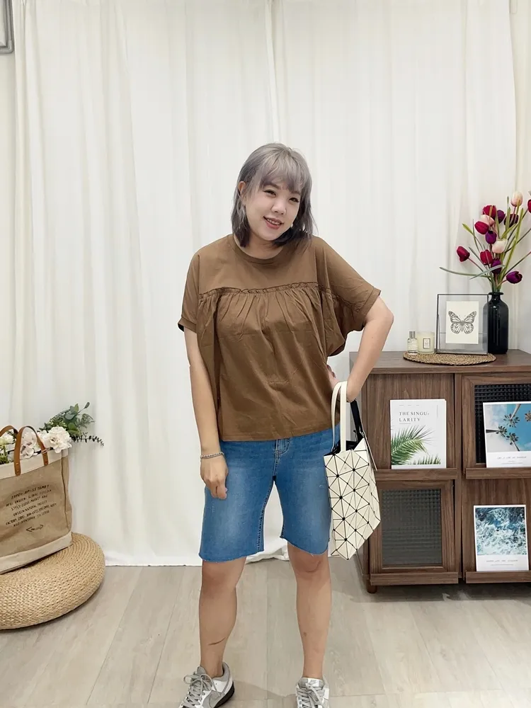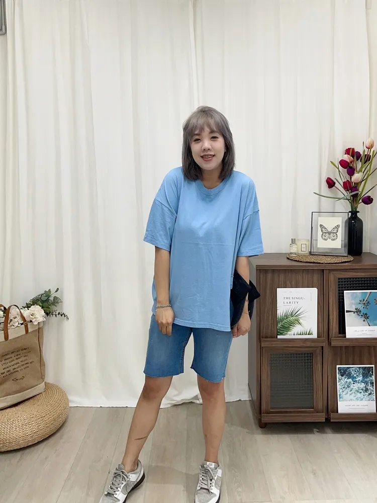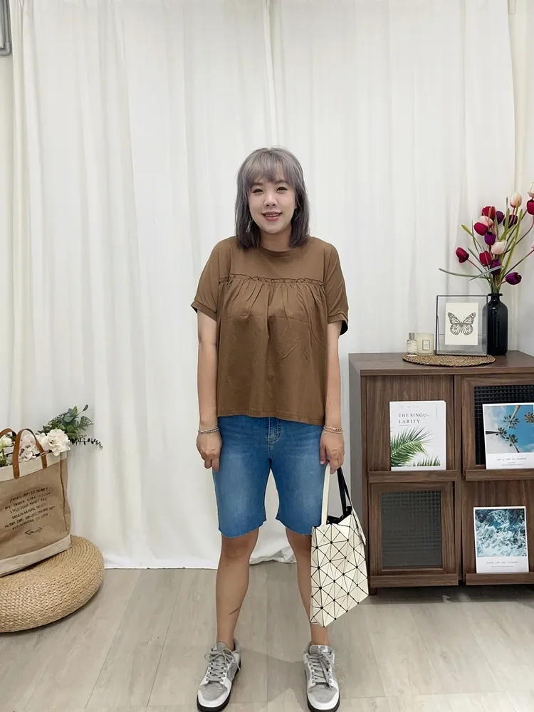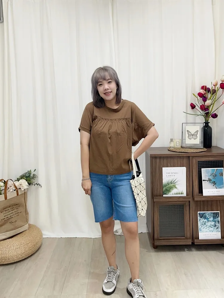 ✓ 五分長牛仔褲,褲管幾處些微刷破設計