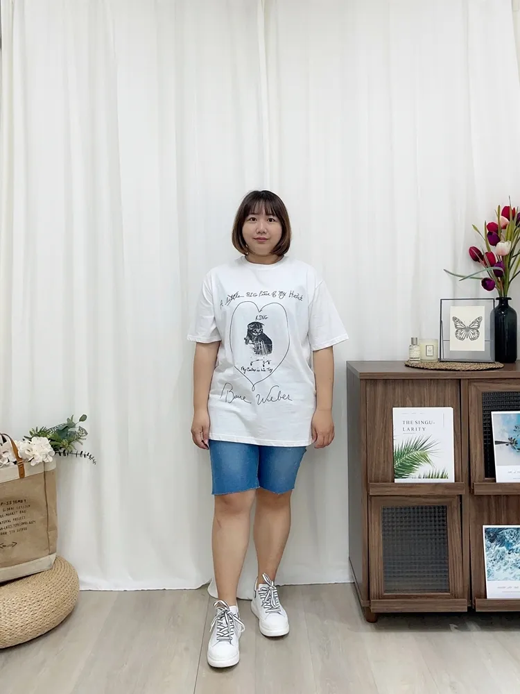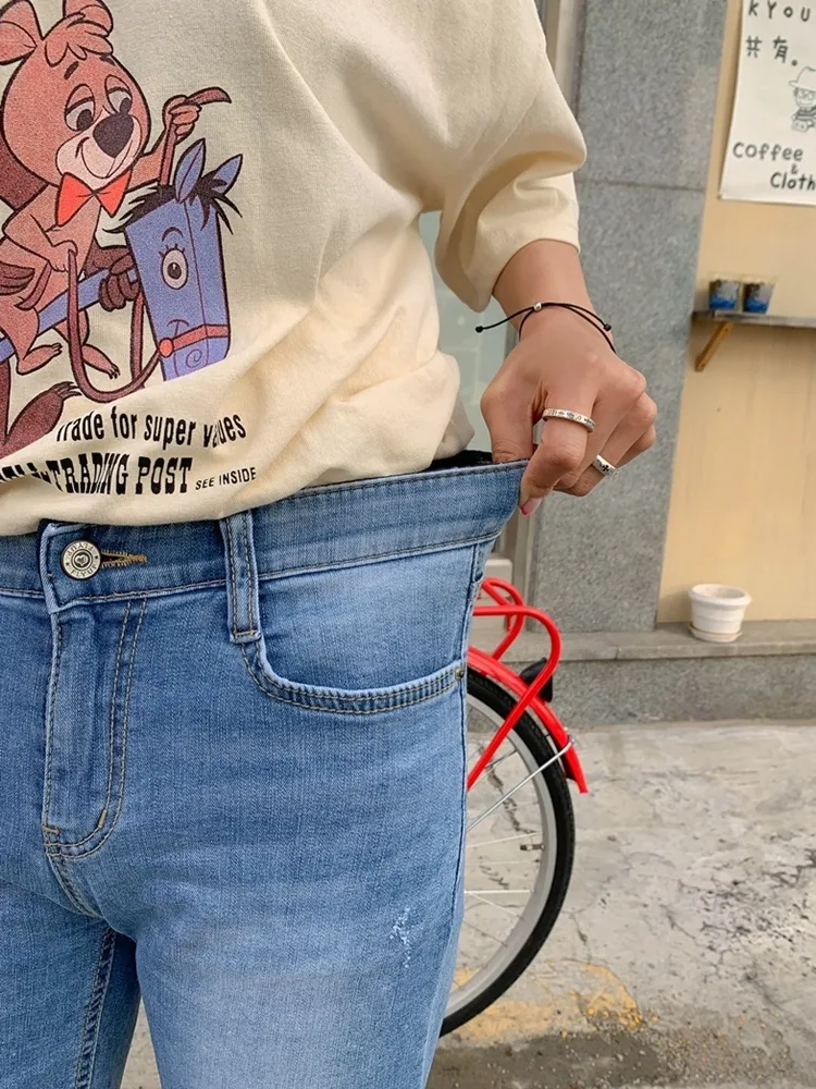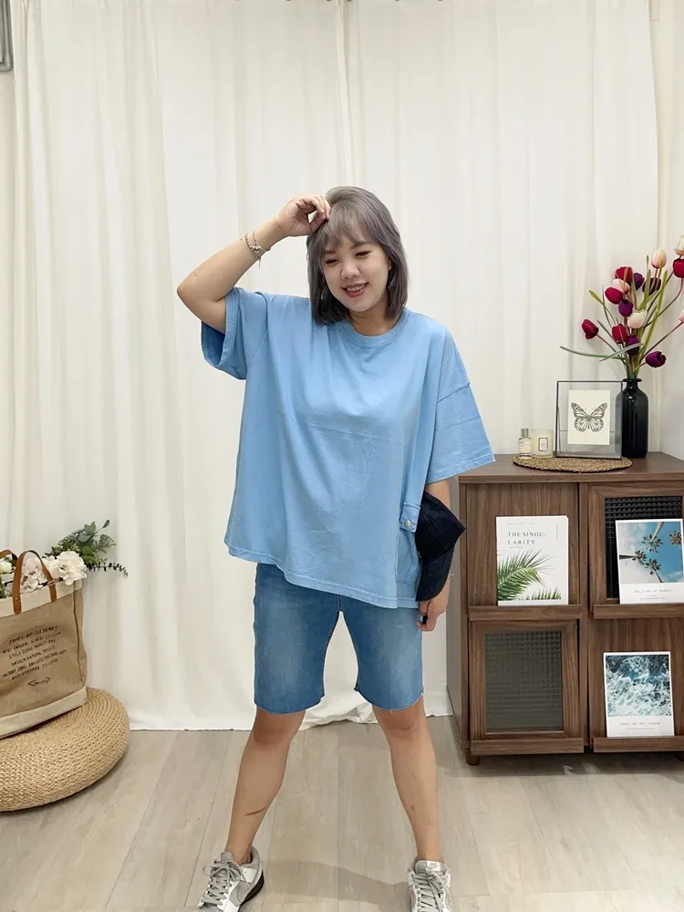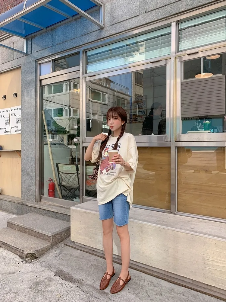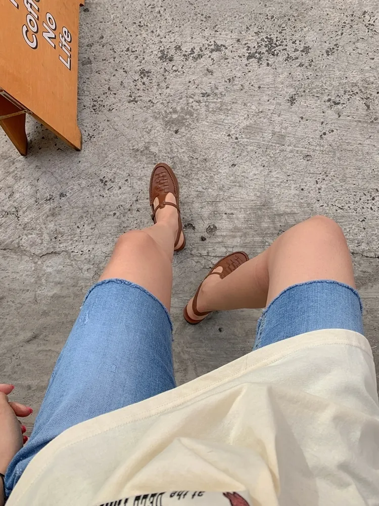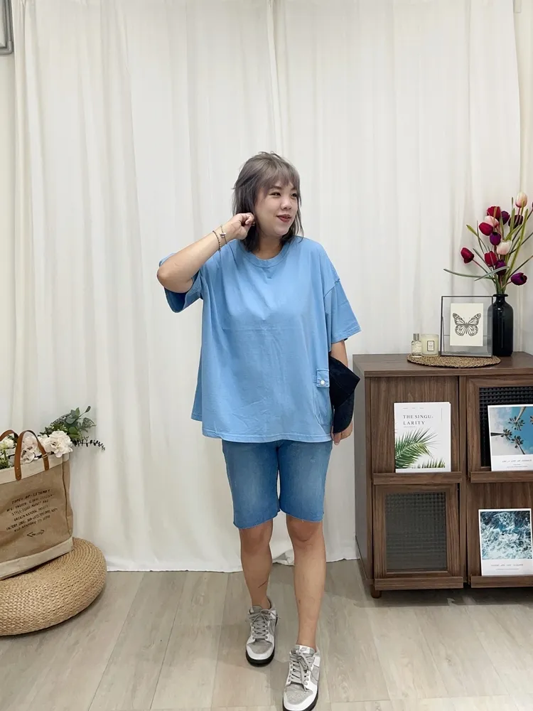 ✓ 五分長牛仔褲,褲管幾處些微刷破設計