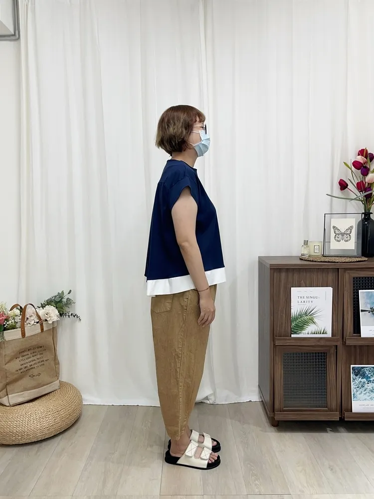✓ 撞色設計,視覺感非常明亮;有挺度的棉質+俐落袖,穿起來非常有精神