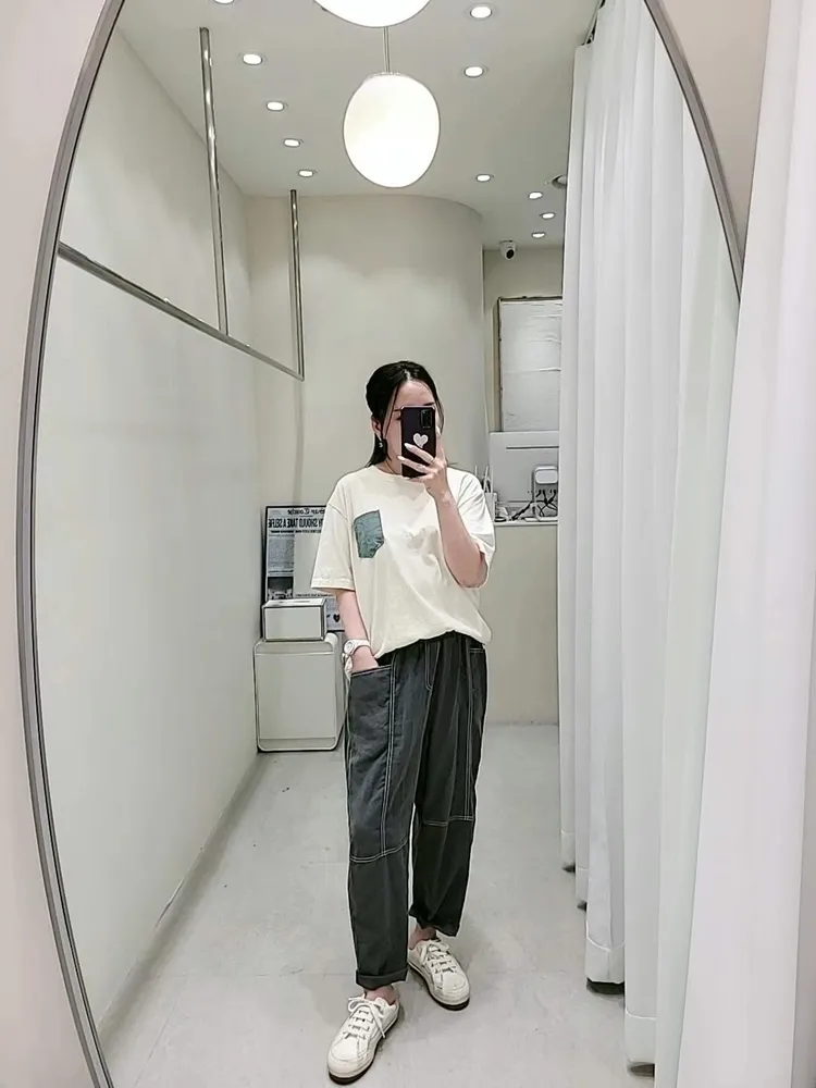 ✓ 超長滾白線長方形口袋(實際口袋是正常大小哦)+剪裁線設計,讓整體下半身看起來更加修長