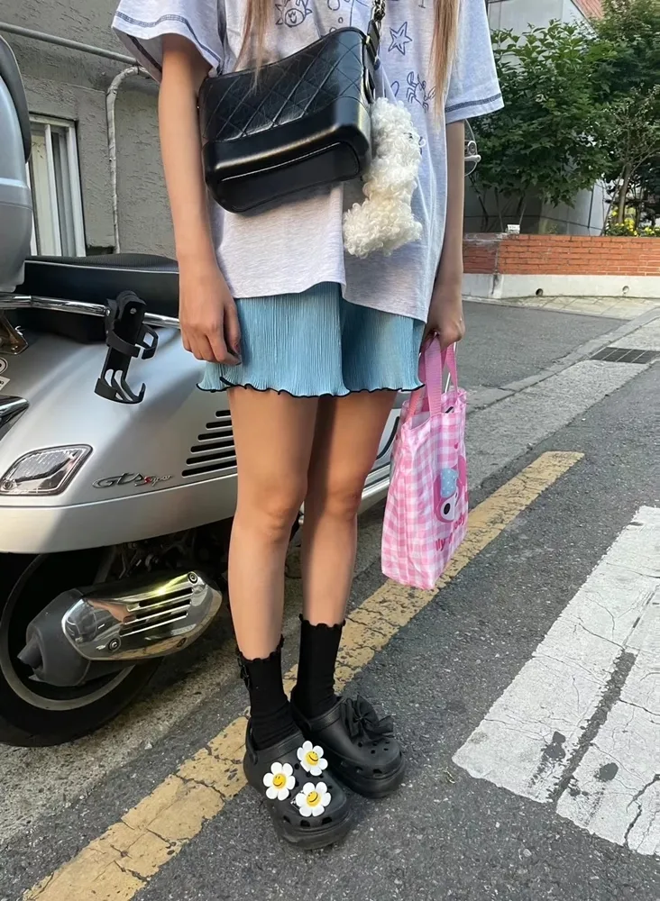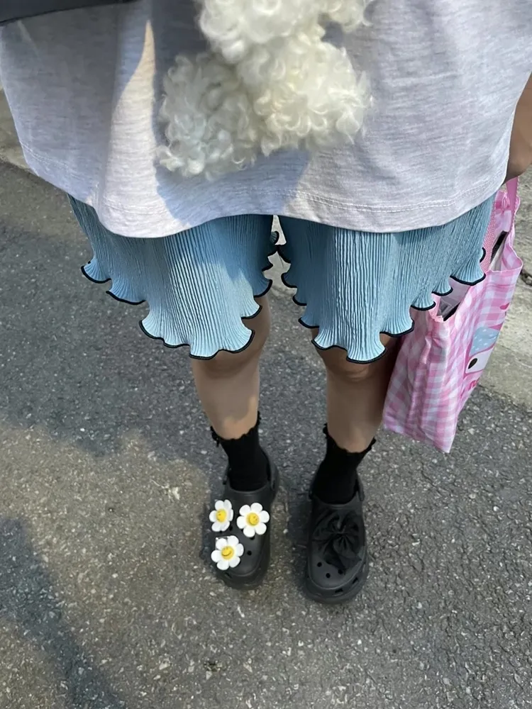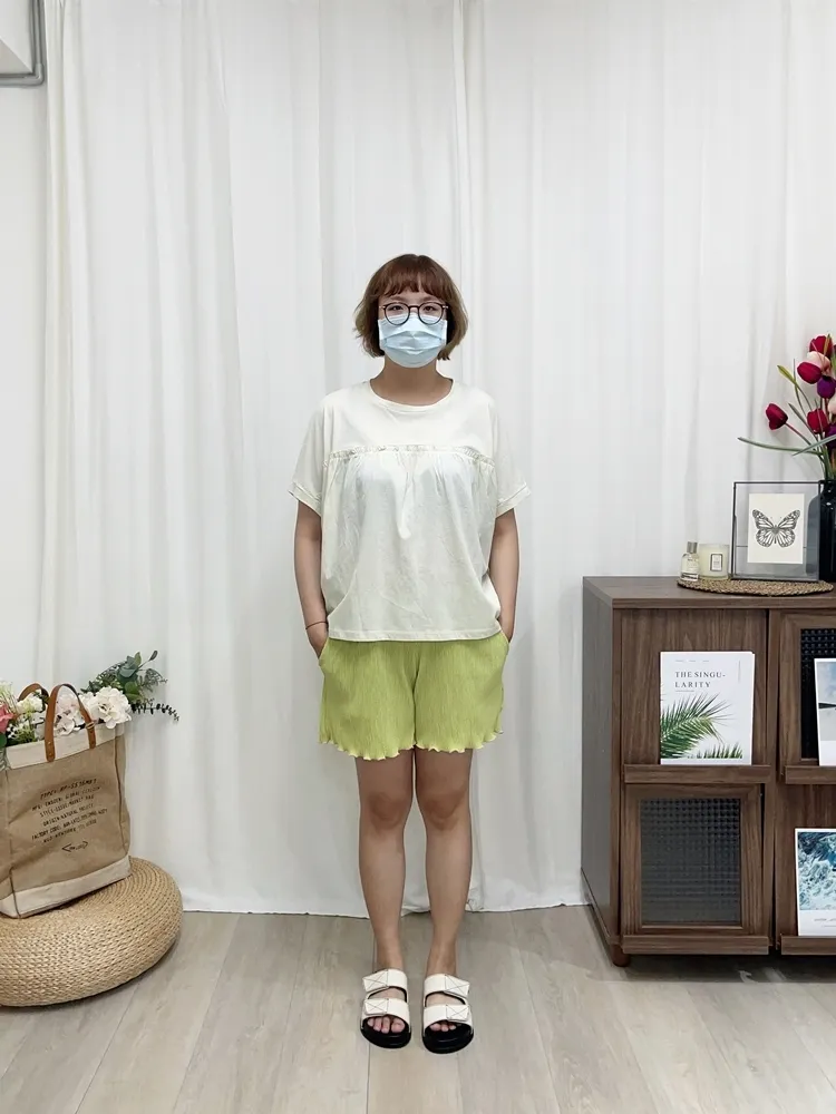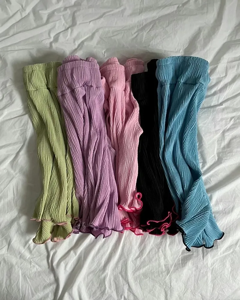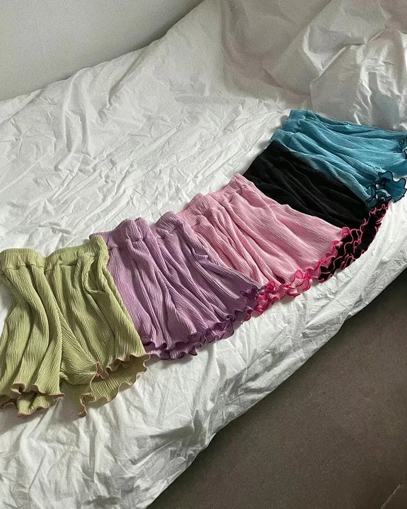 ✓ 馬卡龍繽紛色系,褲管滾木耳花邊設計