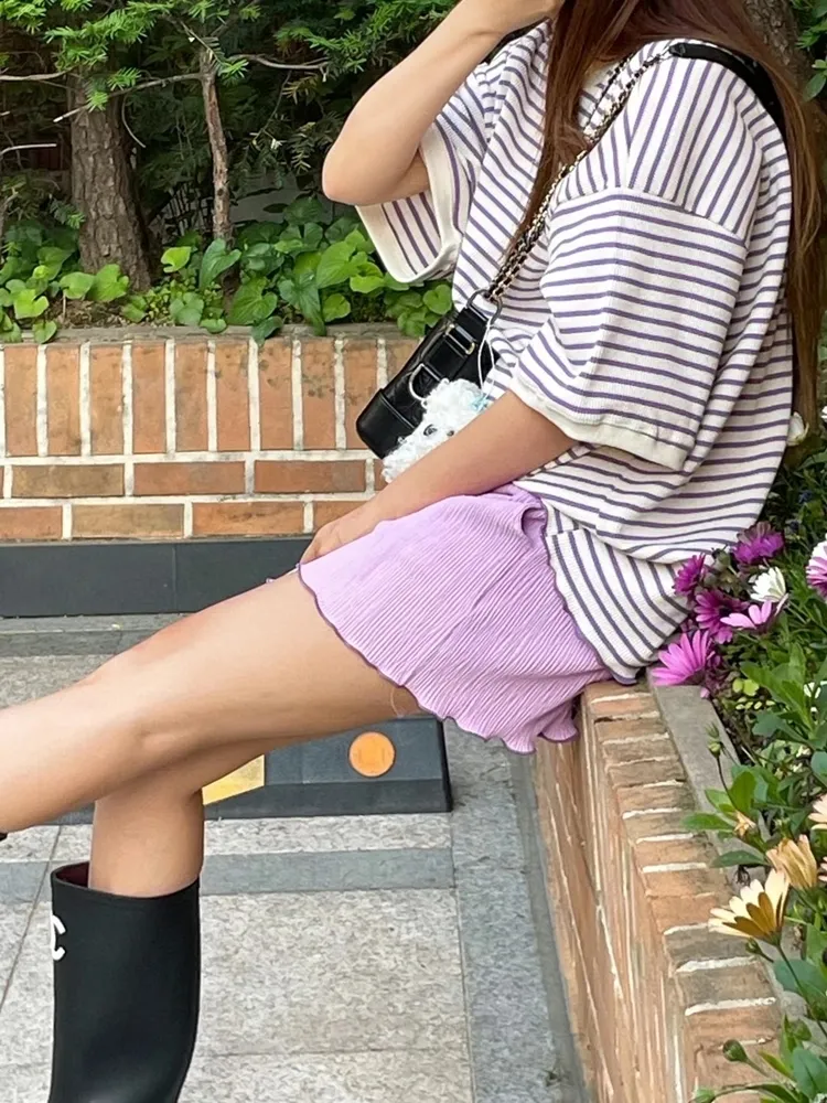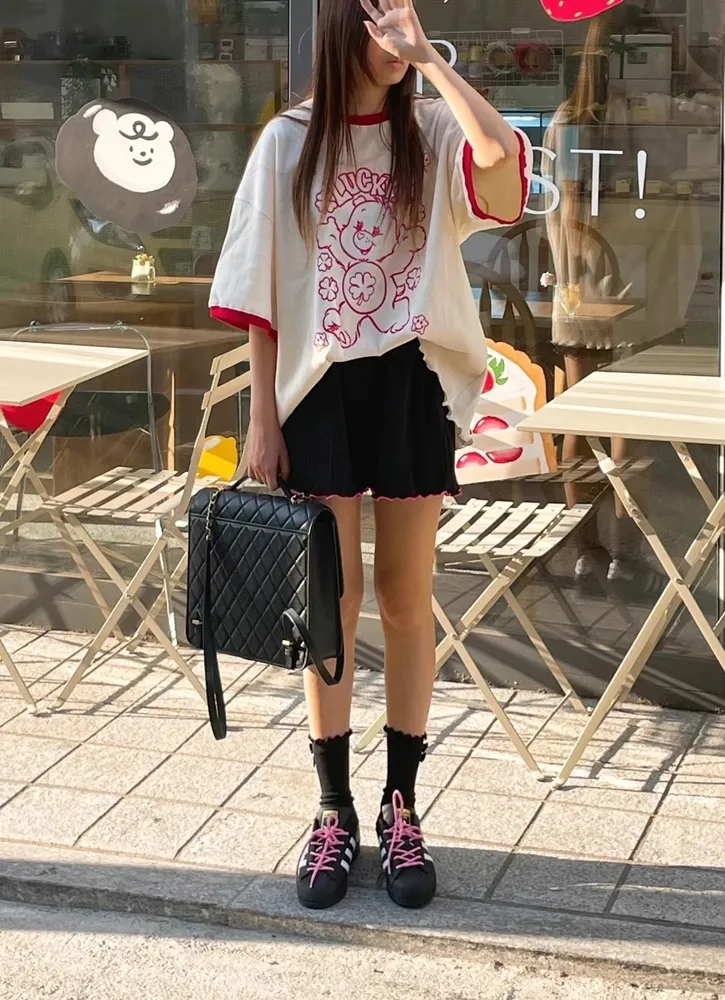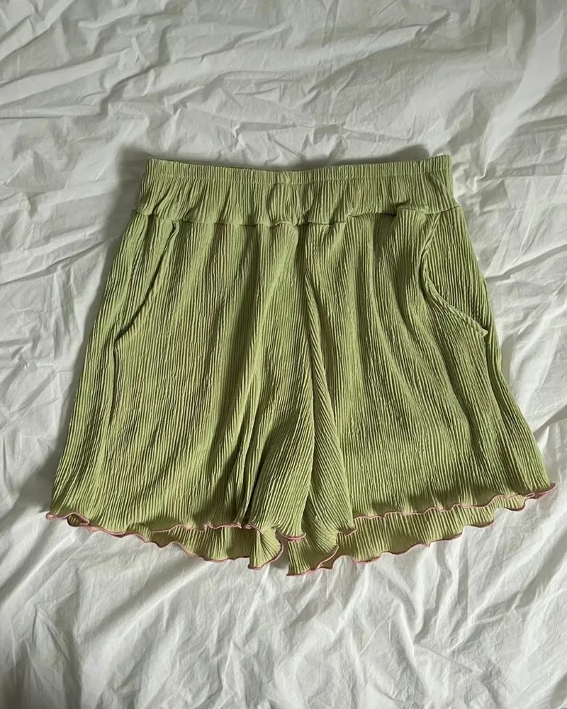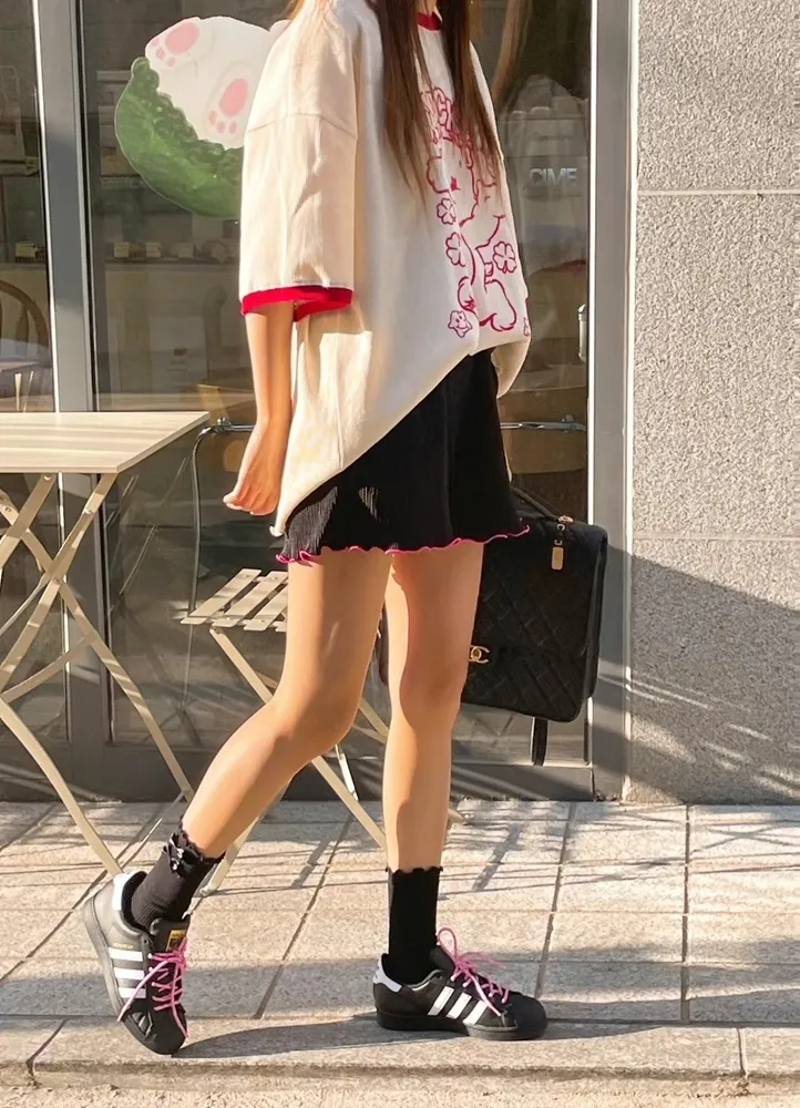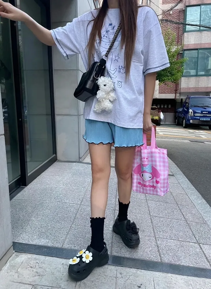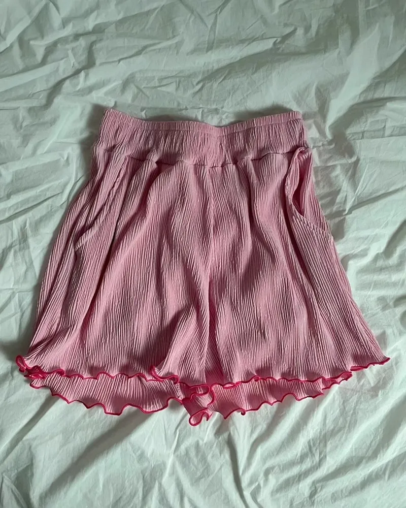 ✓ 馬卡龍繽紛色系,褲管滾木耳花邊設計