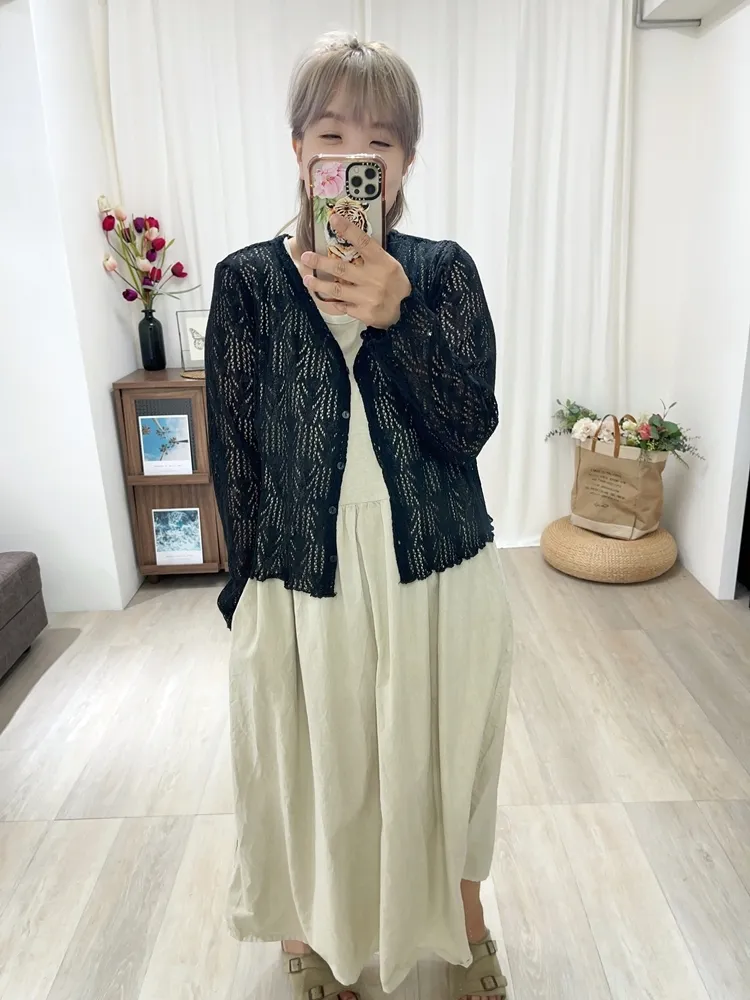 ✓ 像葉子般細長的簍空針織,微透讓穿搭看起來更加清爽