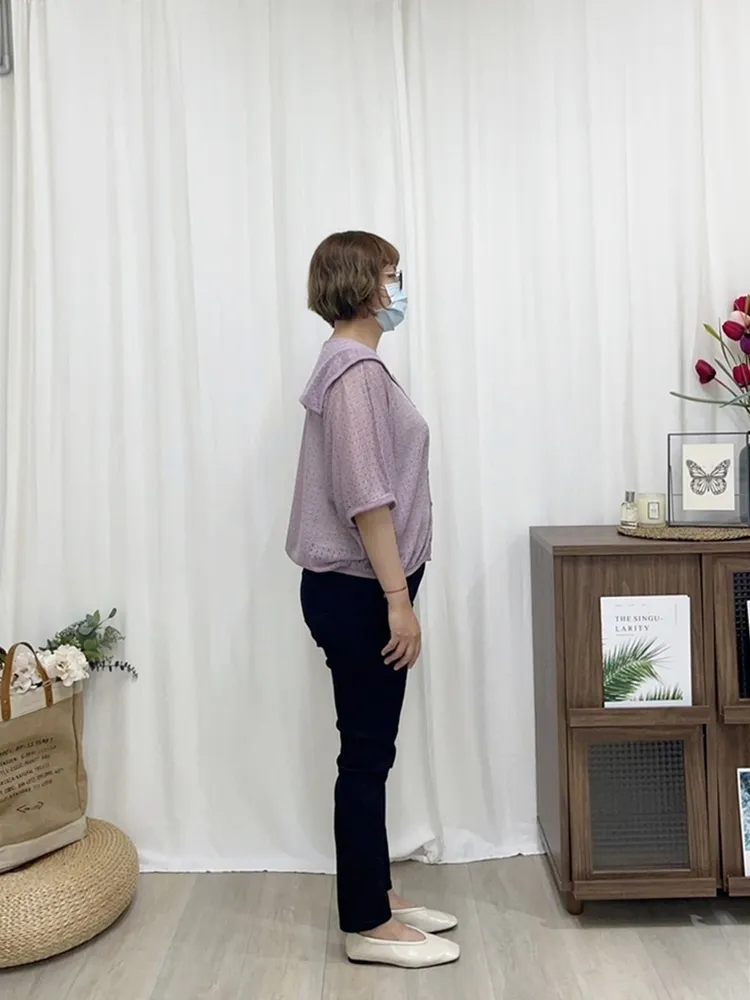 | F | 22 | 39 | 79 | 20 | 47 | 55 | 歐妞、怡玲、Ivy穿舒服,下擺會開,反折較好看/蓮妞當外套穿舒服/小妹穿舒服 |
