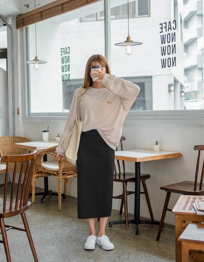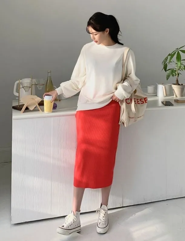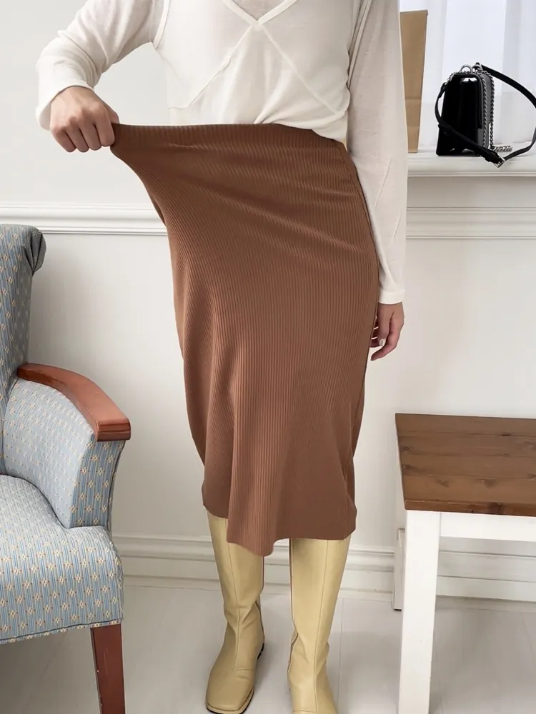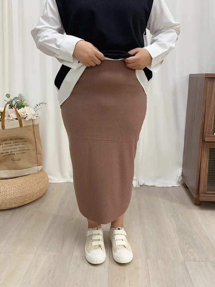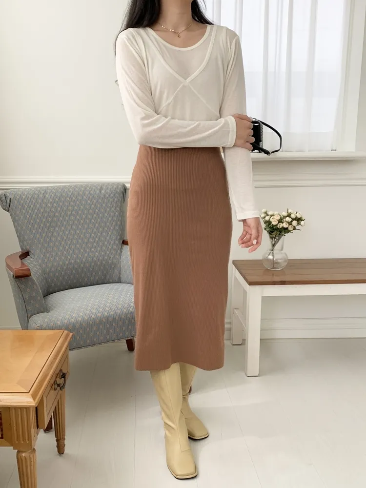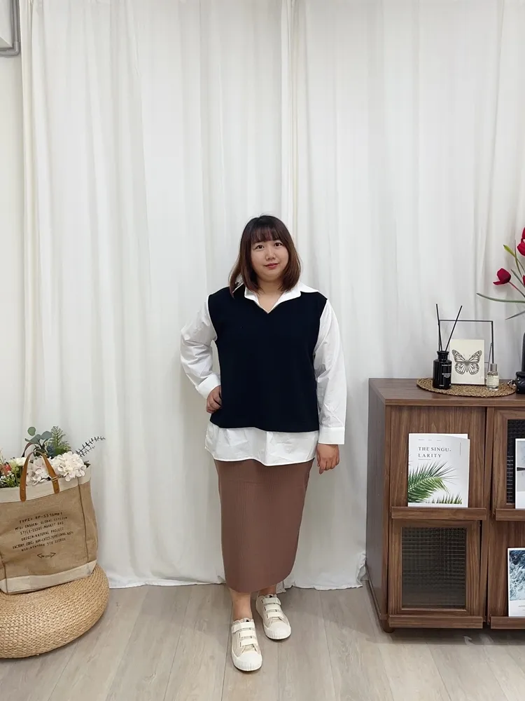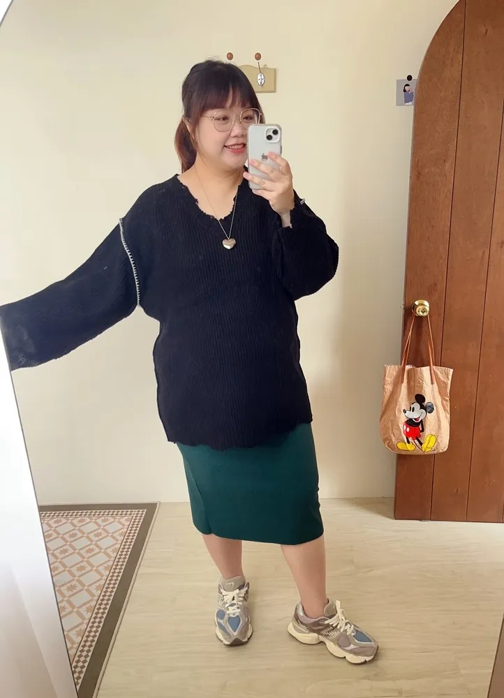 ✓ 伸縮彈性裙頭,整件針織裙布料彈性都非常好,可以再往外拉15公分
