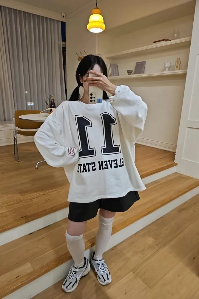 寬鬆版型,簡單的大數字圖案,搭配袖口的布標,吸睛又不浮誇