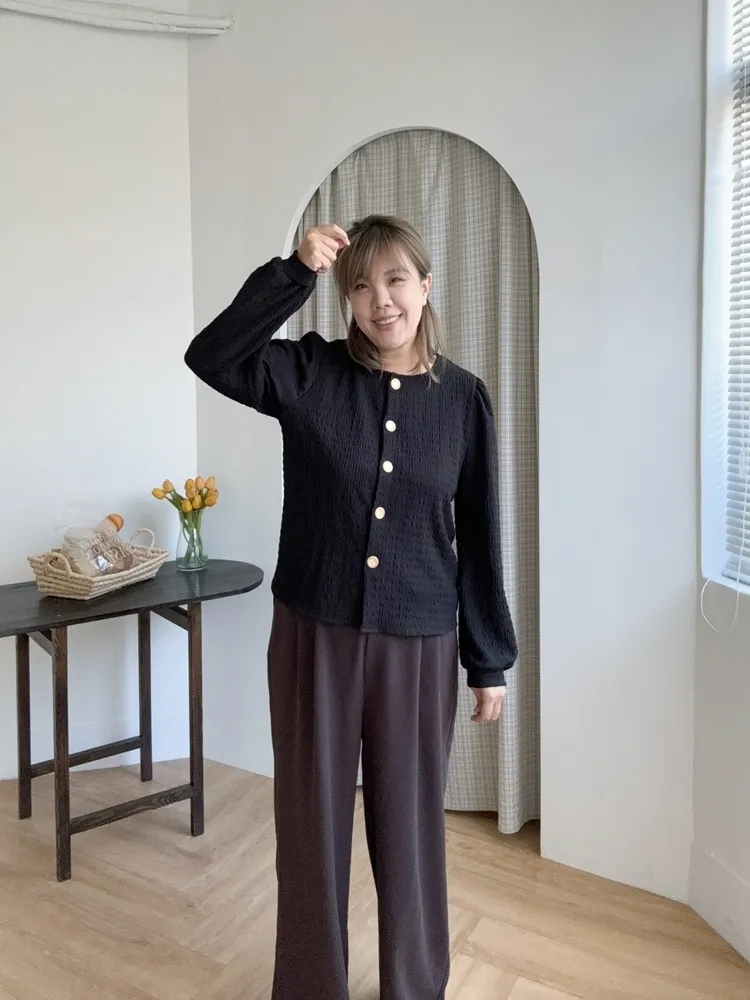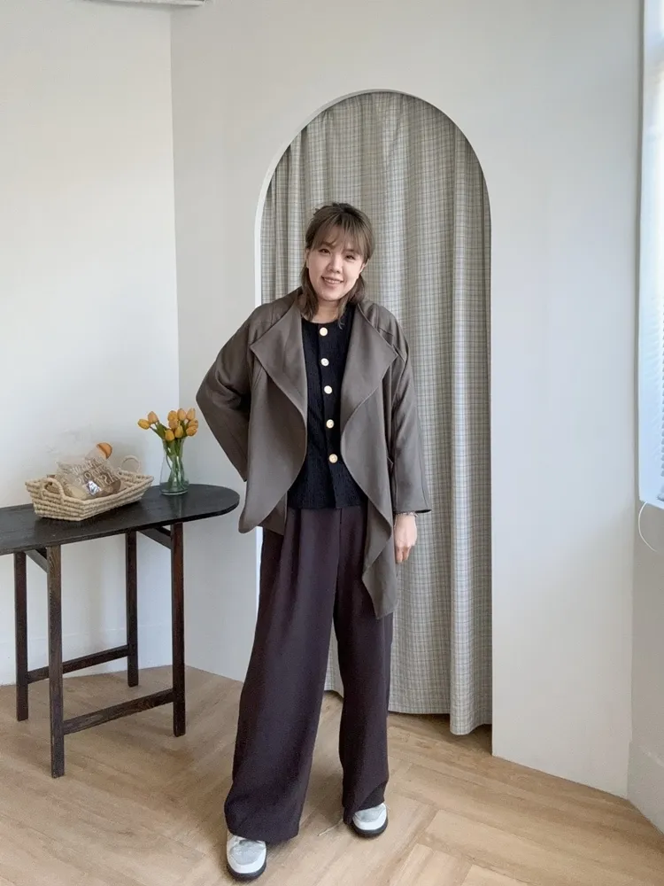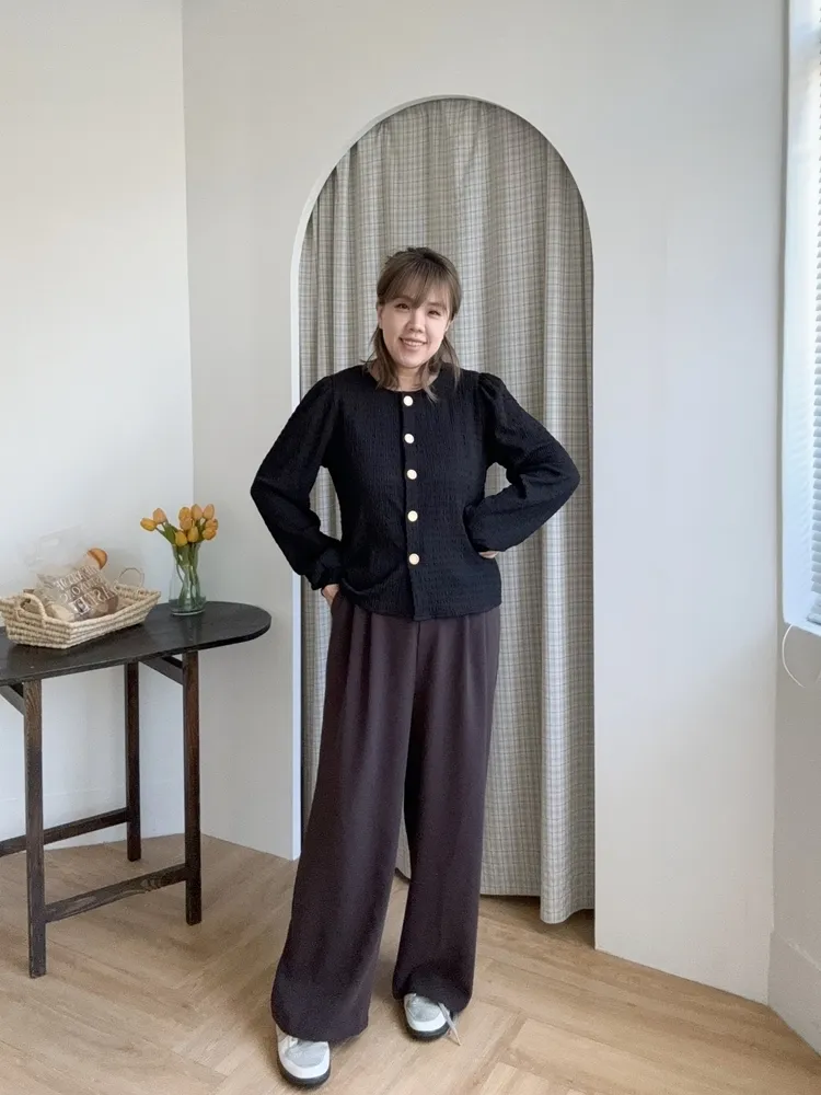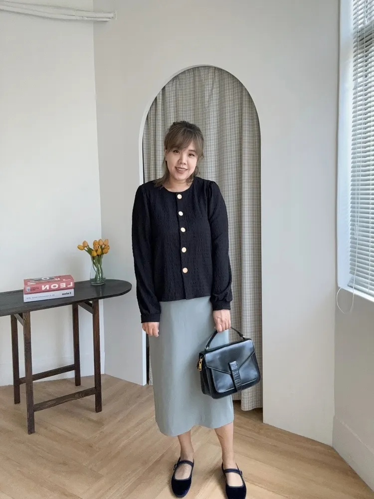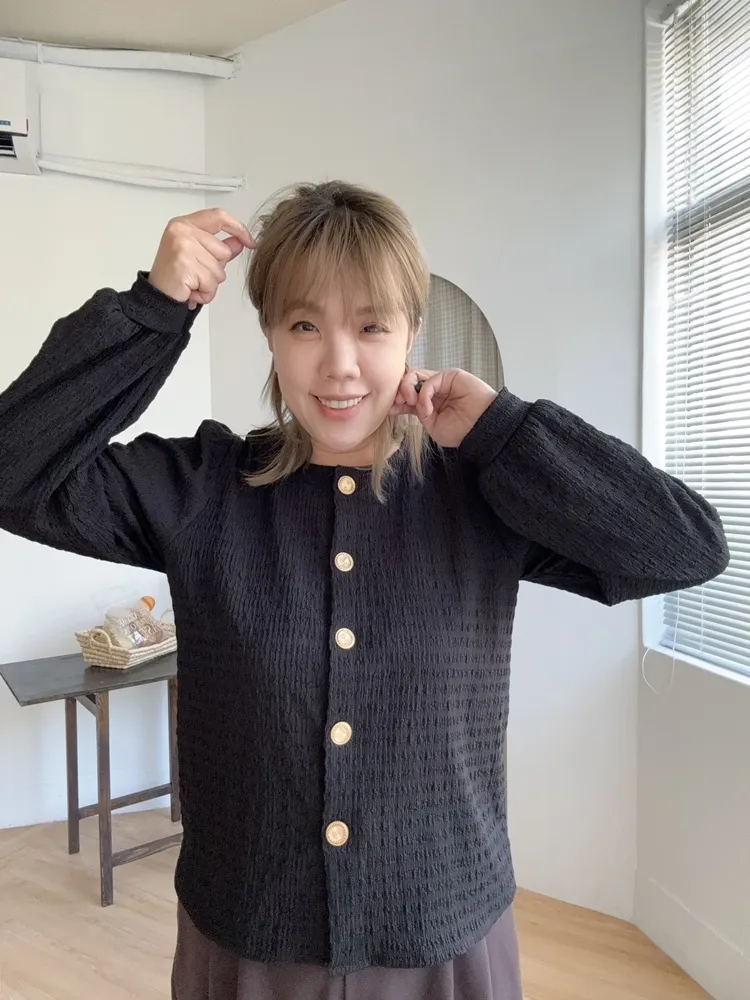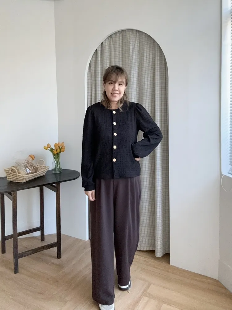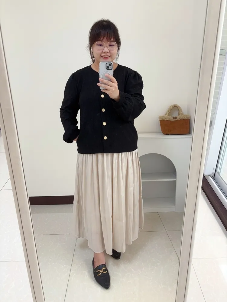 質感皺皺面料,加上金釦綴飾,穿起來帶有小小貴氣感