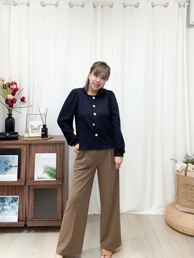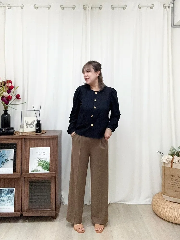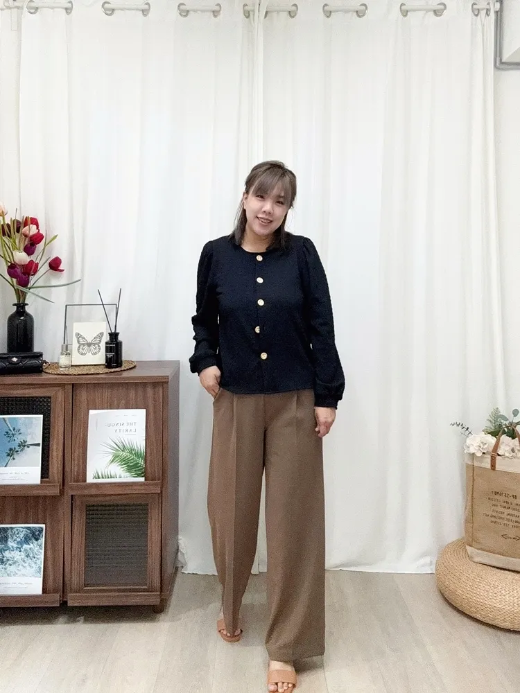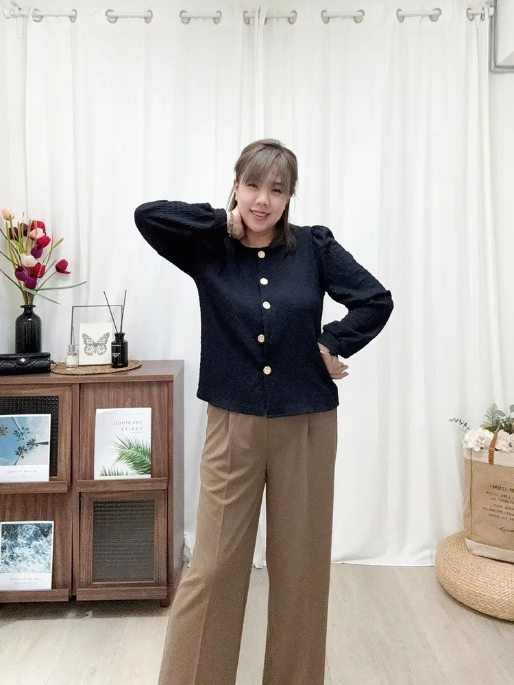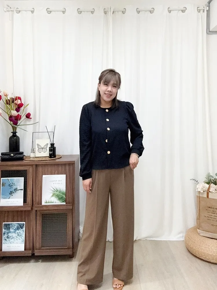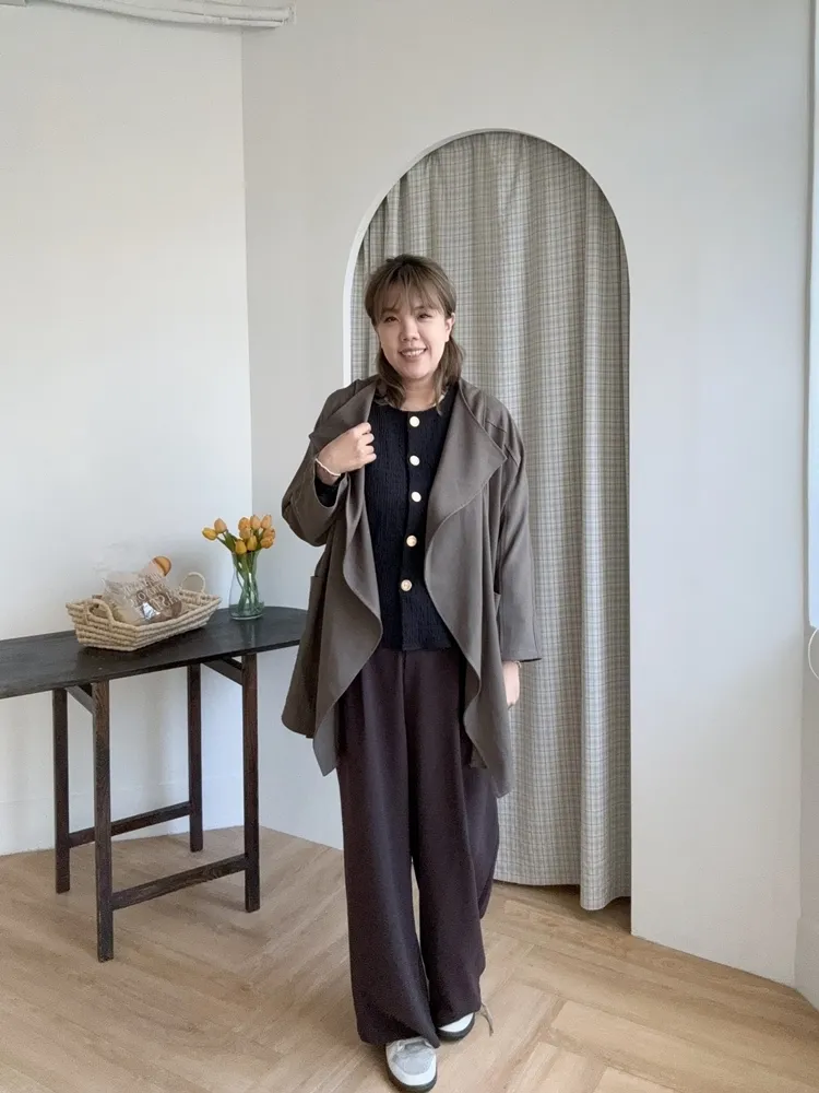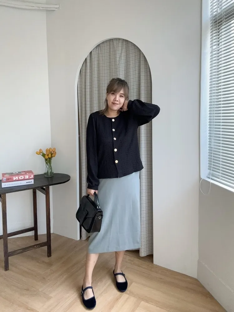 質感皺皺面料,加上金釦綴飾,穿起來帶有小小貴氣感