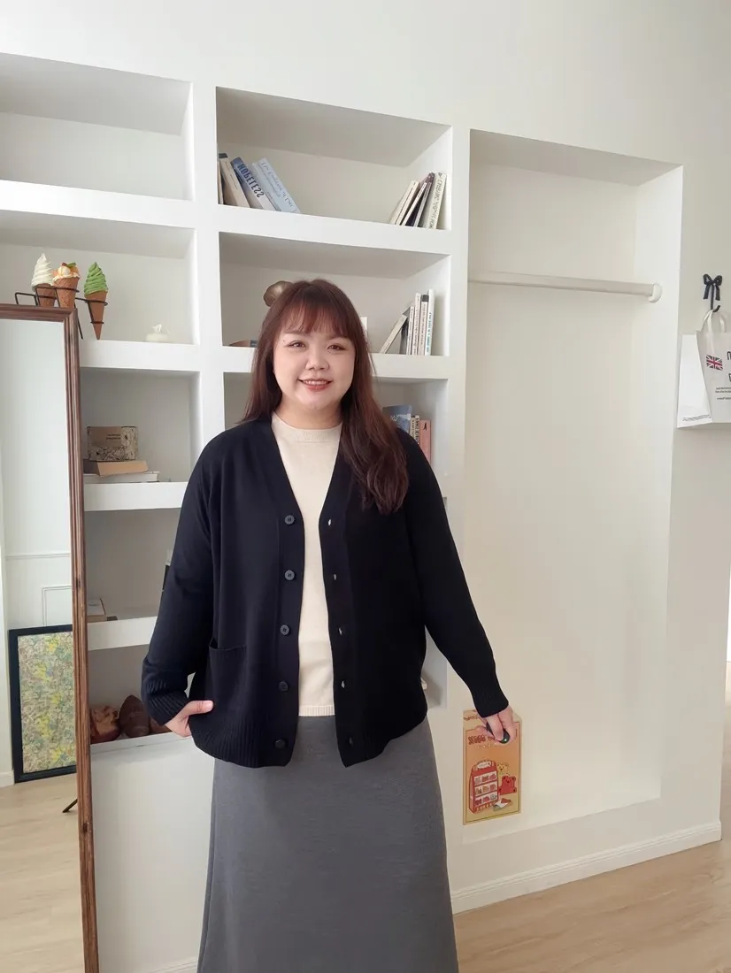 | L | - | (無肩線)單邊肩寬+袖長69 | 67 | - | - | 62 | 63 | 蓮妞穿微鬆可全扣,手臂穿薄長袖剛好/怡玲、Jessie穿微寬鬆 |